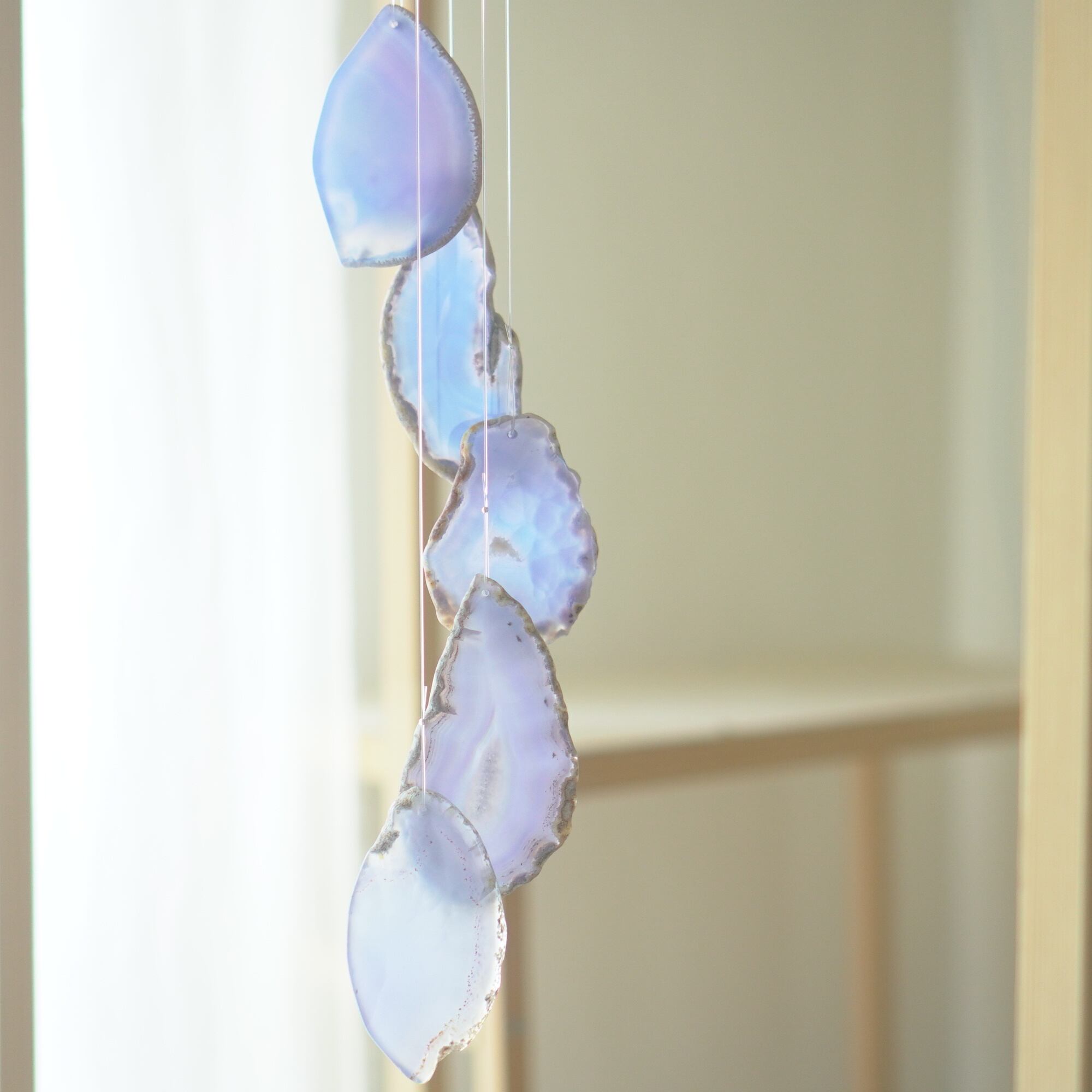 連なるアゲートが風を受けて揺れるとチリンチリン、美しい響きの音が鳴りとても癒されます。
