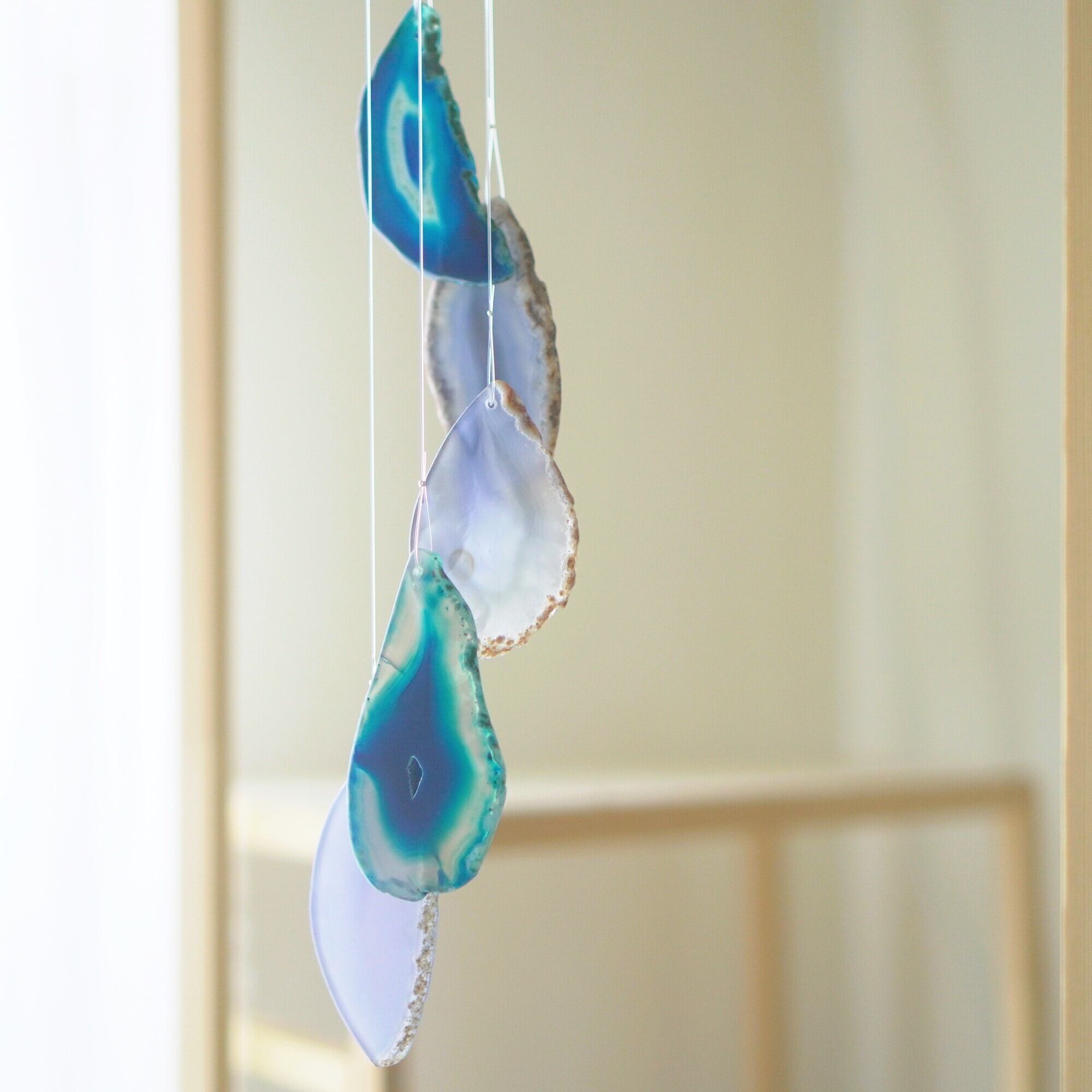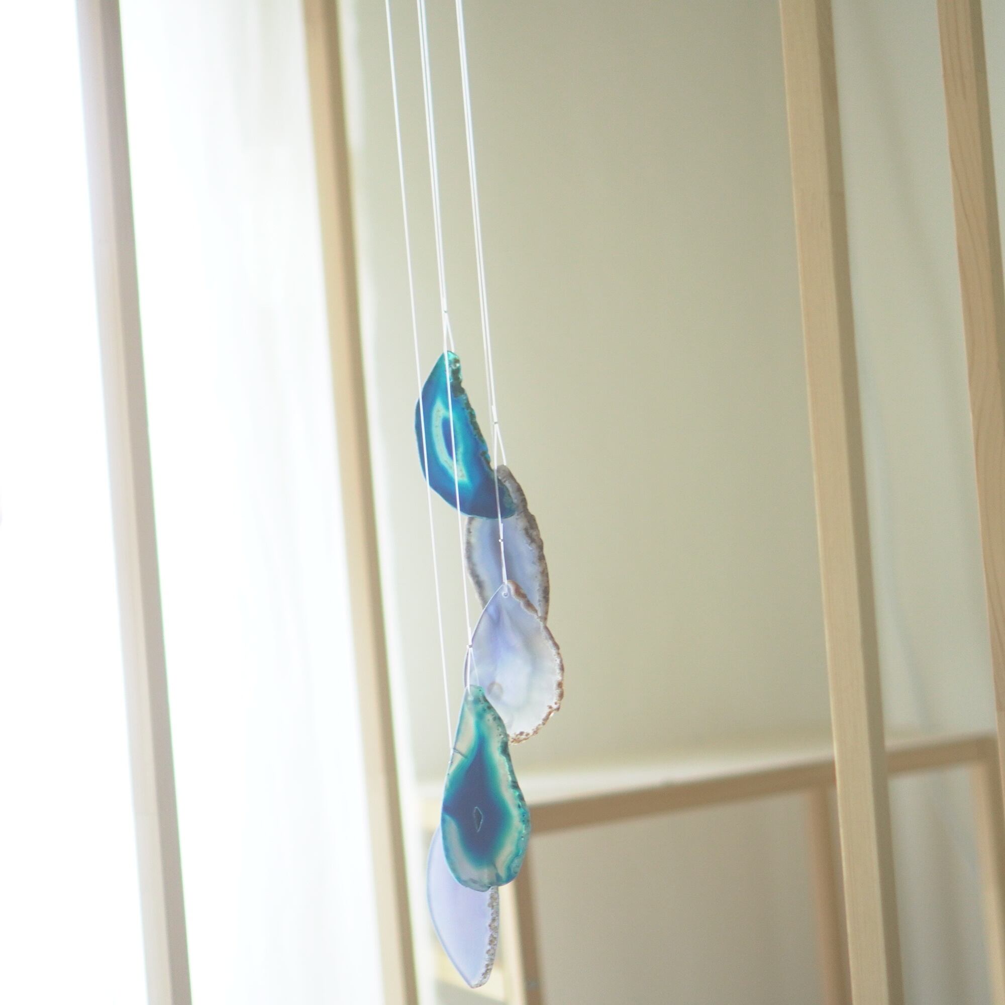 連なるアゲートが風を受けて揺れるとチリンチリン、美しい響きの音が鳴りとても癒されます。