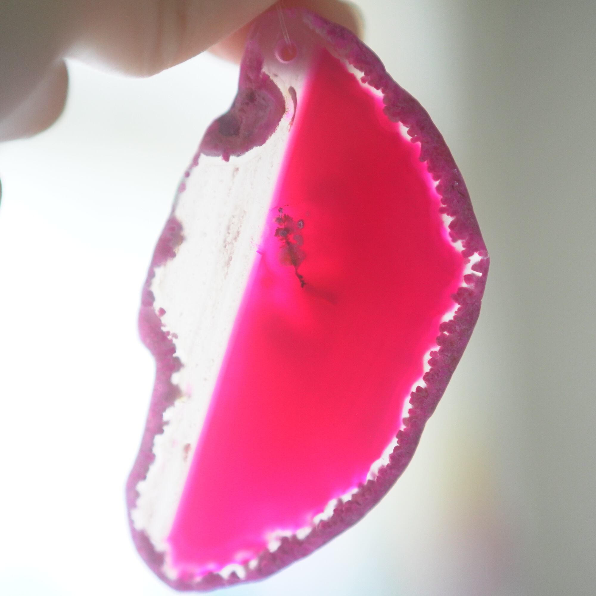 ✧✧✧染色の石なので耐光性(光による経年でのカラー変化の耐性)に優れているわけではなく一日の中で長時間強い日光に当たるような場所に飾られるのはおすすめしないのですが、陽光に透かした時にだけ真価を発揮する美しさがありますので、是非たまに翳したりして光と一緒にお楽しみいただけたらと思っております。特に濃い鮮やかな色など、気になられる場合は、日光のあまり当たらない場所に飾っていただけたらと思います✧✧✧