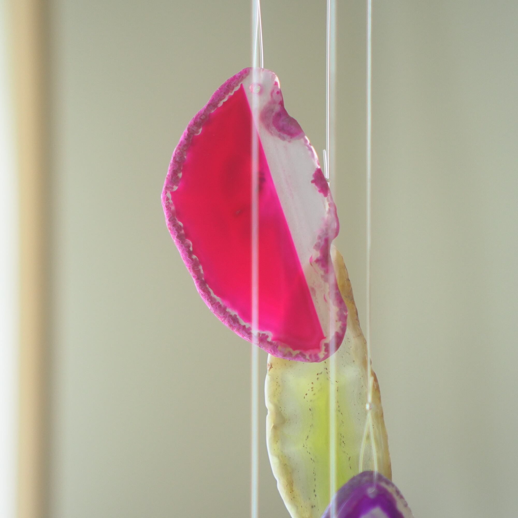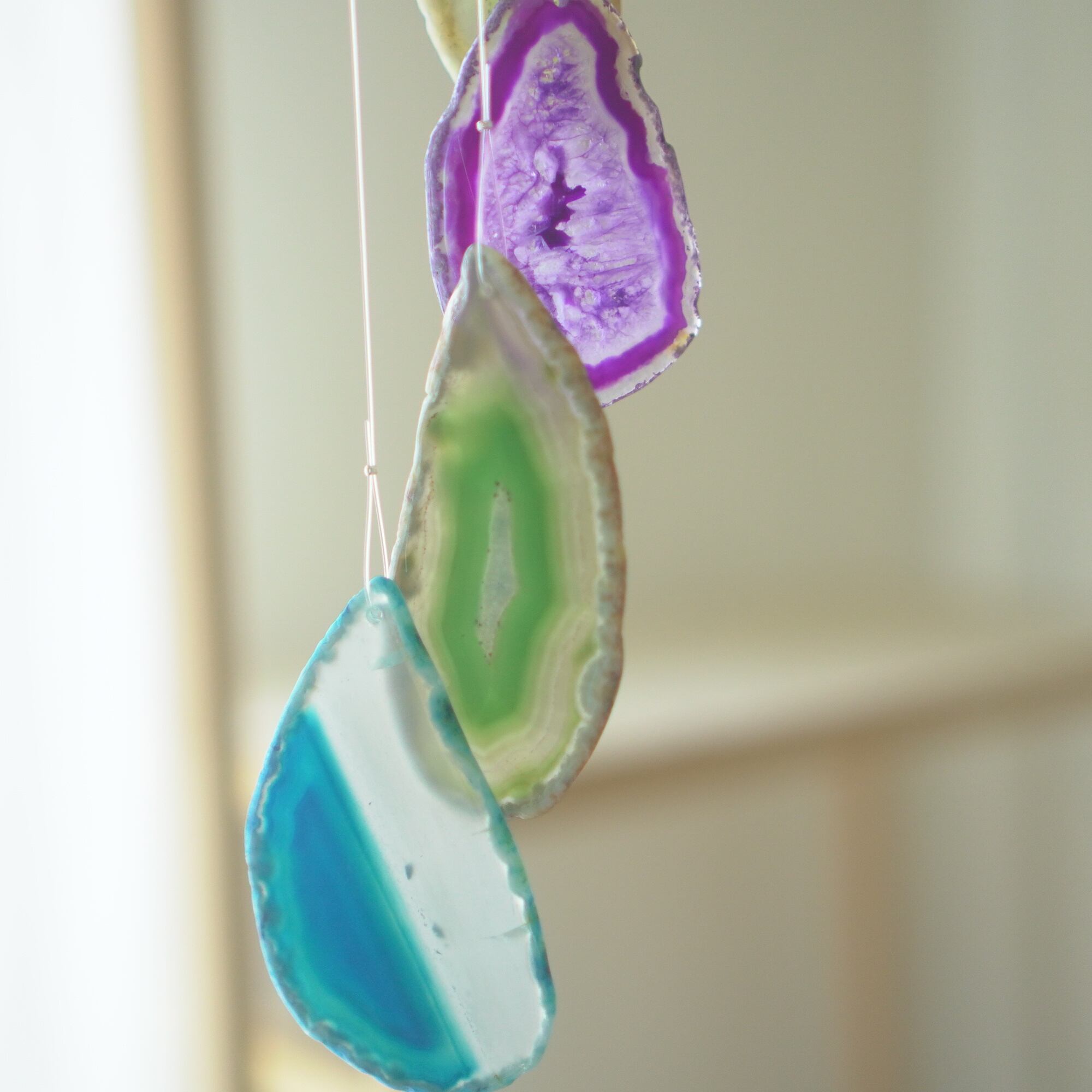 連なるアゲートが風を受けて揺れるとチリンチリン、美しい響きの音が鳴りとても癒されます。