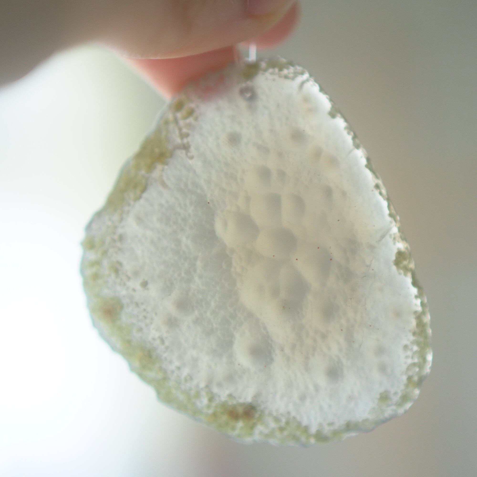 ✧✧✧染色の石なので耐光性(光による経年でのカラー変化の耐性)に優れているわけではなく一日の中で長時間強い日光に当たるような場所に飾られるのはおすすめしないのですが、陽光に透かした時にだけ真価を発揮する美しさがありますので、是非たまに翳したりして光と一緒にお楽しみいただけたらと思っております。特に濃い鮮やかな色など、気になられる場合は、日光のあまり当たらない場所に飾っていただけたらと思います✧✧✧