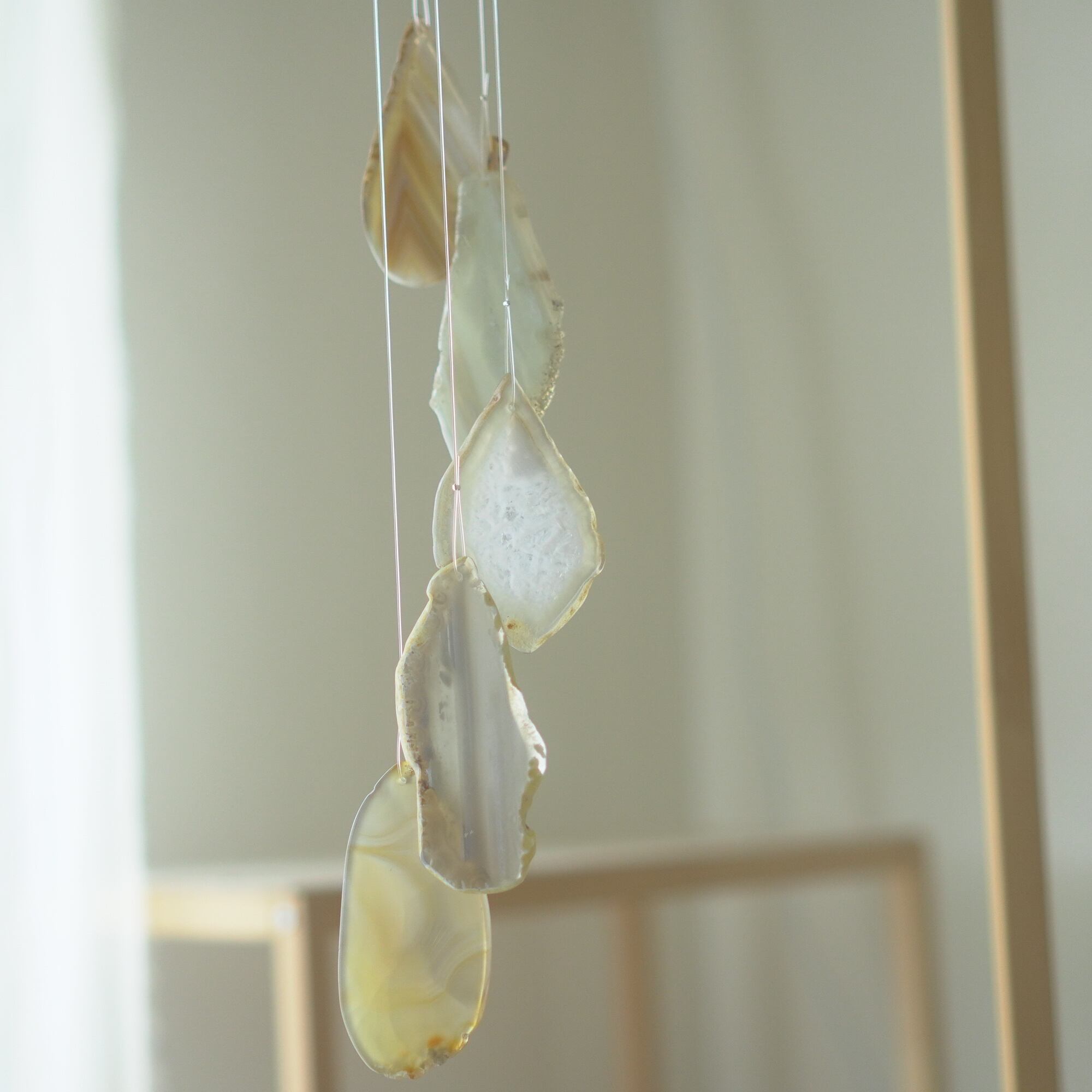連なるアゲートが風を受けて揺れるとチリンチリン、美しい響きの音が鳴りとても癒されます。