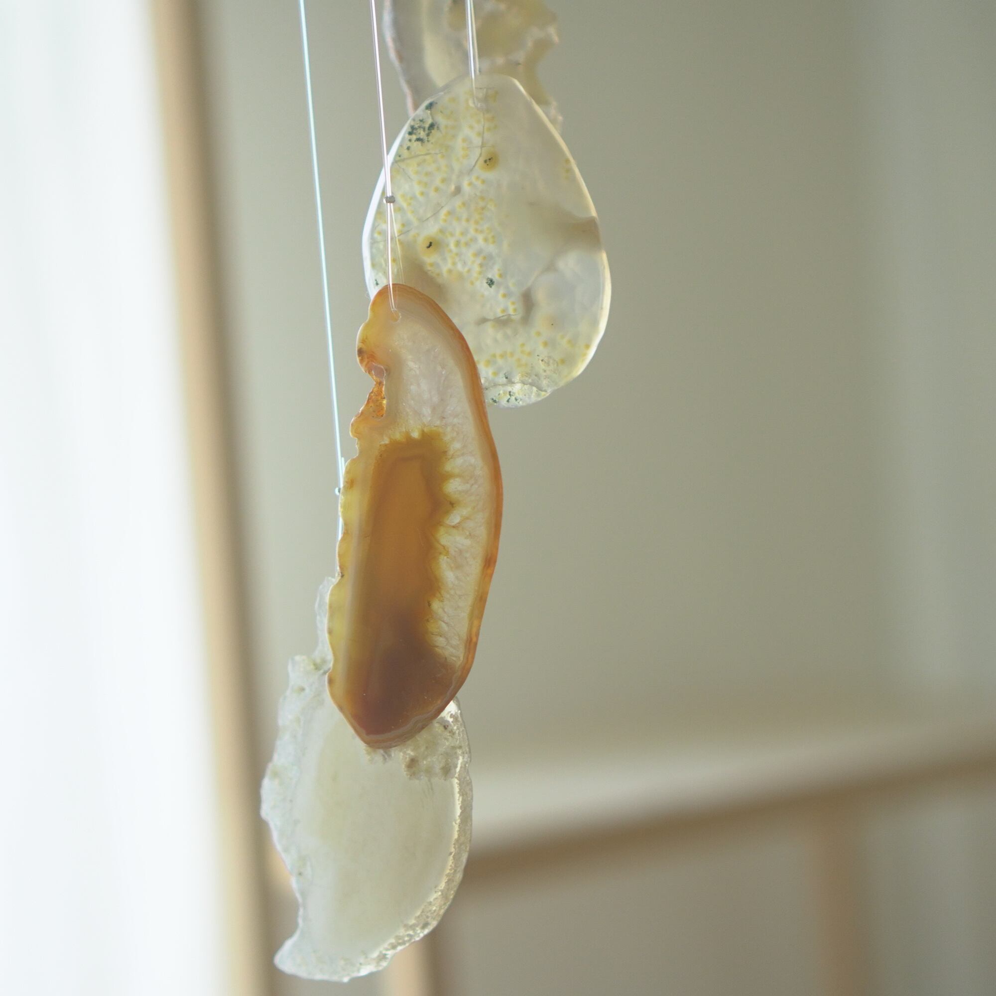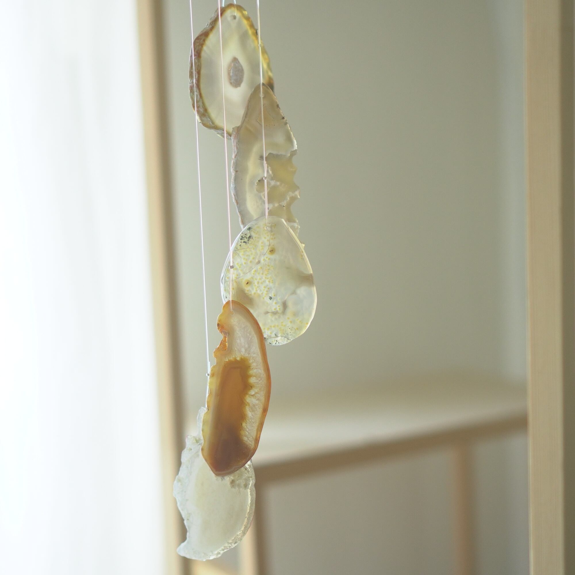 連なるアゲートが風を受けて揺れるとチリンチリン、美しい響きの音が鳴りとても癒されます。