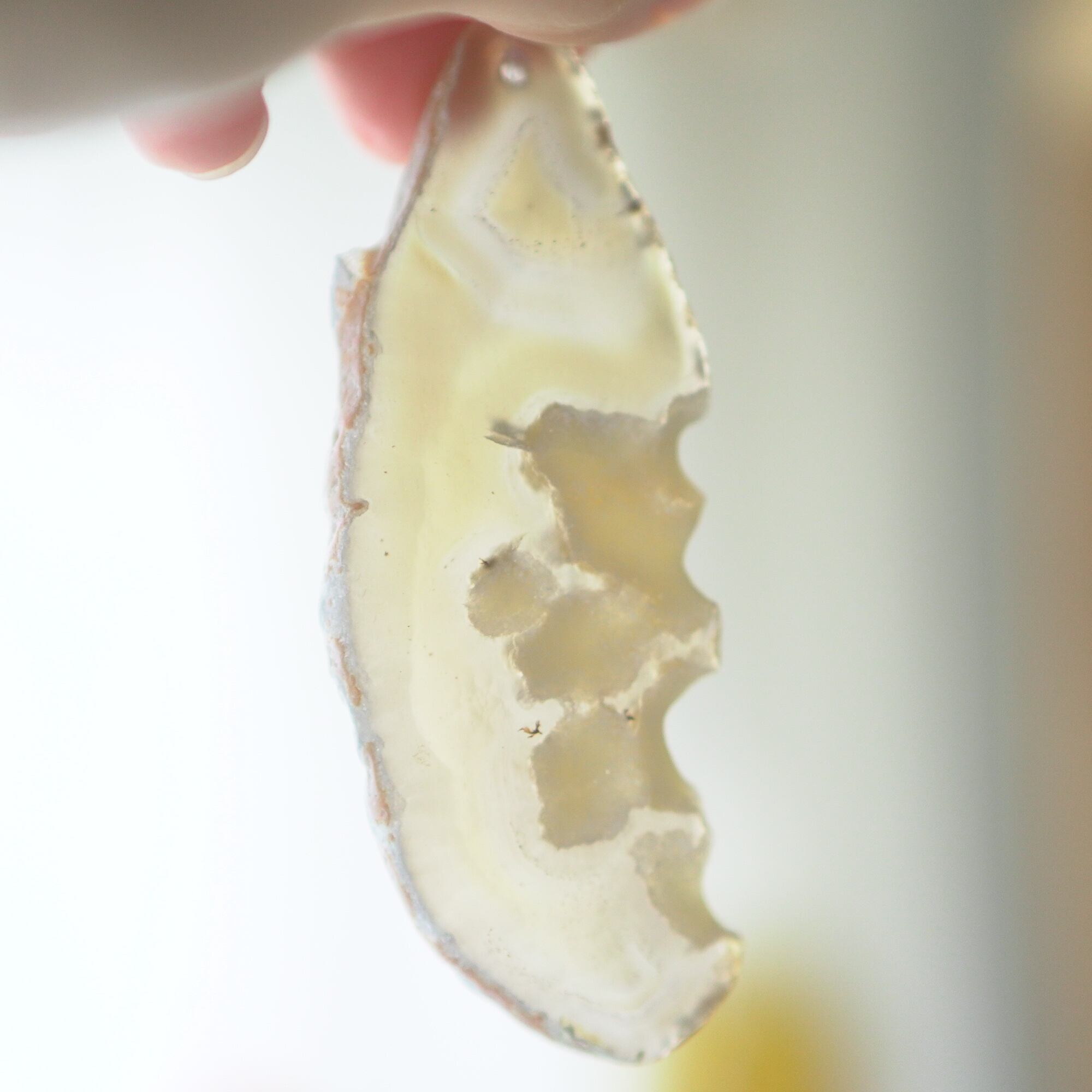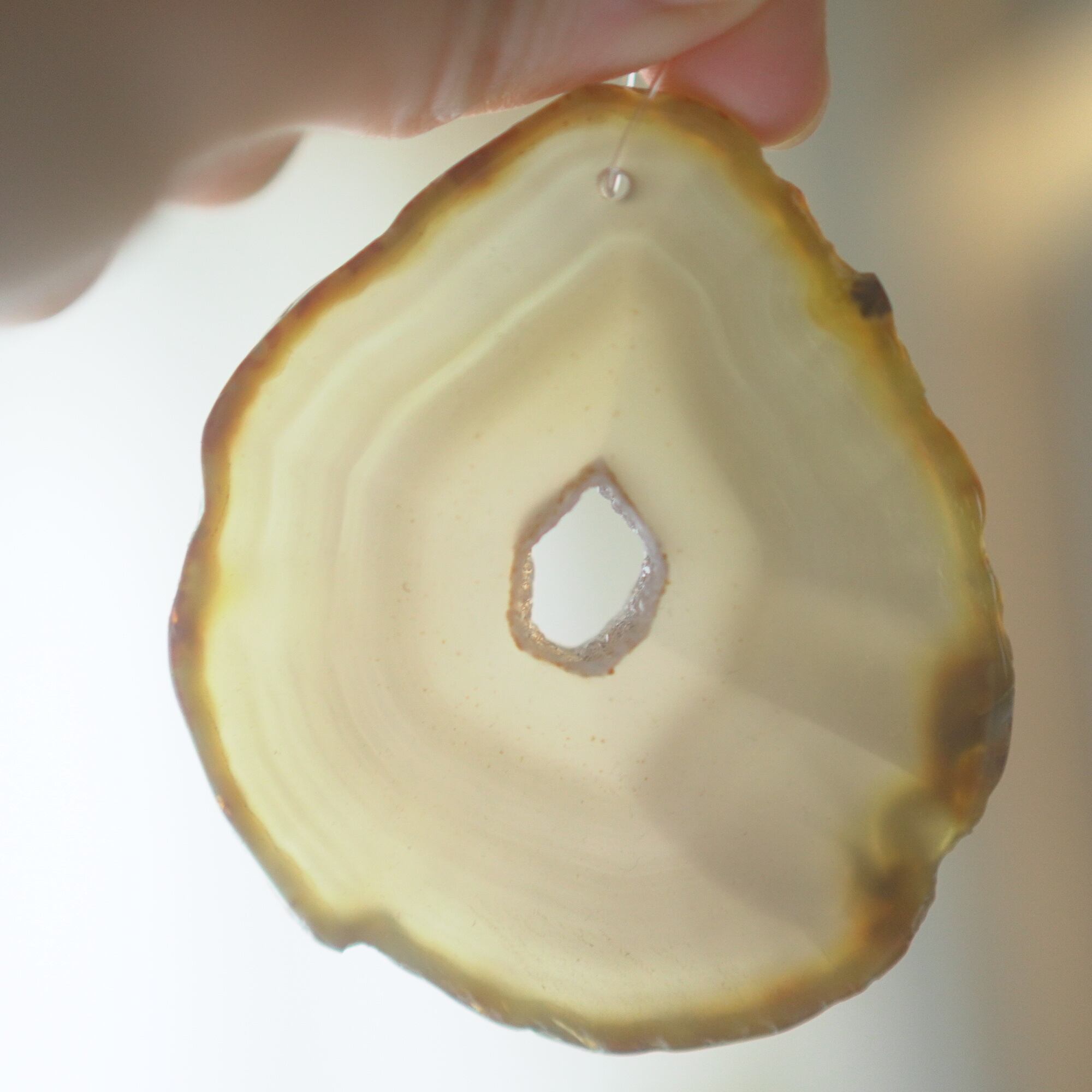 Agate Slice , Natural Wood , Nylon Cord , Metal