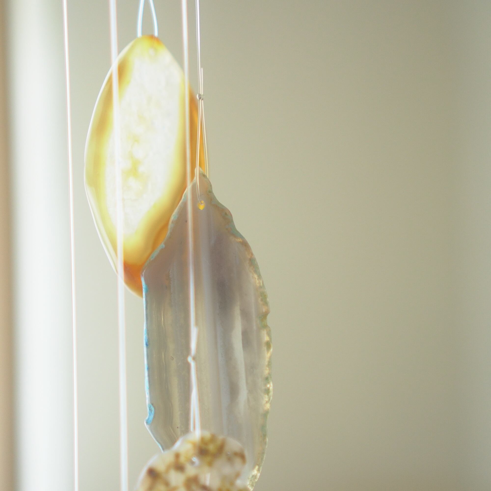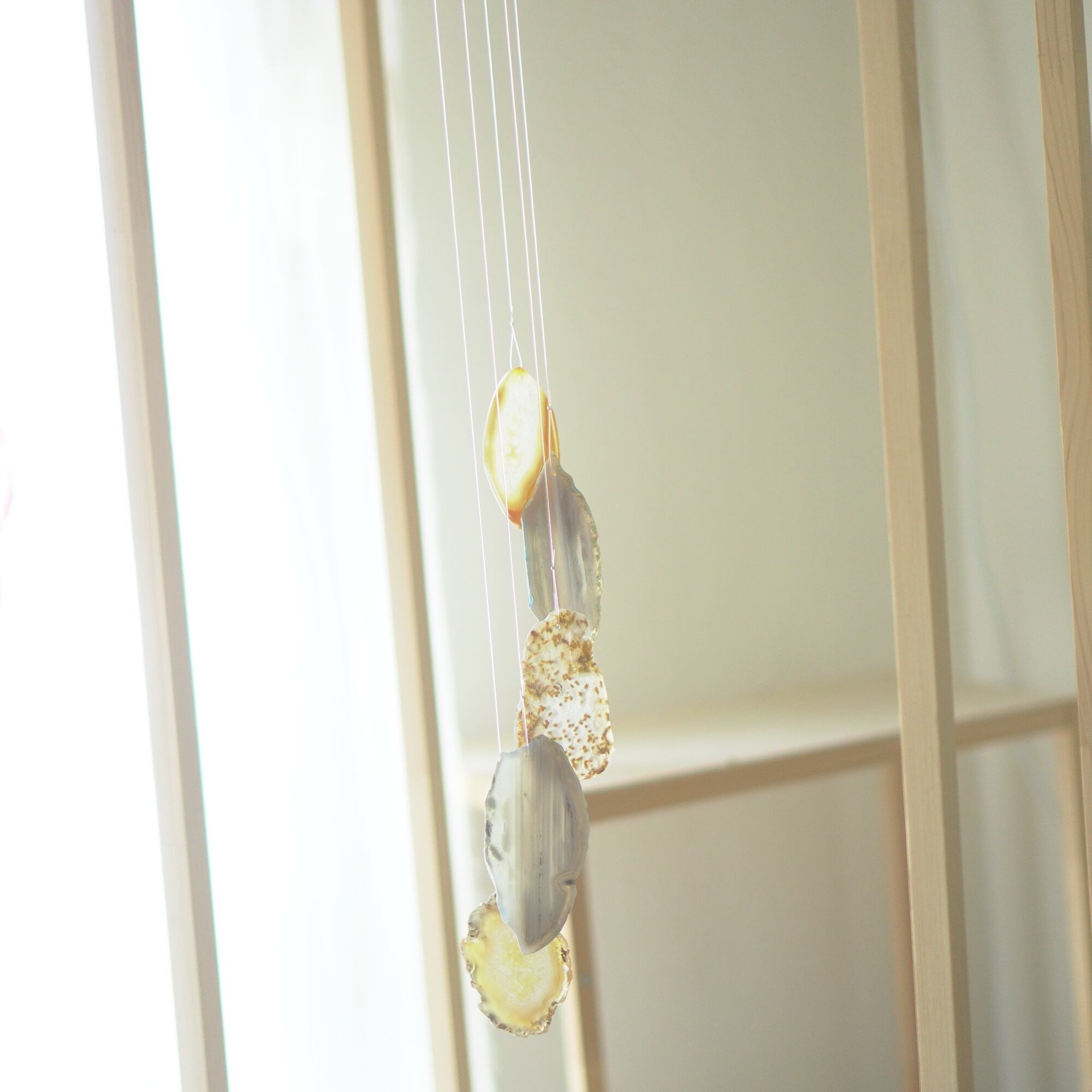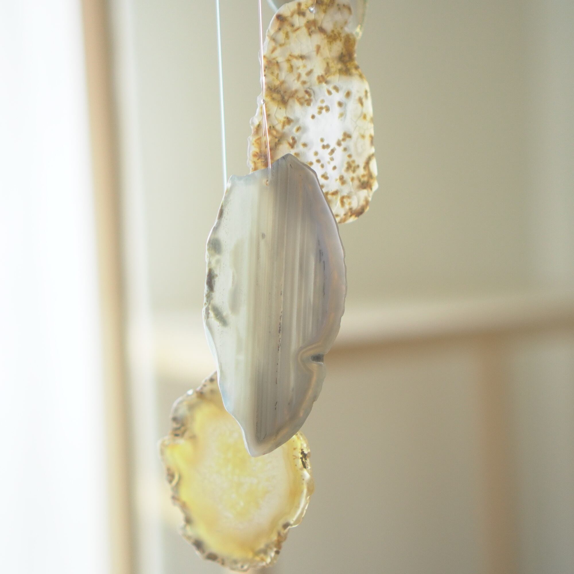 連なるアゲートが風を受けて揺れるとチリンチリン、美しい響きの音が鳴りとても癒されます。