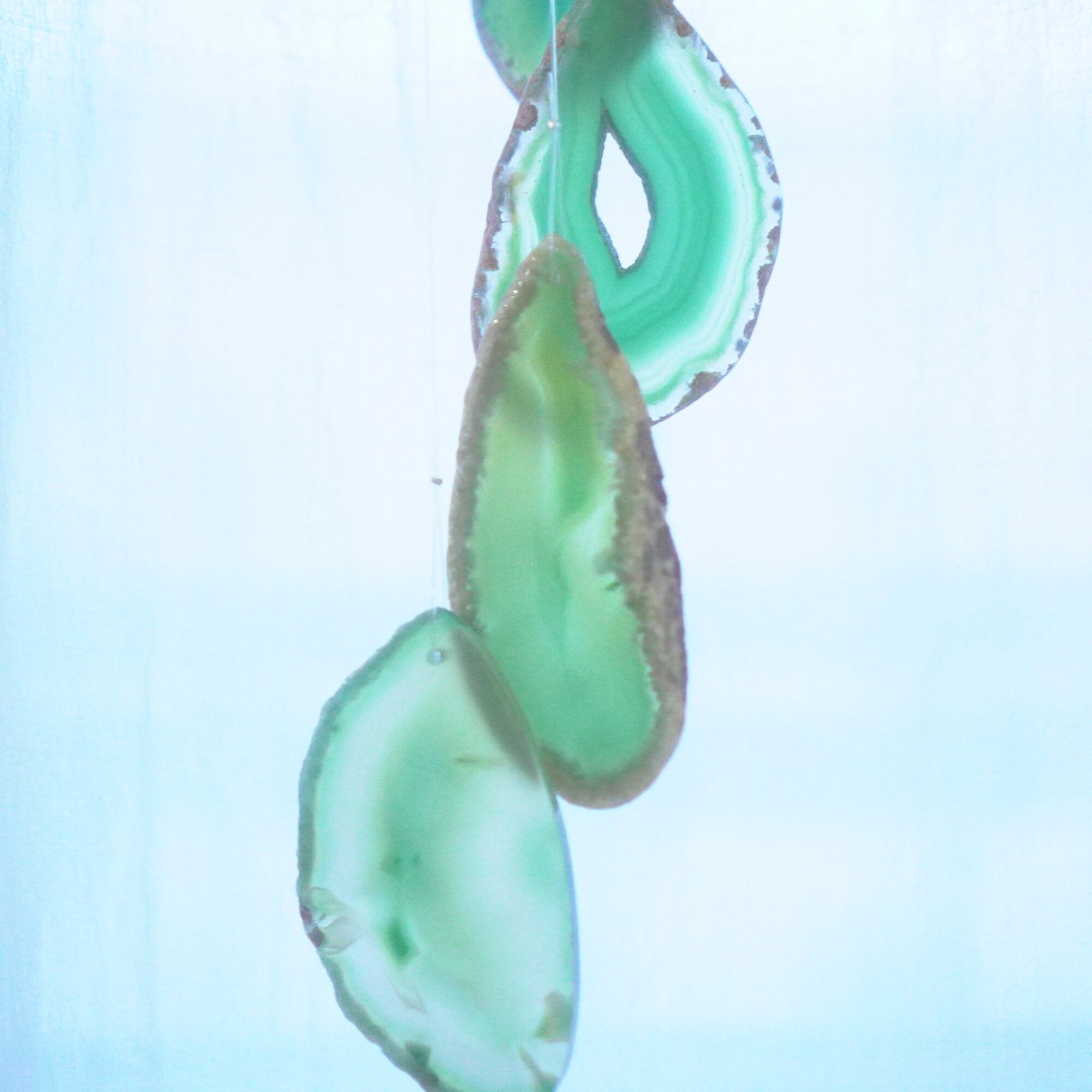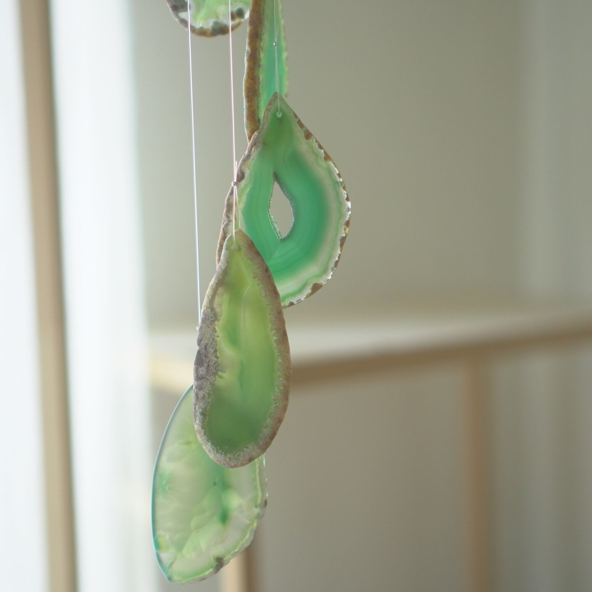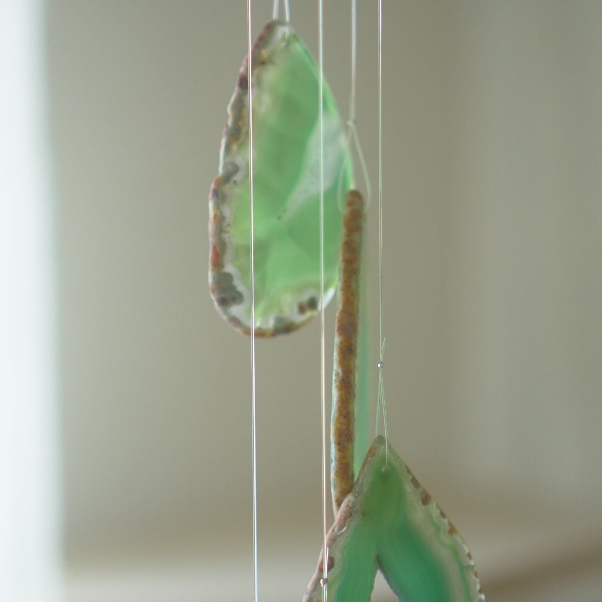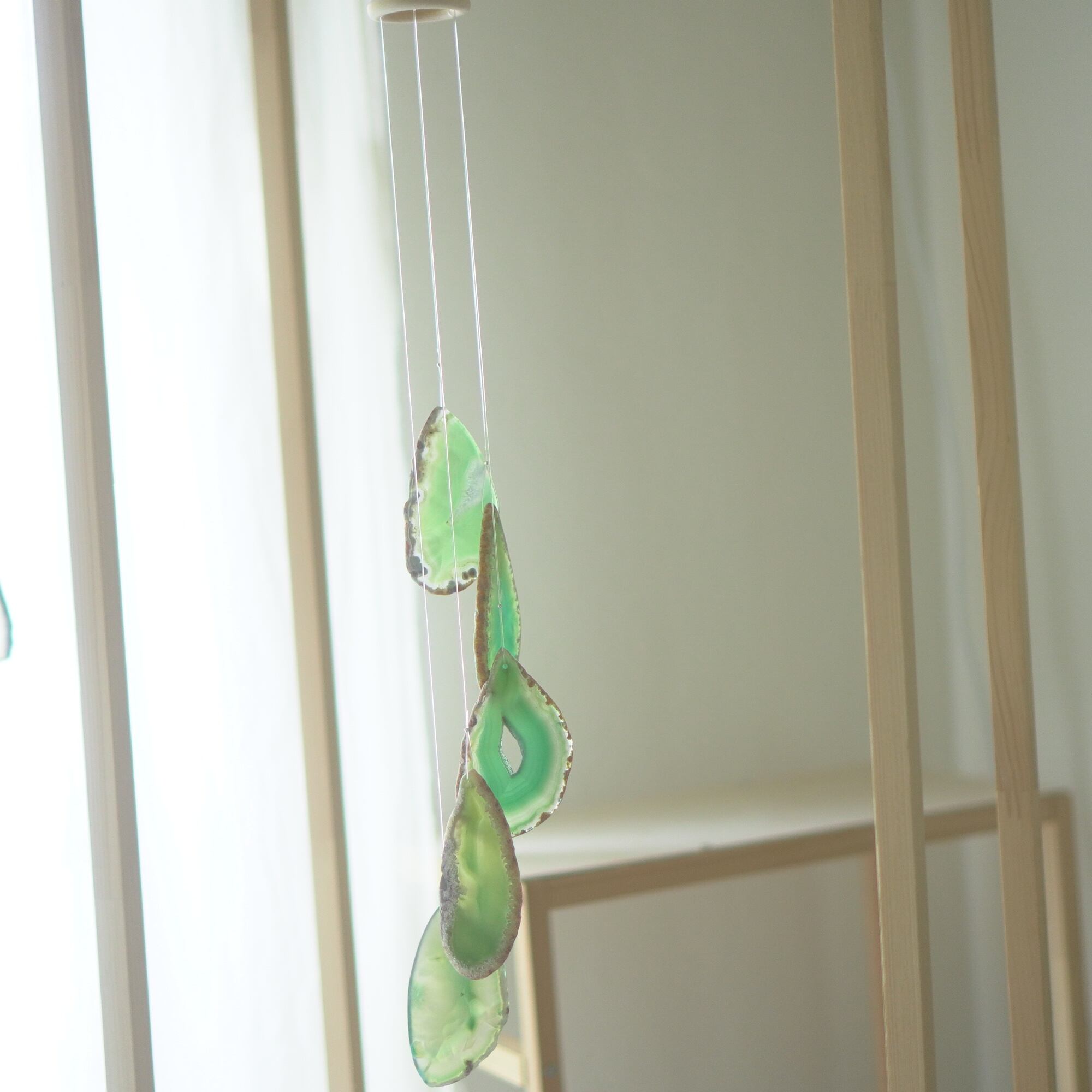連なるアゲートが風を受けて揺れるとチリンチリン、美しい響きの音が鳴りとても癒されます。