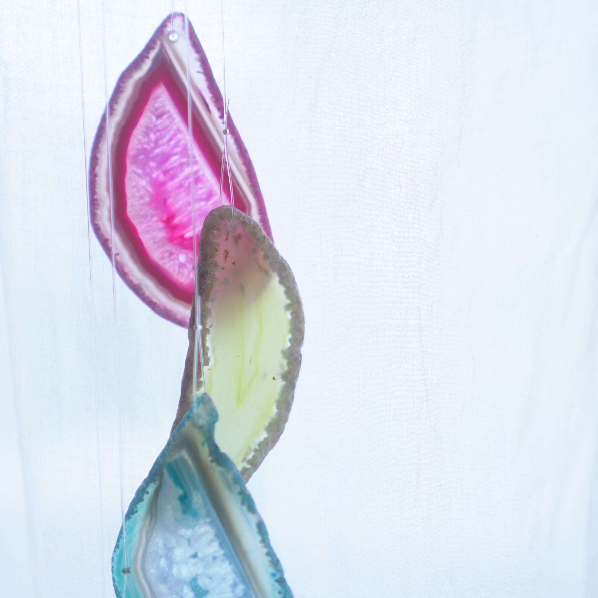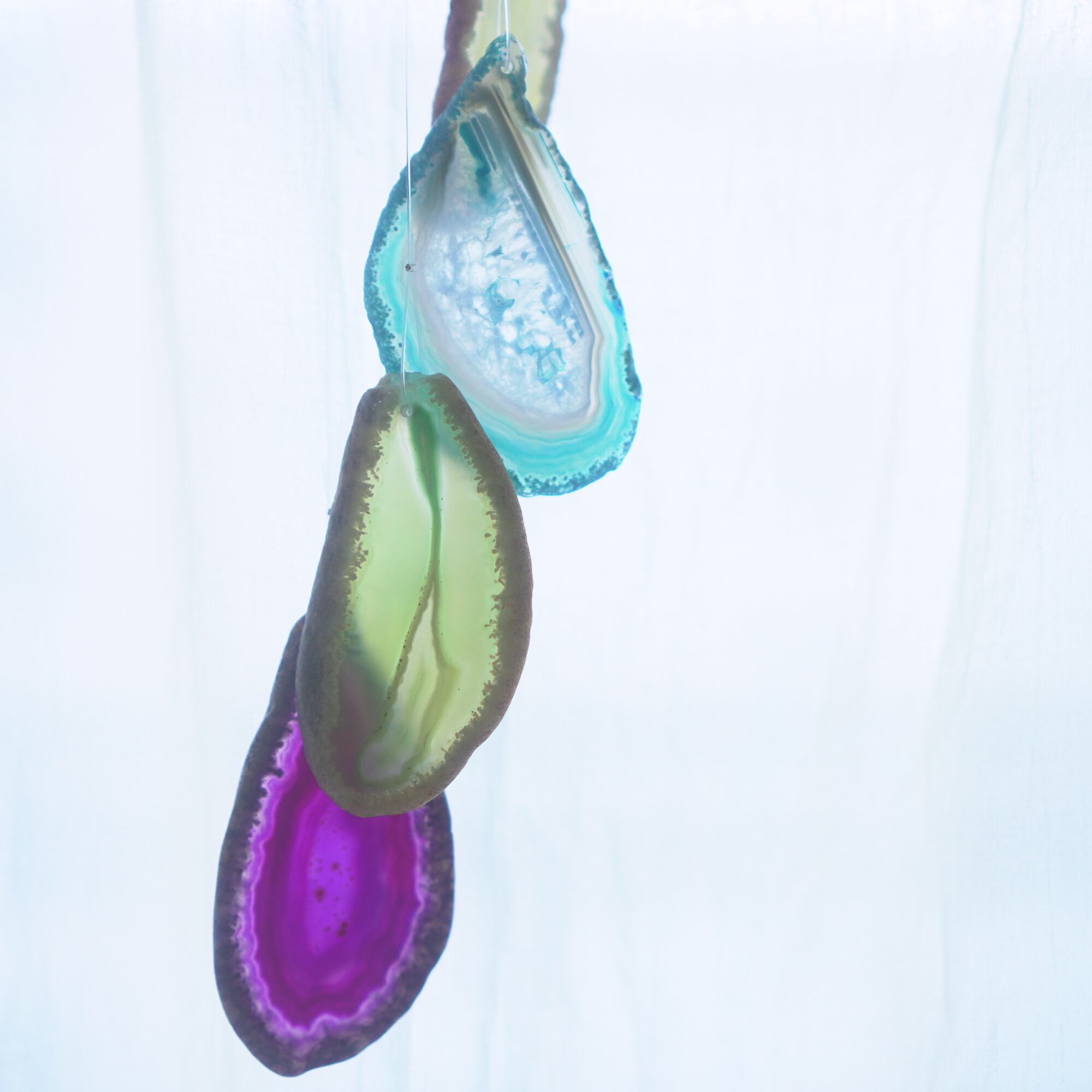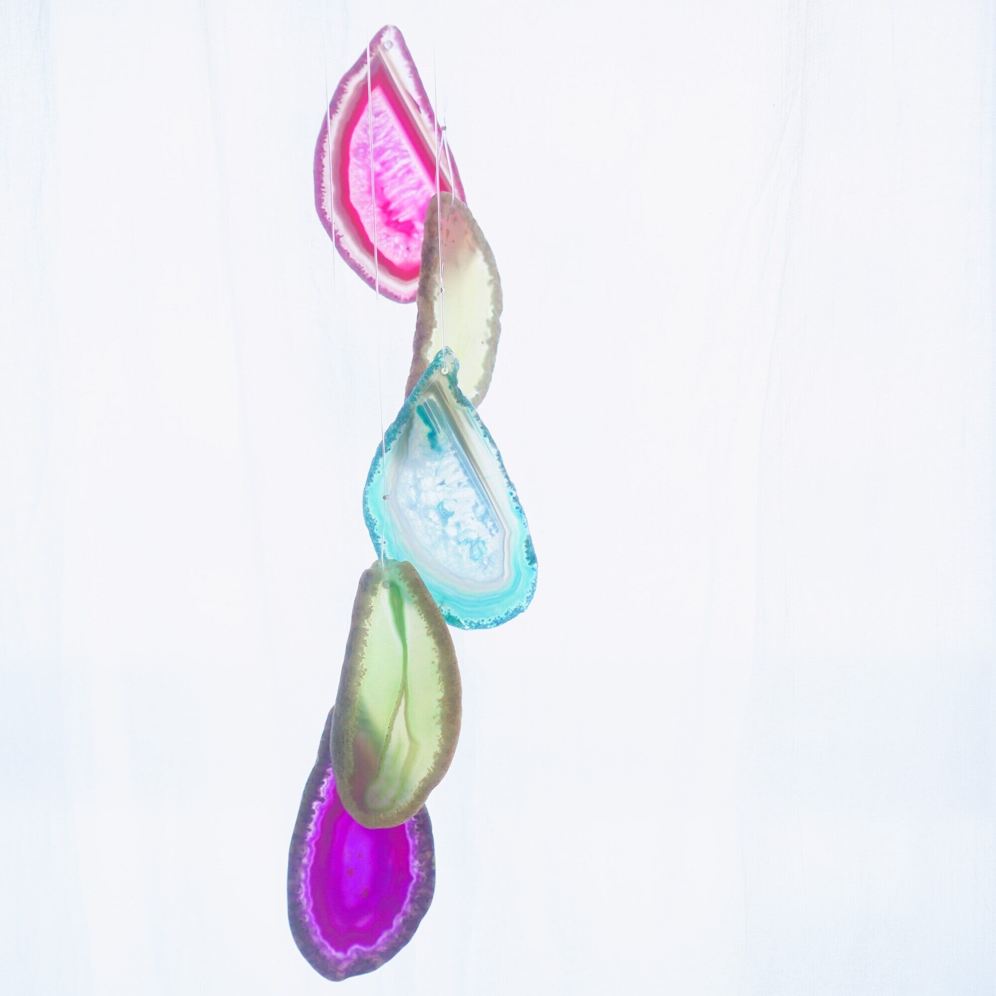連なるアゲートが風を受けて揺れるとチリンチリン、美しい響きの音が鳴りとても癒されます。