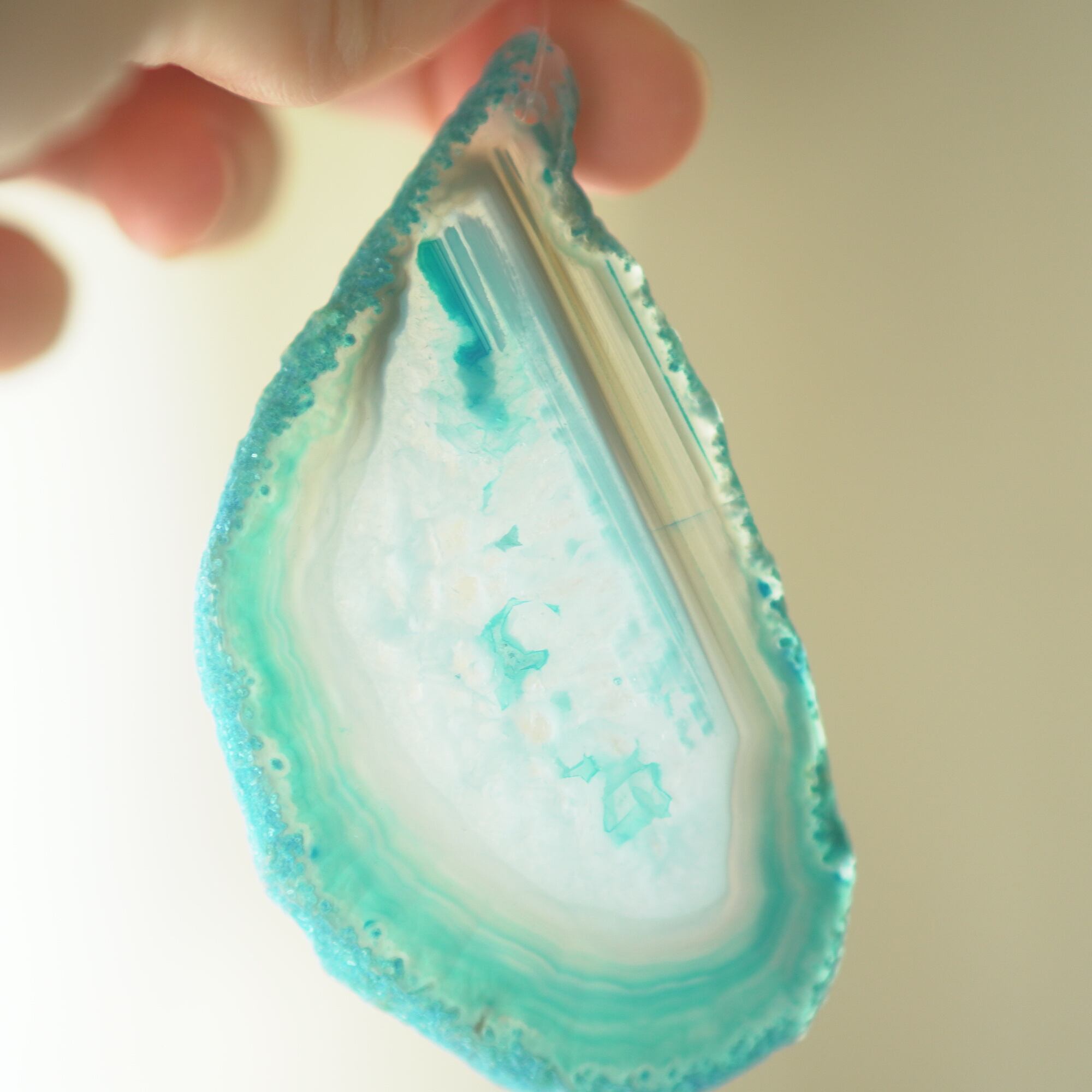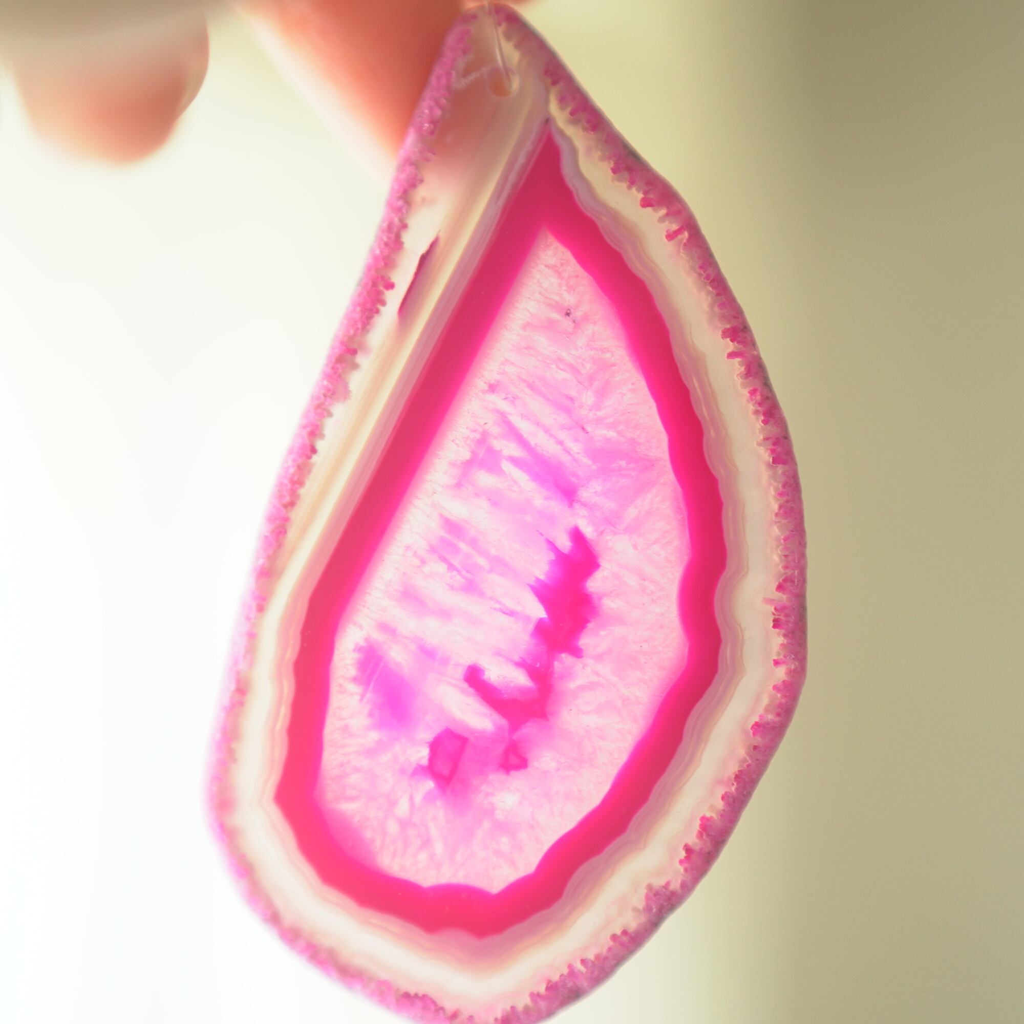 ✧✧✧染色の石なので耐光性(光による経年でのカラー変化の耐性)に優れているわけではなく一日の中で長時間強い日光に当たるような場所に飾られるのはおすすめしないのですが、陽光に透かした時にだけ真価を発揮する美しさがありますので、是非たまに翳したりして光と一緒にお楽しみいただけたらと思っております。特に濃い鮮やかな色など、気になられる場合は、日光のあまり当たらない場所に飾っていただけたらと思います✧✧✧