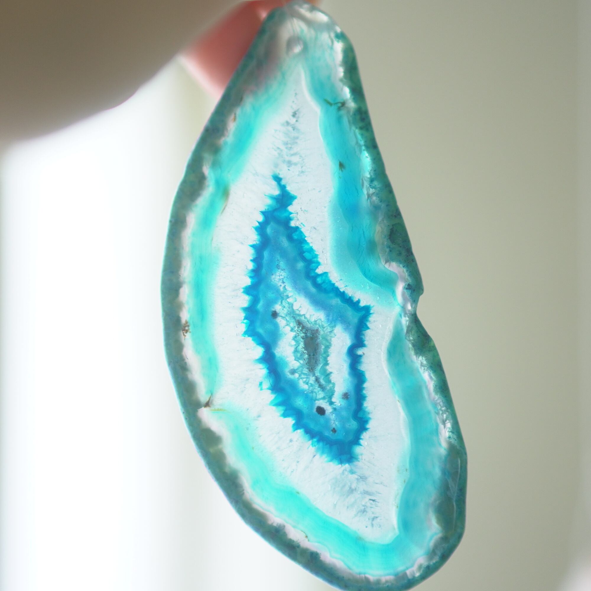 ✧✧✧染色の石なので耐光性(光による経年でのカラー変化の耐性)に優れているわけではなく一日の中で長時間強い日光に当たるような場所に飾られるのはおすすめしないのですが、陽光に透かした時にだけ真価を発揮する美しさがありますので、是非たまに翳したりして光と一緒にお楽しみいただけたらと思っております。特に濃い鮮やかな色など、気になられる場合は、日光のあまり当たらない場所に飾っていただけたらと思います✧✧✧