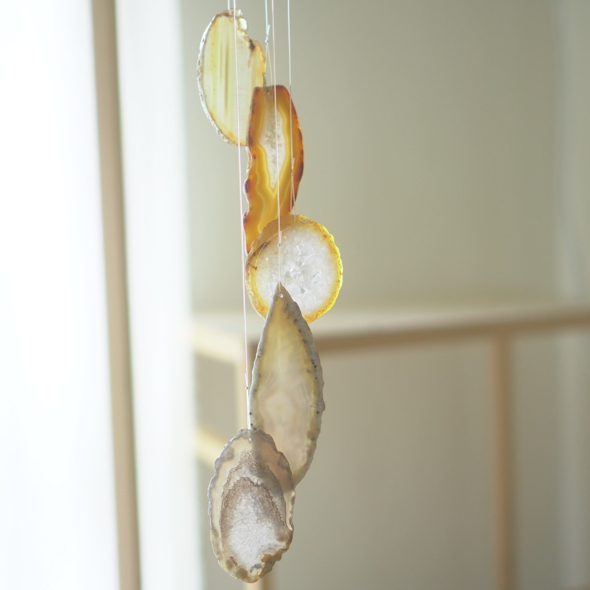 連なるアゲートが風を受けて揺れるとチリンチリン、美しい響きの音が鳴りとても癒されます。