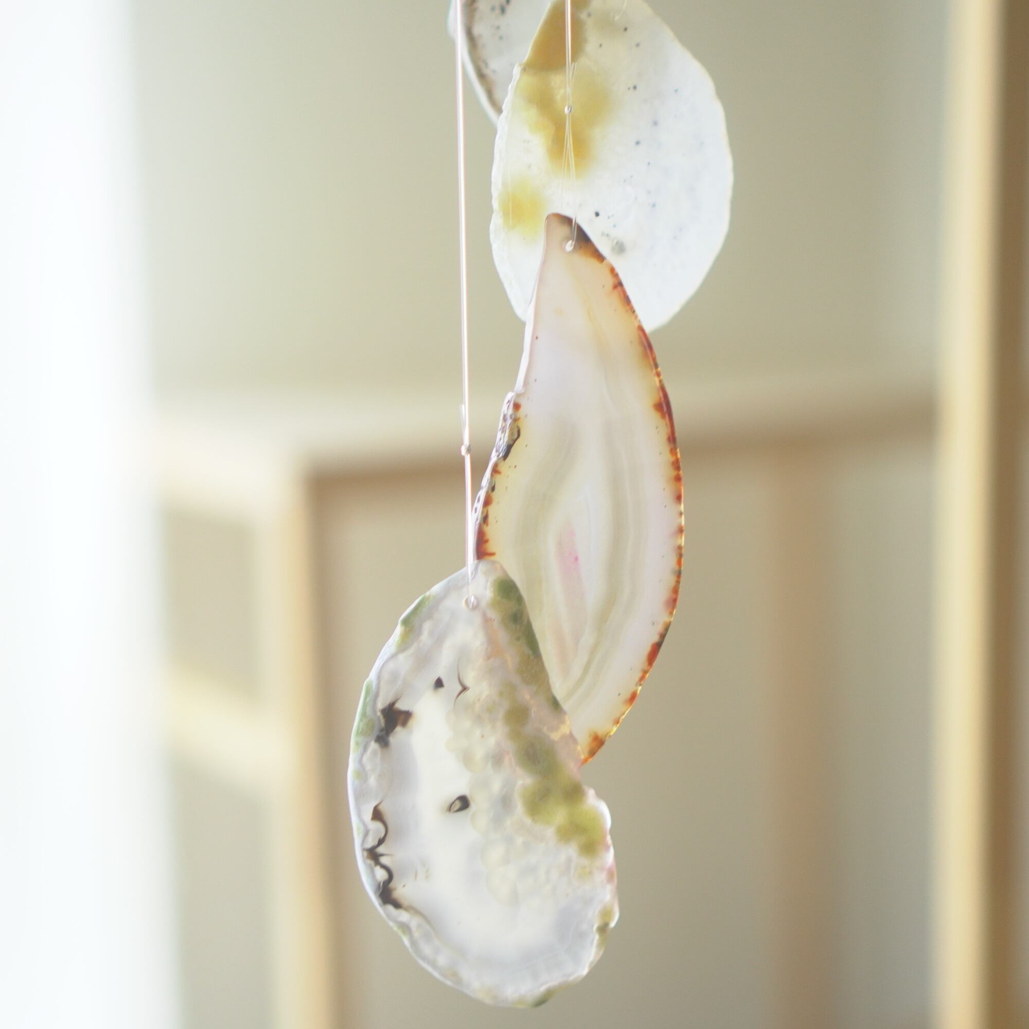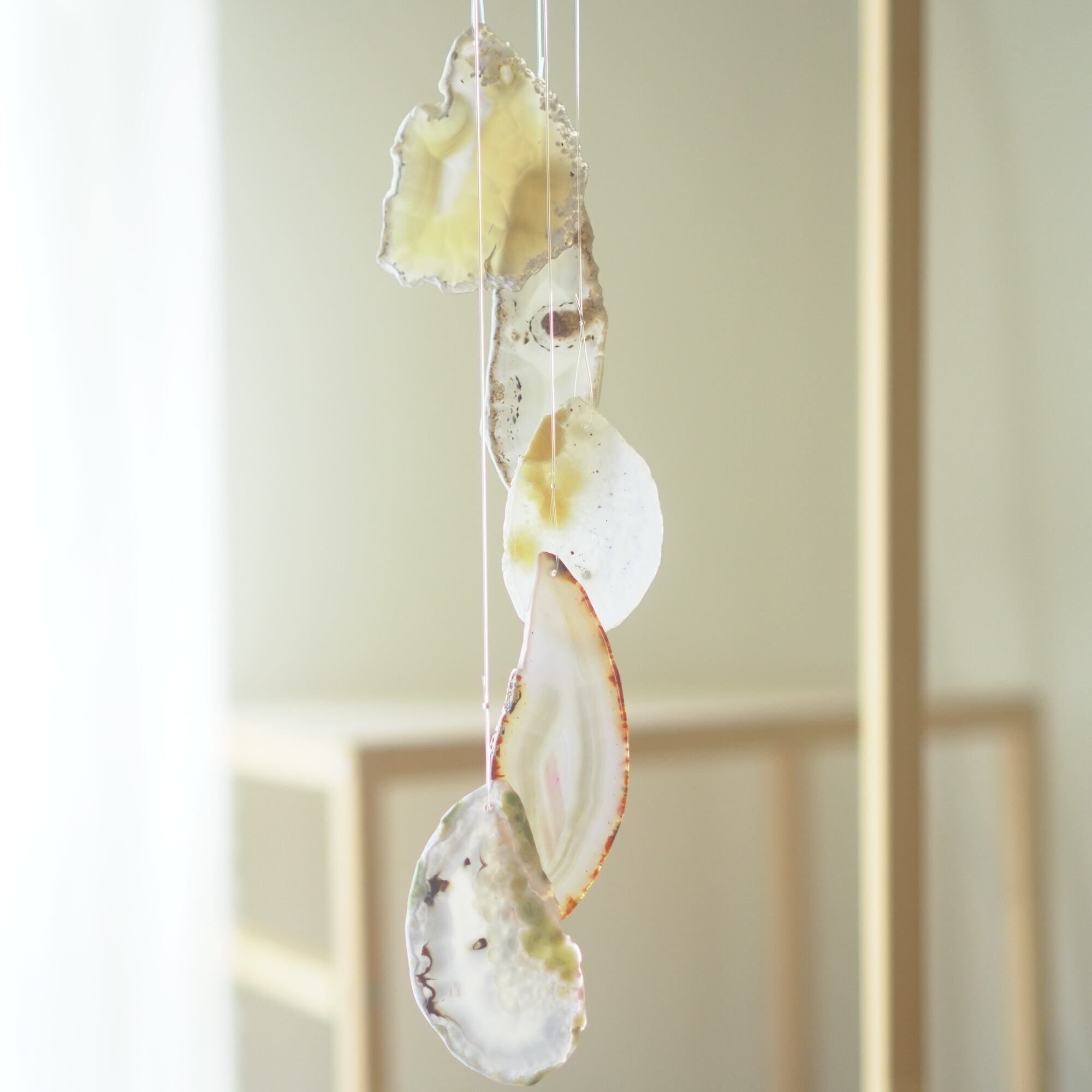 連なるアゲートが風を受けて揺れるとチリンチリン、美しい響きの音が鳴りとても癒されます。