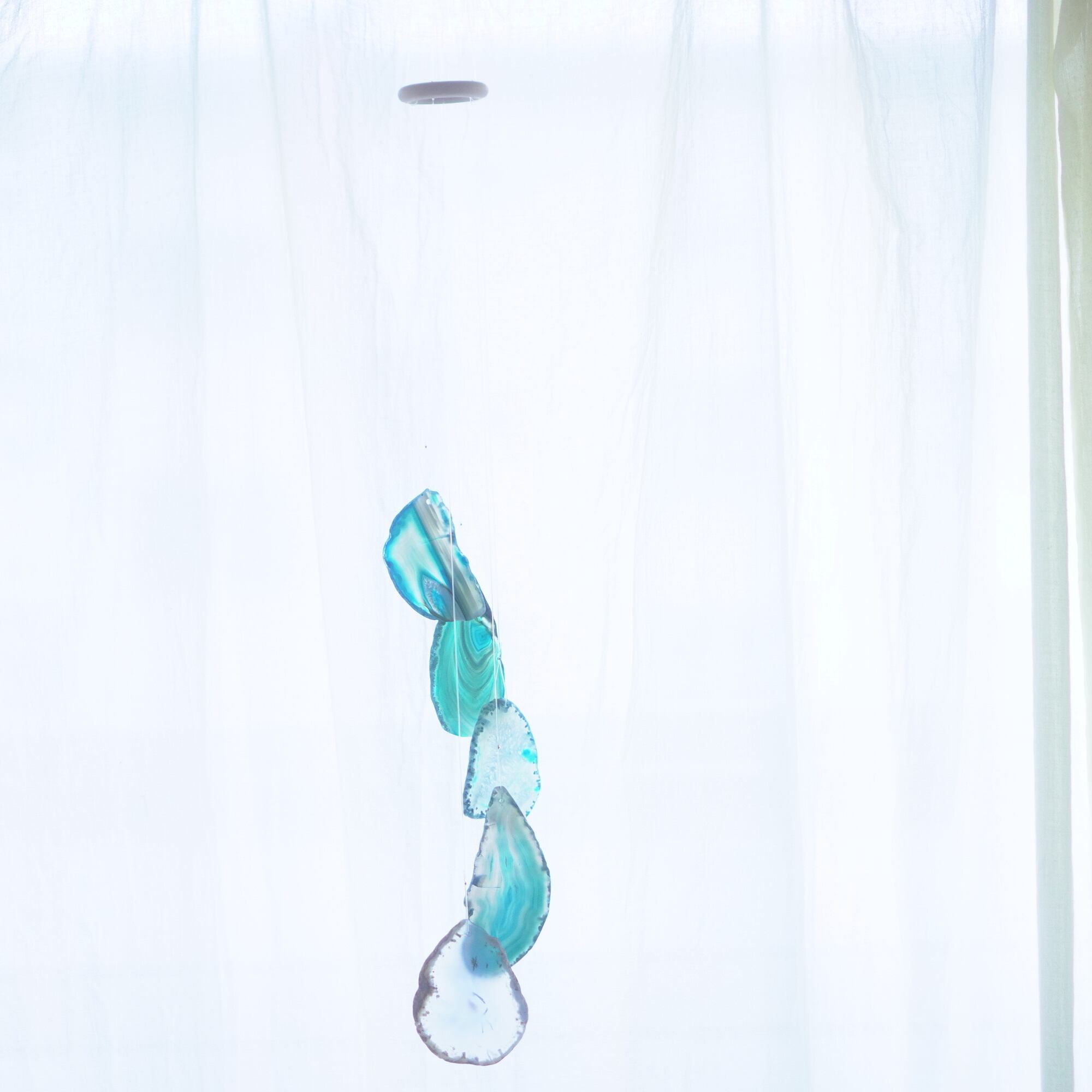 連なるアゲートが風を受けて揺れるとチリンチリン、美しい響きの音が鳴りとても癒されます。