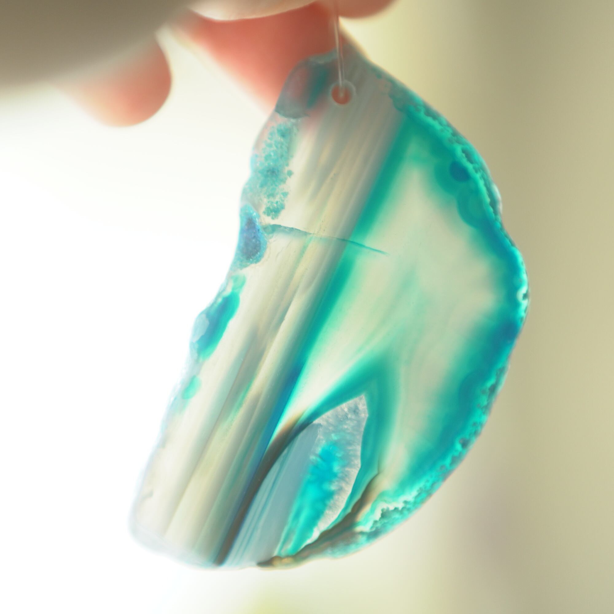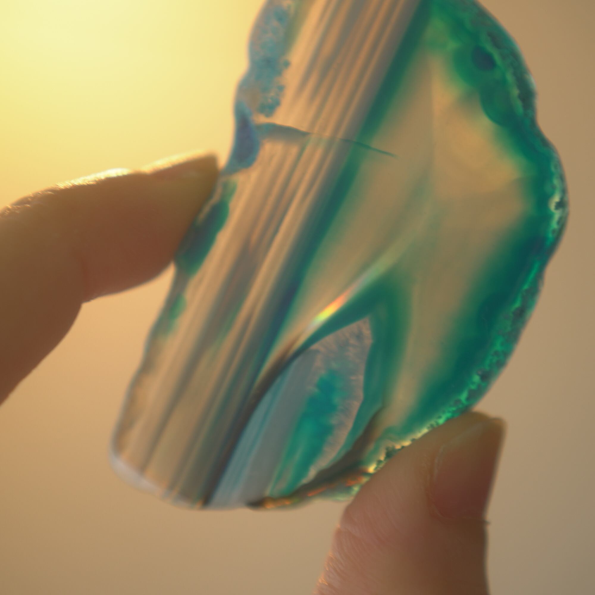 ✧✧✧染色の石なので耐光性(光による経年でのカラー変化の耐性)に優れているわけではなく一日の中で長時間強い日光に当たるような場所に飾られるのはおすすめしないのですが、陽光に透かした時にだけ真価を発揮する美しさがありますので、是非たまに翳したりして光と一緒にお楽しみいただけたらと思っております。特に濃い鮮やかな色など、気になられる場合は、日光のあまり当たらない場所に飾っていただけたらと思います✧✧✧