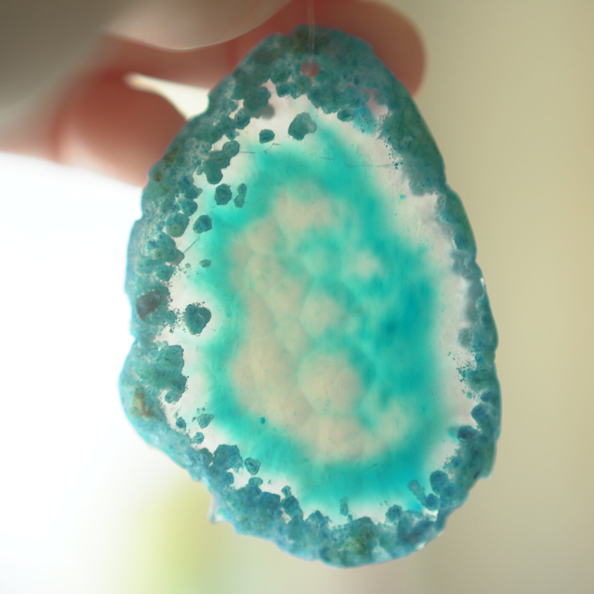 ✧✧✧染色の石なので耐光性(光による経年でのカラー変化の耐性)に優れているわけではなく一日の中で長時間強い日光に当たるような場所に飾られるのはおすすめしないのですが、陽光に透かした時にだけ真価を発揮する美しさがありますので、是非たまに翳したりして光と一緒にお楽しみいただけたらと思っております。特に濃い鮮やかな色など、気になられる場合は、日光のあまり当たらない場所に飾っていただけたらと思います✧✧✧