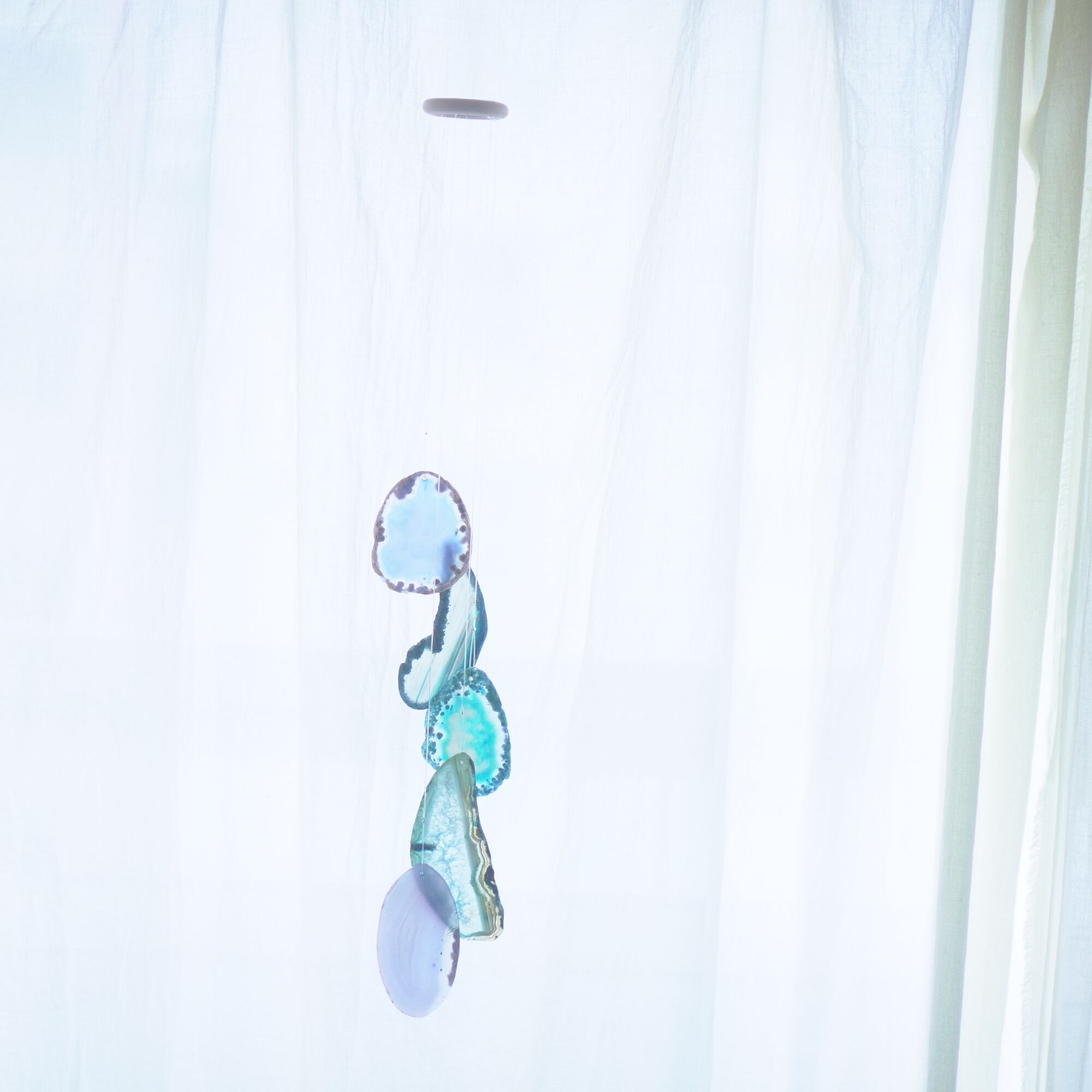 連なるアゲートが風を受けて揺れるとチリンチリン、美しい響きの音が鳴りとても癒されます。
