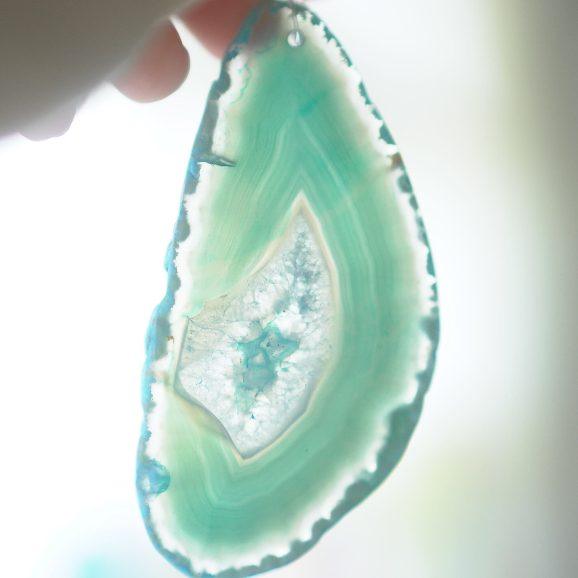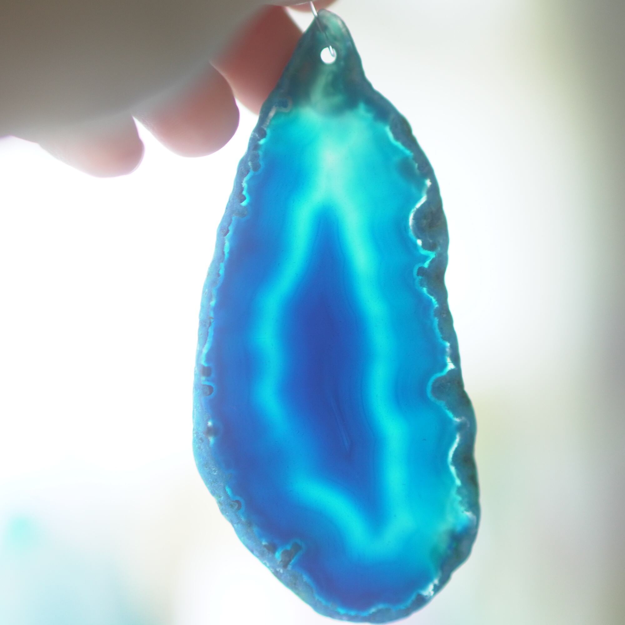 ✧✧✧染色の石なので耐光性(光による経年でのカラー変化の耐性)に優れているわけではなく一日の中で長時間強い日光に当たるような場所に飾られるのはおすすめしないのですが、陽光に透かした時にだけ真価を発揮する美しさがありますので、是非たまに翳したりして光と一緒にお楽しみいただけたらと思っております。特に濃い鮮やかな色など、気になられる場合は、日光のあまり当たらない場所に飾っていただけたらと思います✧✧✧