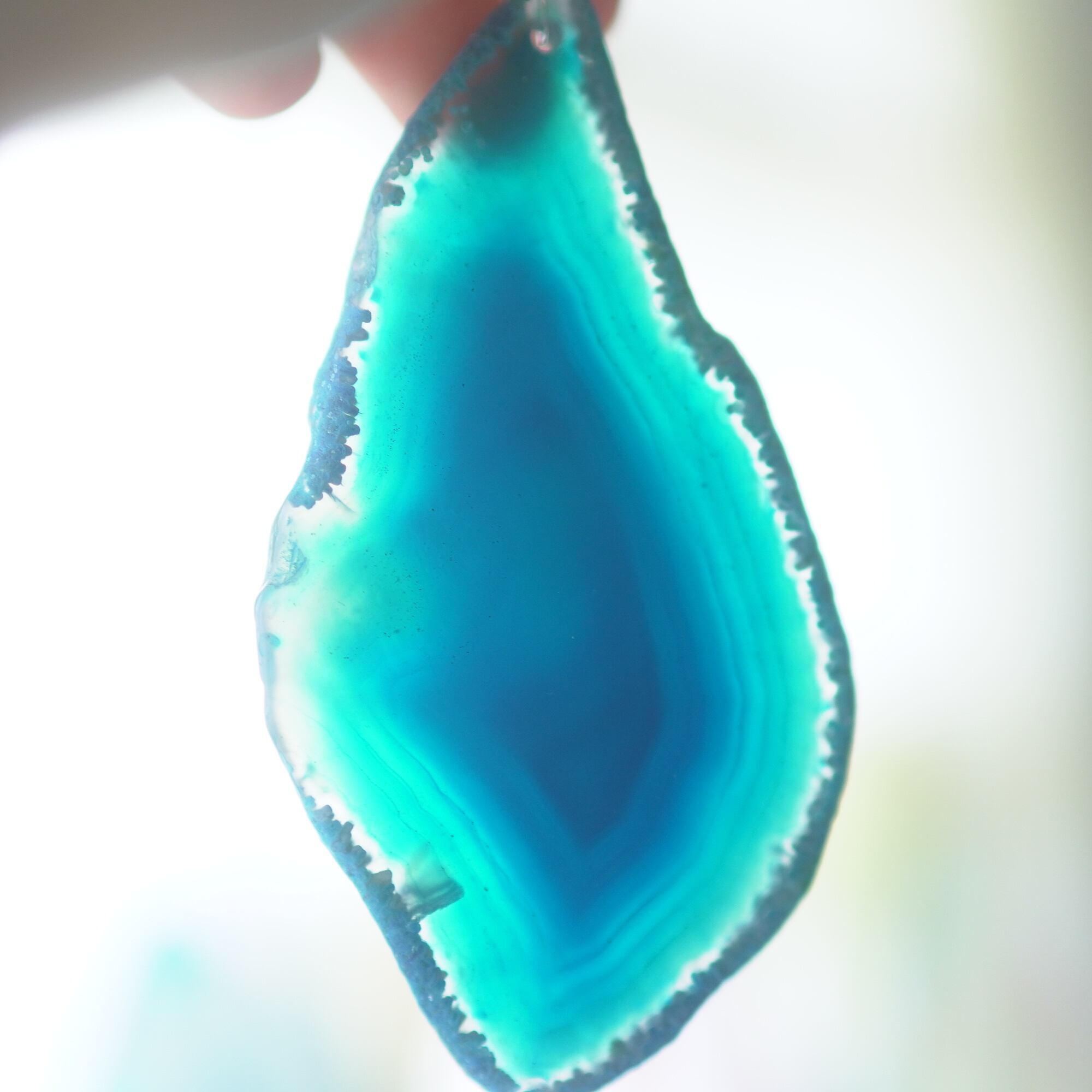✧✧✧染色の石なので耐光性(光による経年でのカラー変化の耐性)に優れているわけではなく一日の中で長時間強い日光に当たるような場所に飾られるのはおすすめしないのですが、陽光に透かした時にだけ真価を発揮する美しさがありますので、是非たまに翳したりして光と一緒にお楽しみいただけたらと思っております。特に濃い鮮やかな色など、気になられる場合は、日光のあまり当たらない場所に飾っていただけたらと思います✧✧✧