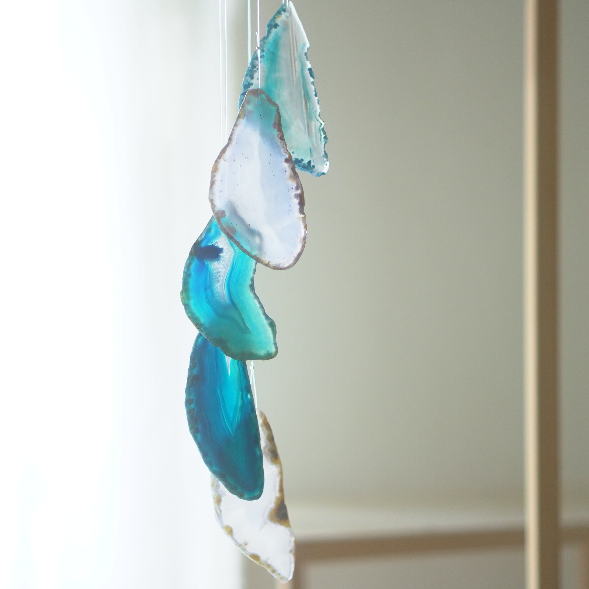 連なるアゲートが風を受けて揺れるとチリンチリン、美しい響きの音が鳴りとても癒されます。