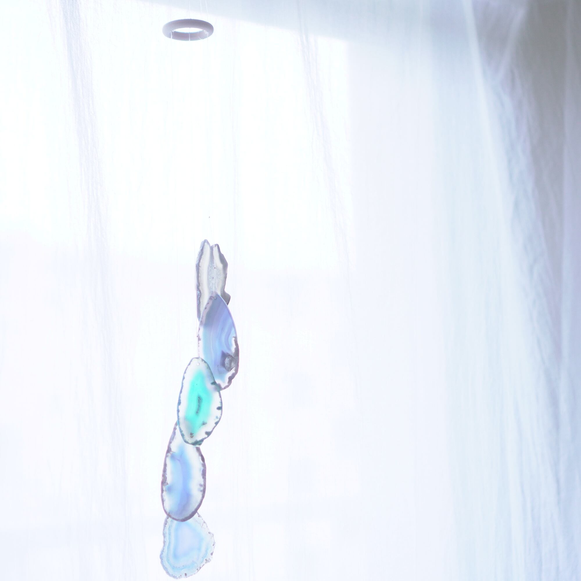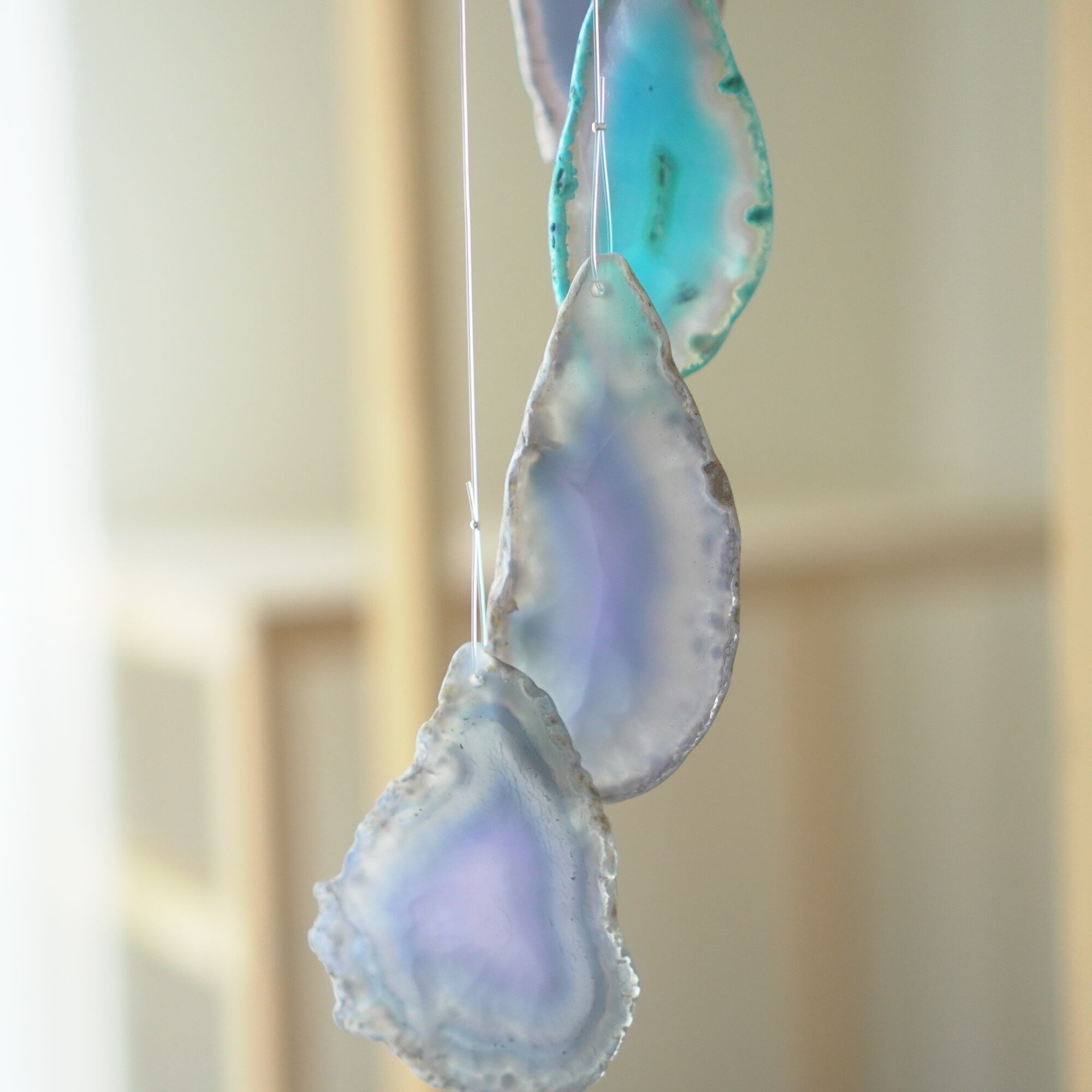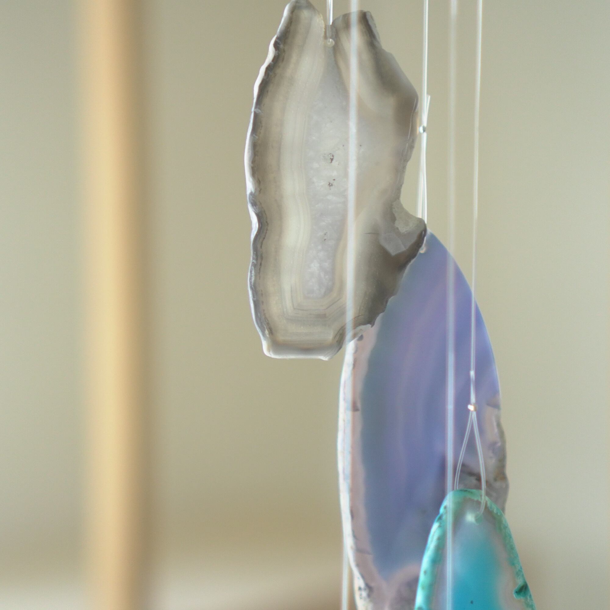 連なるアゲートが風を受けて揺れるとチリンチリン、美しい響きの音が鳴りとても癒されます。