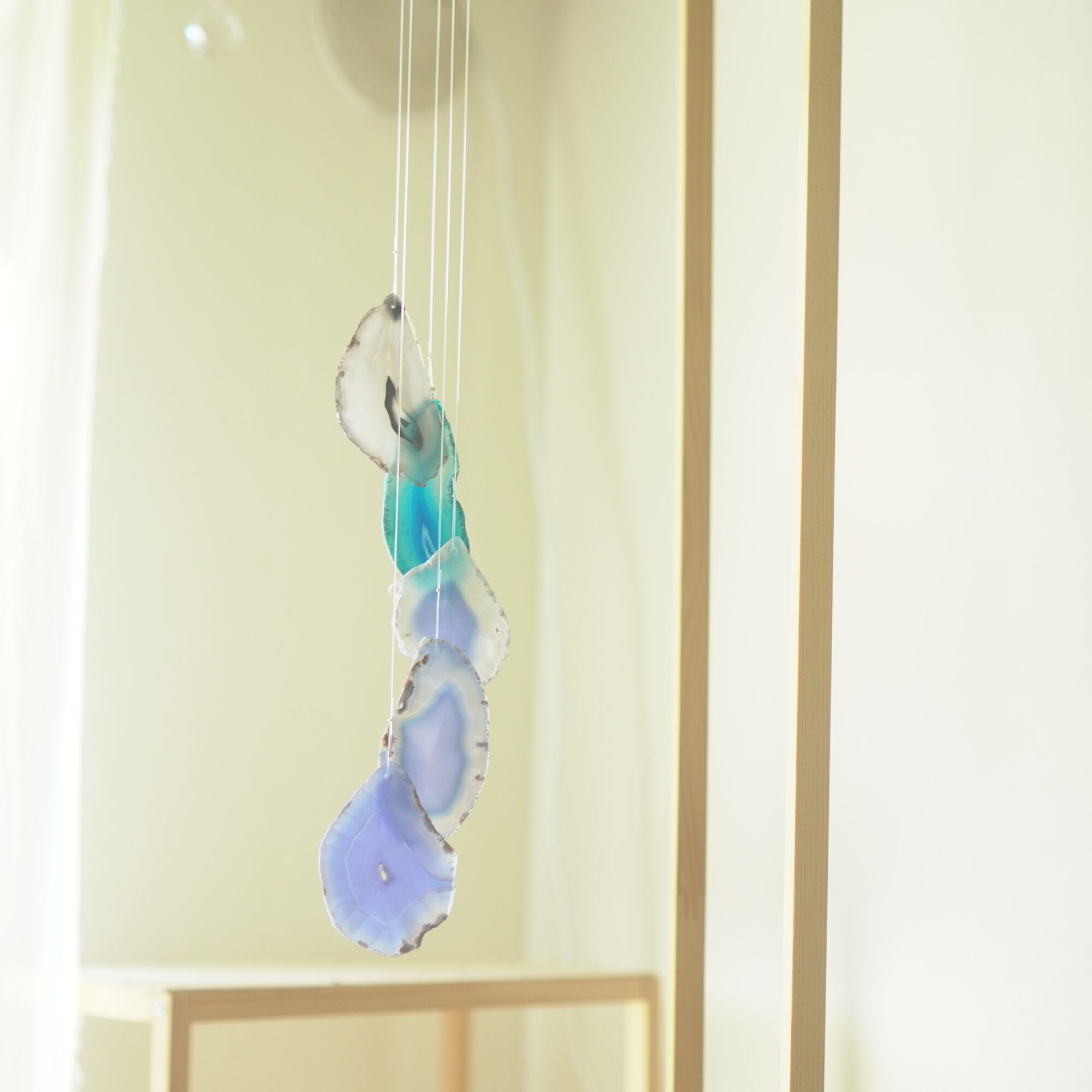 連なるアゲートが風を受けて揺れるとチリンチリン、美しい響きの音が鳴りとても癒されます。