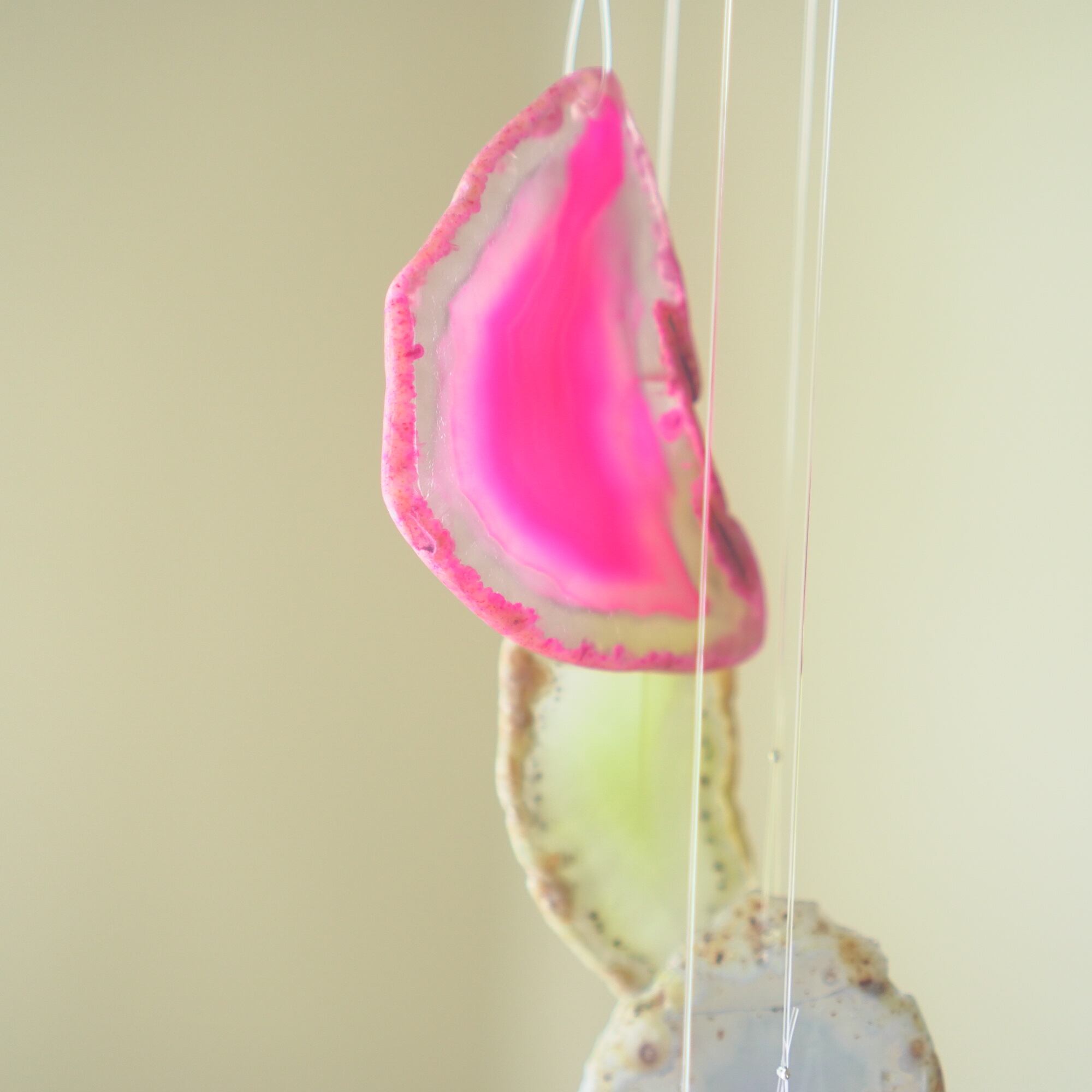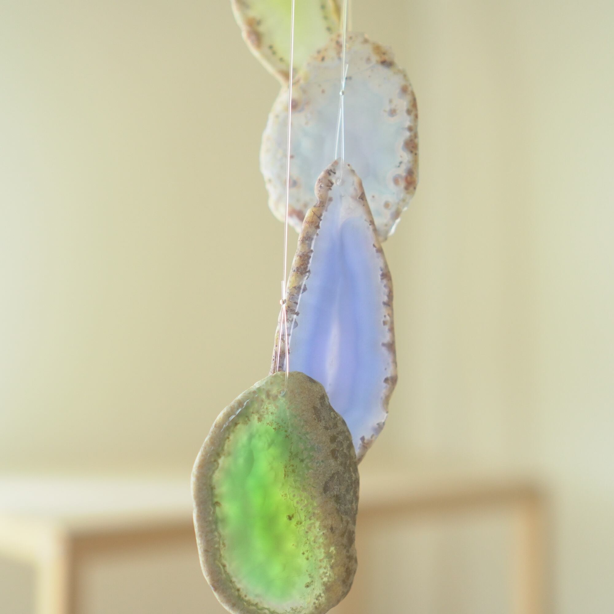 連なるアゲートが風を受けて揺れるとチリンチリン、美しい響きの音が鳴りとても癒されます。