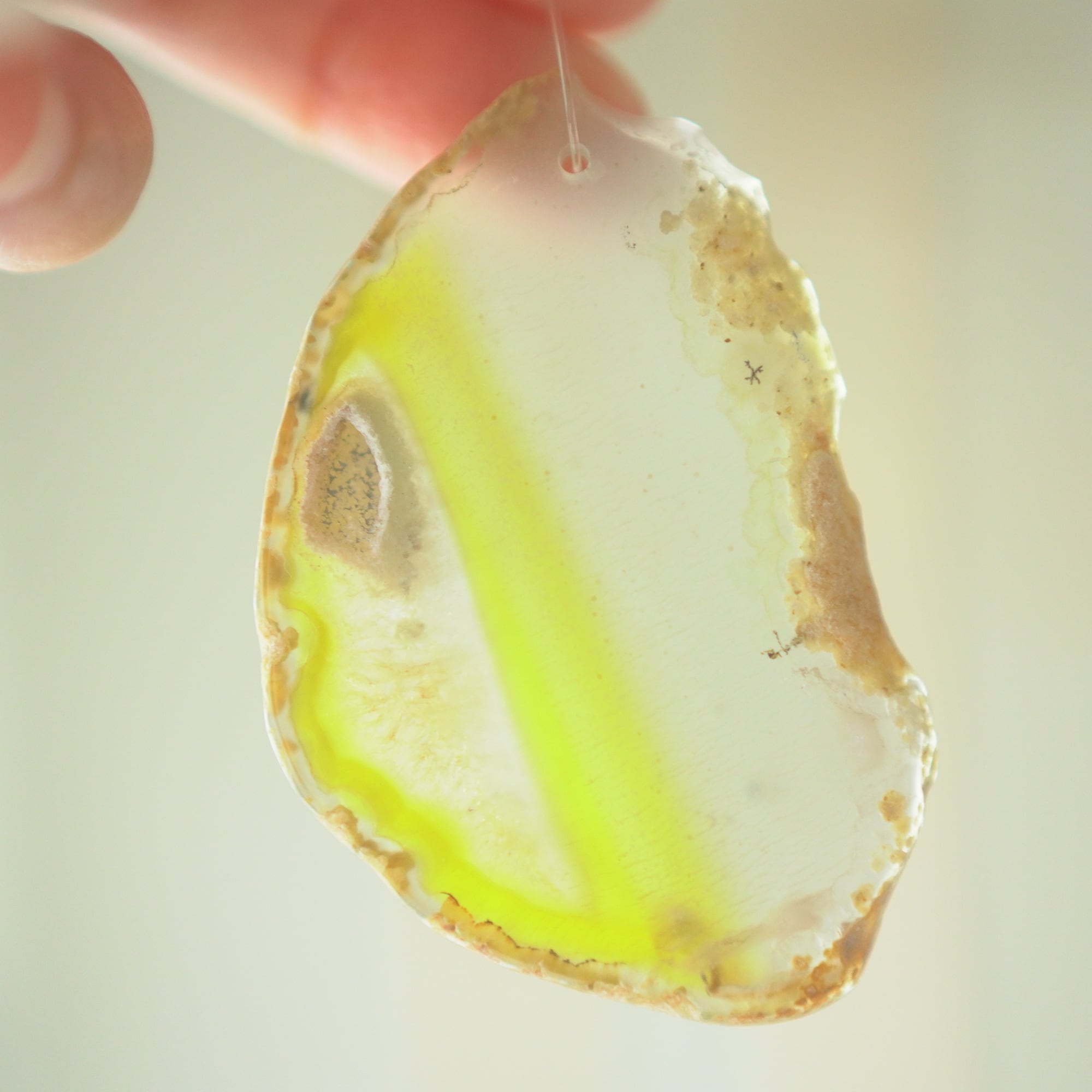✧✧✧染色の石なので耐光性(光による経年でのカラー変化の耐性)に優れているわけではなく一日の中で長時間強い日光に当たるような場所に飾られるのはおすすめしないのですが、陽光に透かした時にだけ真価を発揮する美しさがありますので、是非たまに翳したりして光と一緒にお楽しみいただけたらと思っております。特に濃い鮮やかな色など、気になられる場合は、日光のあまり当たらない場所に飾っていただけたらと思います✧✧✧