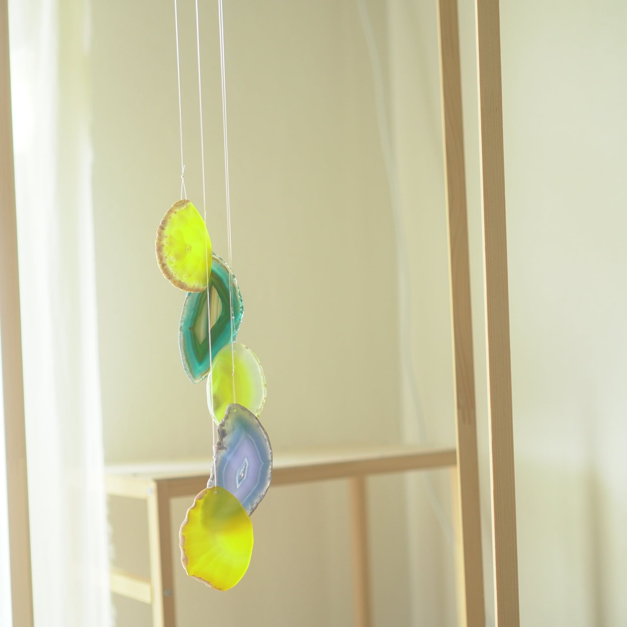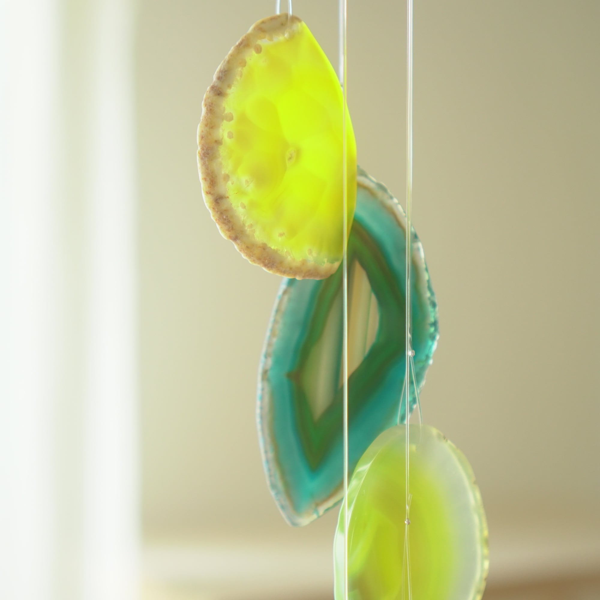 連なるアゲートが風を受けて揺れるとチリンチリン、美しい響きの音が鳴りとても癒されます。