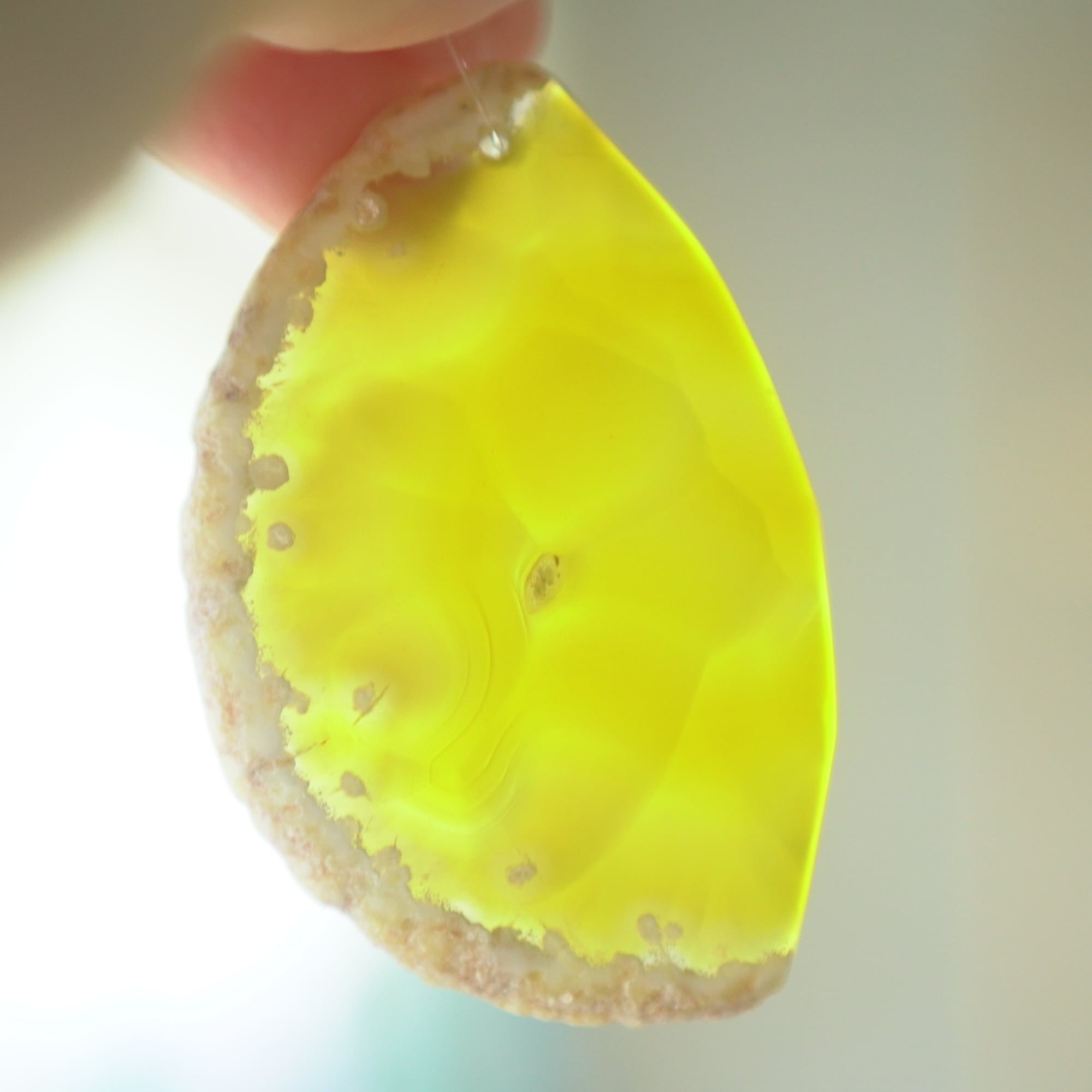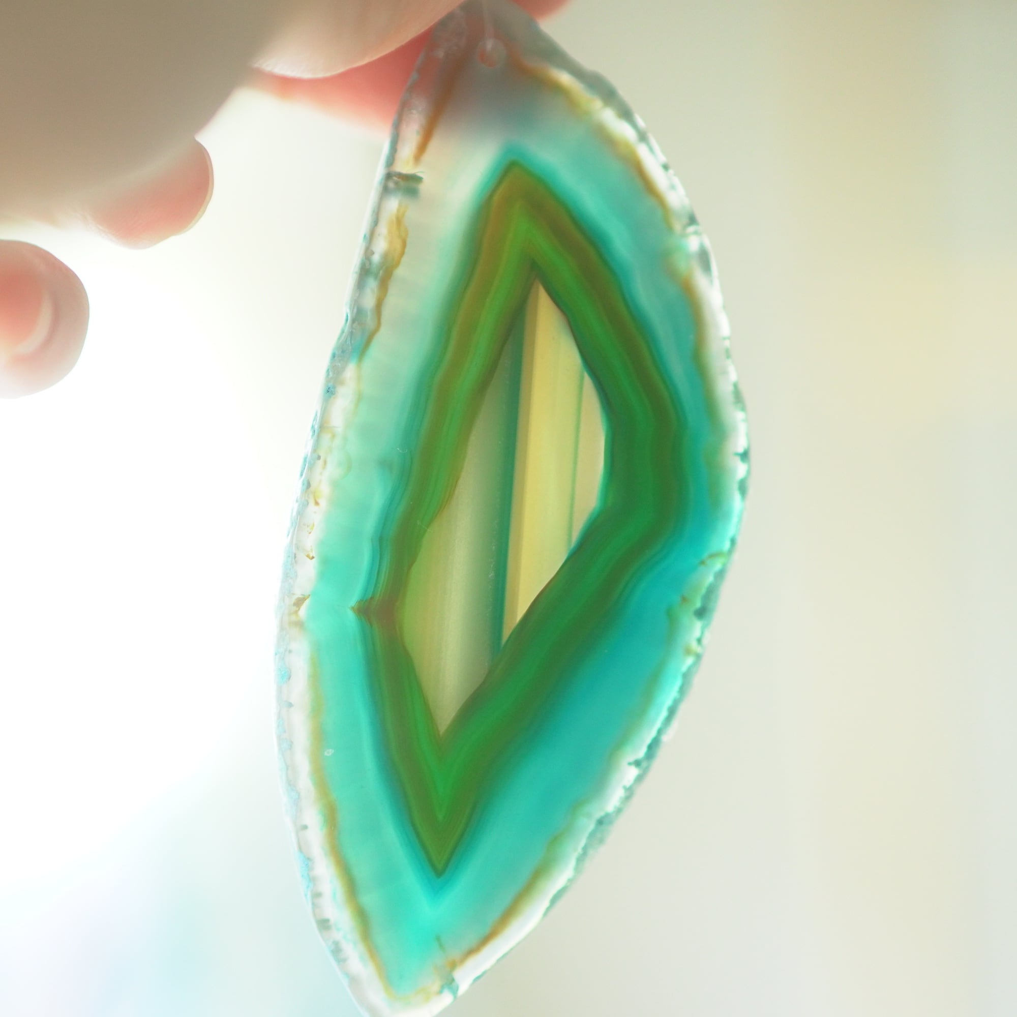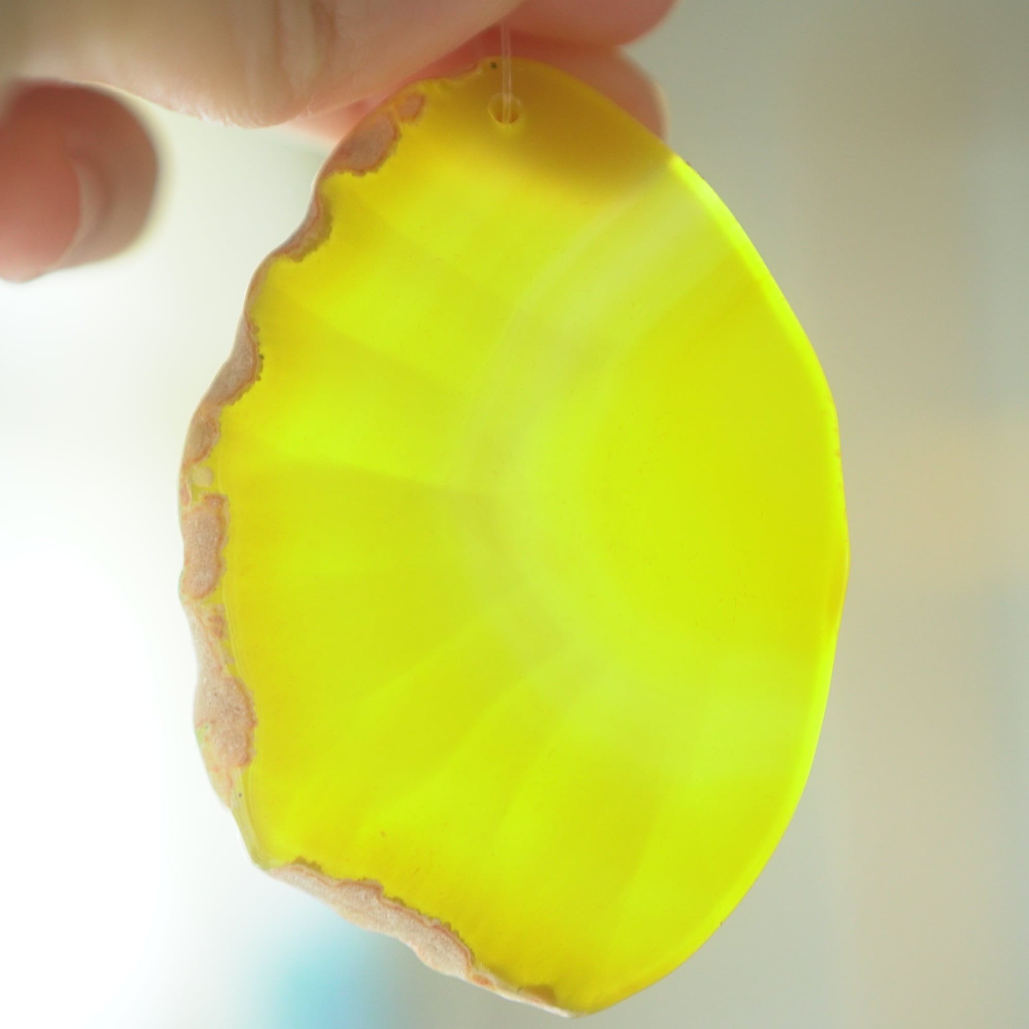 ✧✧✧染色の石なので耐光性(光による経年でのカラー変化の耐性)に優れているわけではなく一日の中で長時間強い日光に当たるような場所に飾られるのはおすすめしないのですが、陽光に透かした時にだけ真価を発揮する美しさがありますので、是非たまに翳したりして光と一緒にお楽しみいただけたらと思っております。特に濃い鮮やかな色など、気になられる場合は、日光のあまり当たらない場所に飾っていただけたらと思います✧✧✧