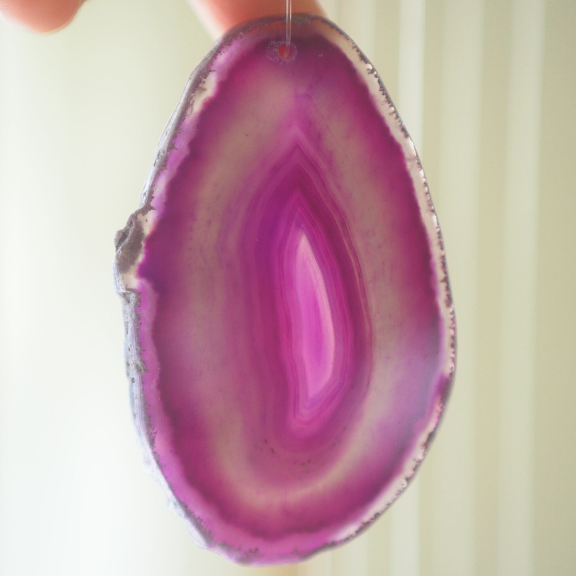 ✧✧✧染色の石なので耐光性(光による経年でのカラー変化の耐性)に優れているわけではなく一日の中で長時間強い日光に当たるような場所に飾られるのはおすすめしないのですが、陽光に透かした時にだけ真価を発揮する美しさがありますので、是非たまに翳したりして光と一緒にお楽しみいただけたらと思っております。特に濃い鮮やかな色など、気になられる場合は、日光のあまり当たらない場所に飾っていただけたらと思います✧✧✧