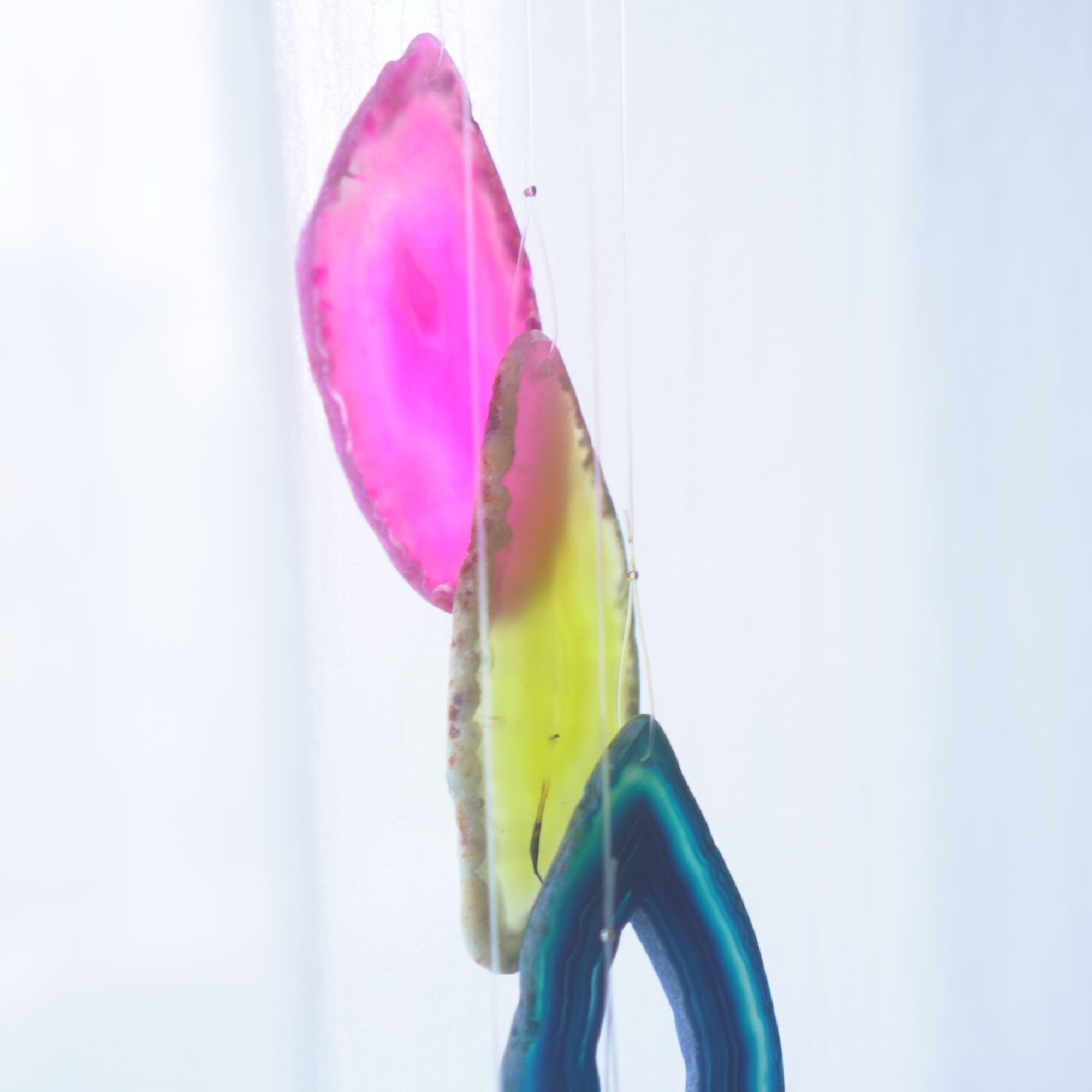 連なるアゲートが風を受けて揺れるとチリンチリン、美しい響きの音が鳴りとても癒されます。