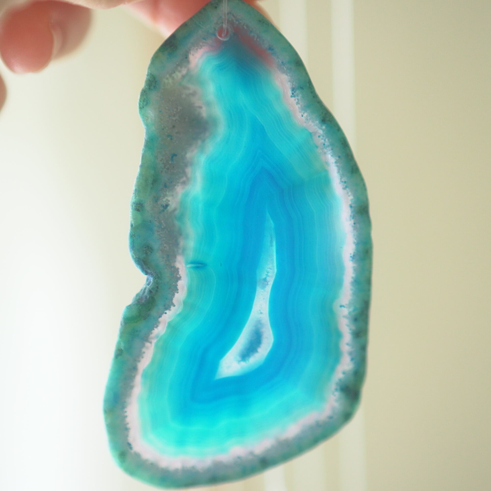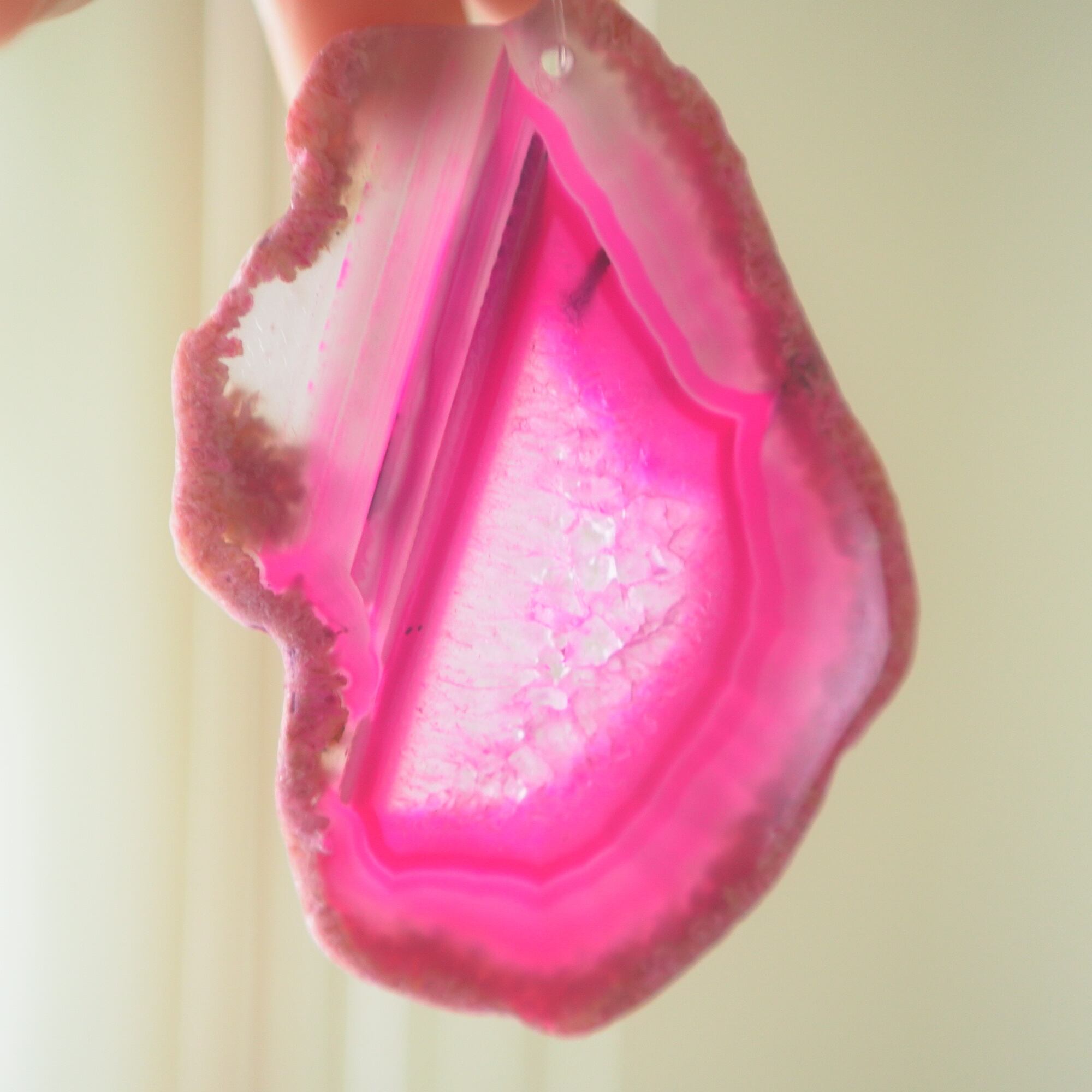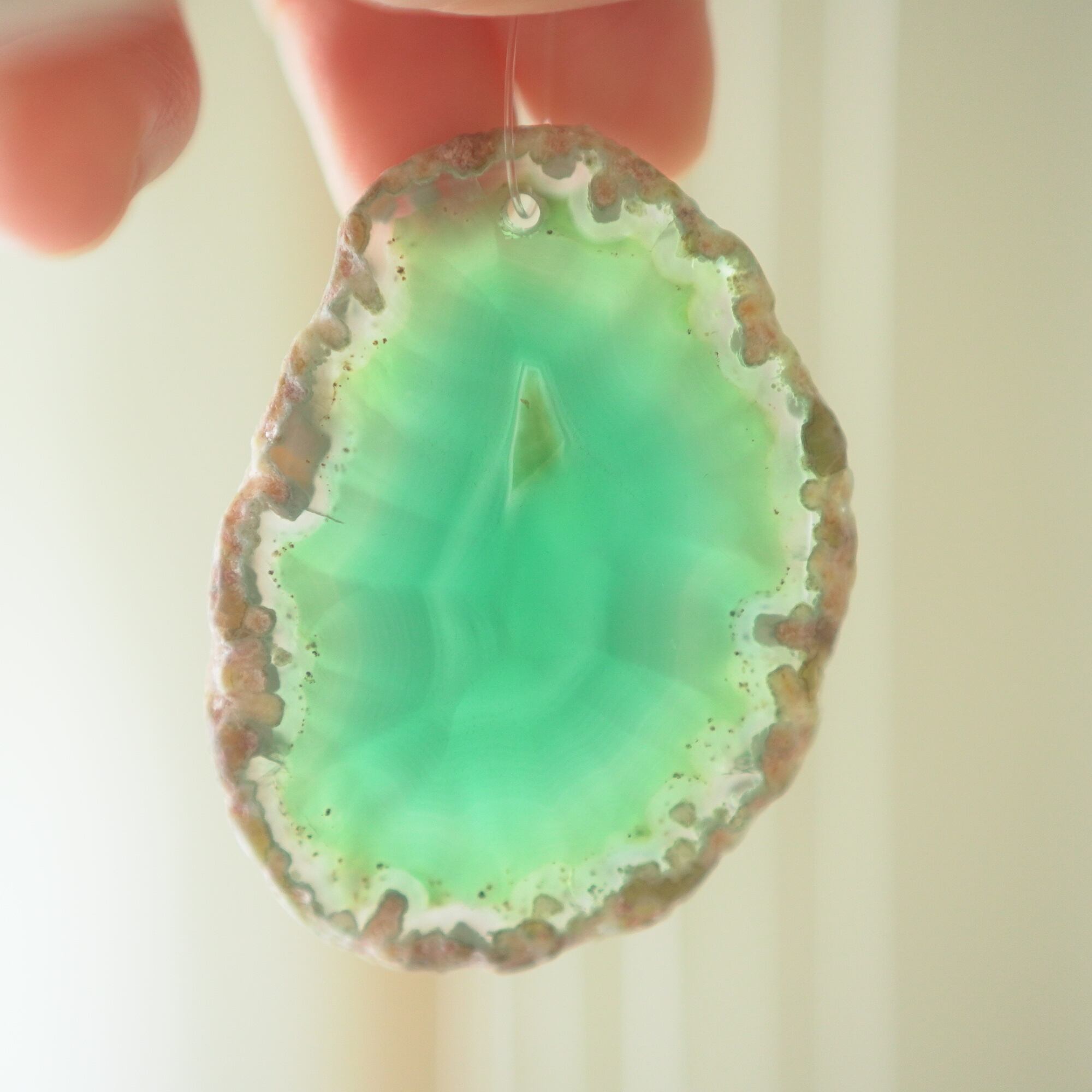 ✧✧✧染色の石なので耐光性(光による経年でのカラー変化の耐性)に優れているわけではなく一日の中で長時間強い日光に当たるような場所に飾られるのはおすすめしないのですが、陽光に透かした時にだけ真価を発揮する美しさがありますので、是非たまに翳したりして光と一緒にお楽しみいただけたらと思っております。特に濃い鮮やかな色など、気になられる場合は、日光のあまり当たらない場所に飾っていただけたらと思います✧✧✧