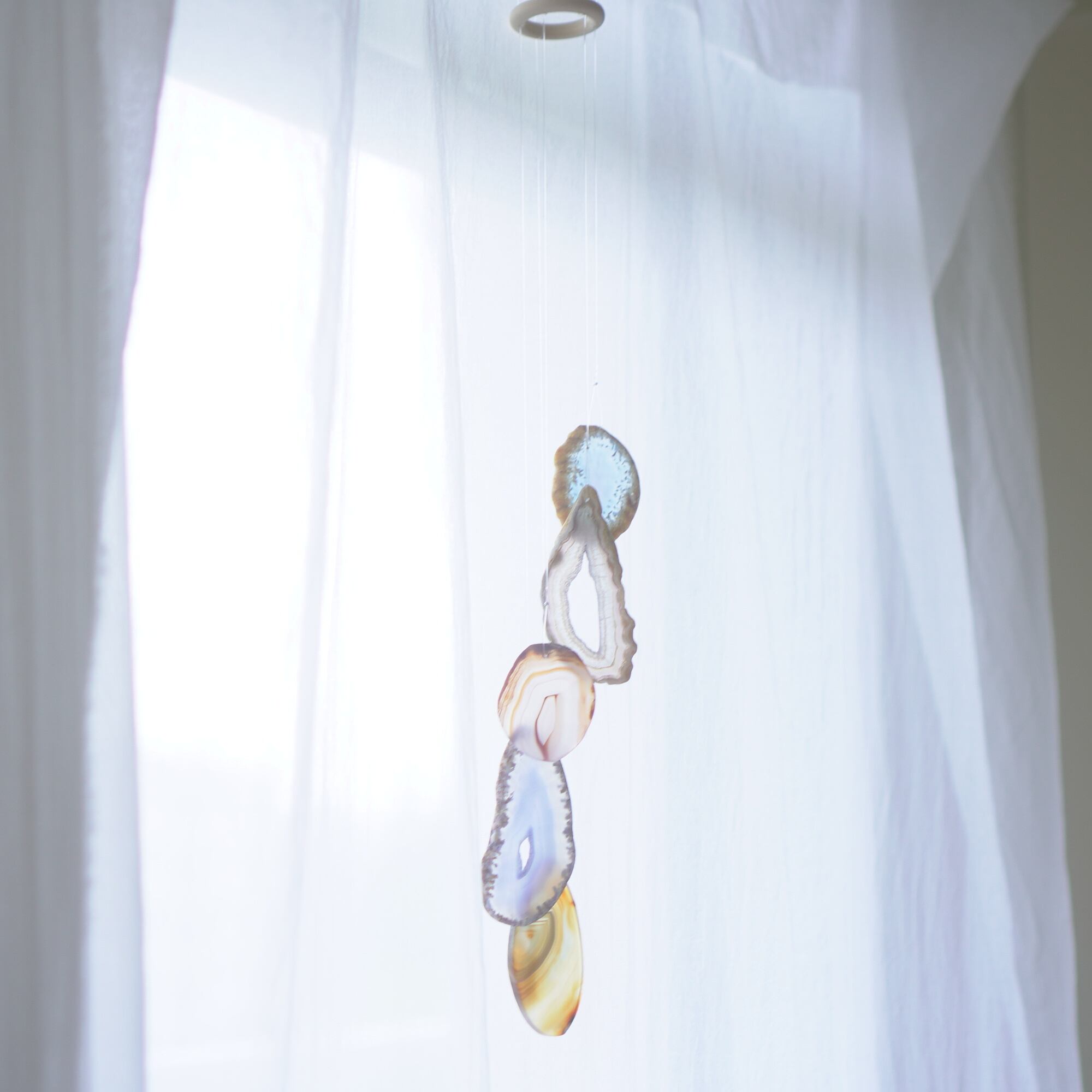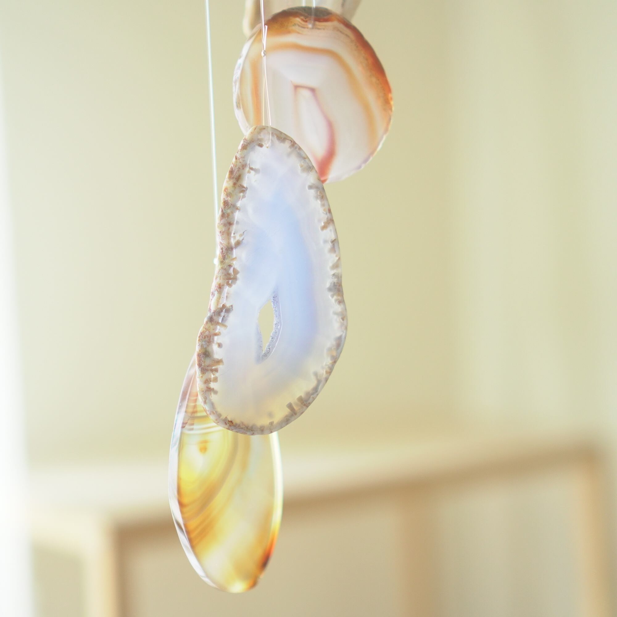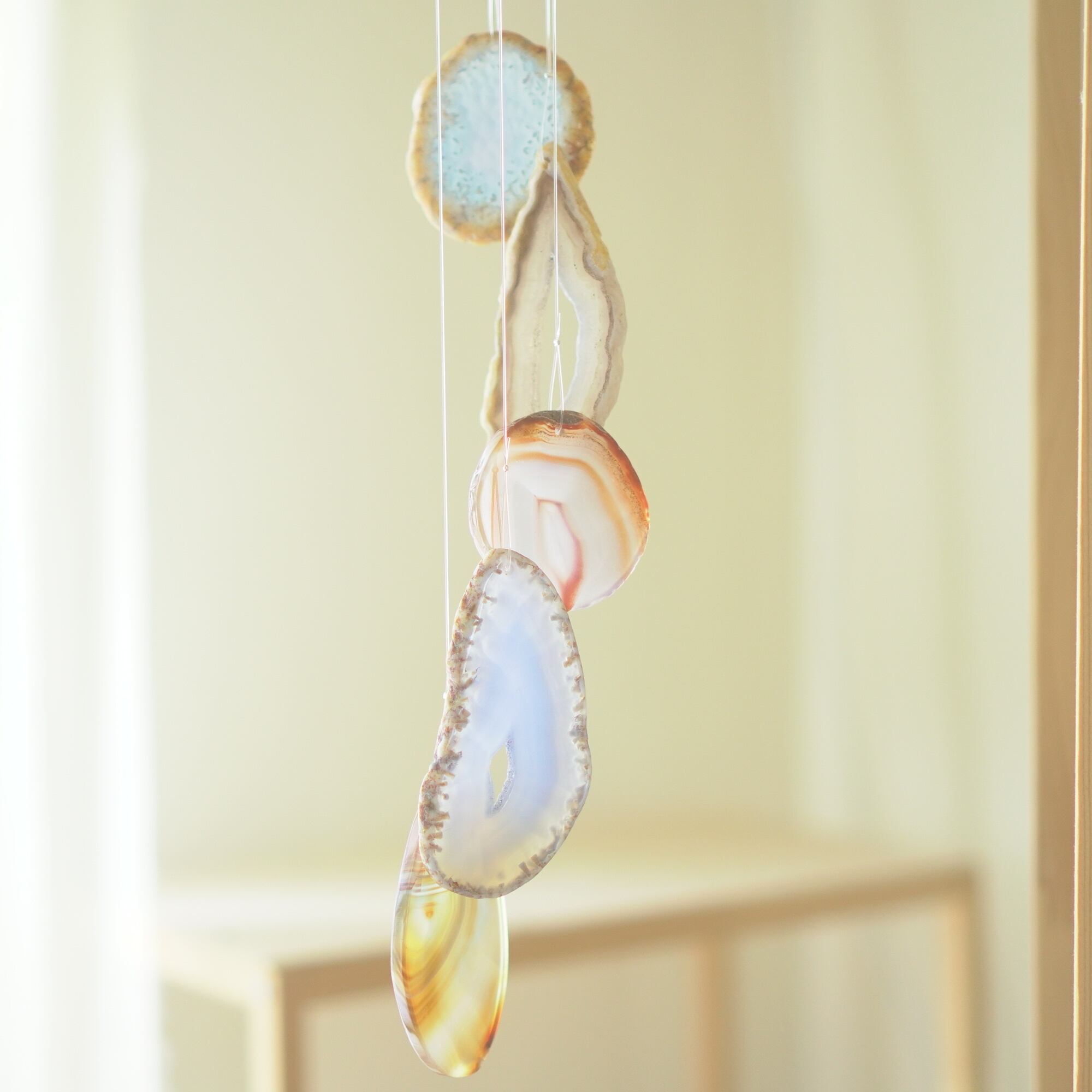 連なるアゲートが風を受けて揺れるとチリンチリン、美しい響きの音が鳴りとても癒されます。