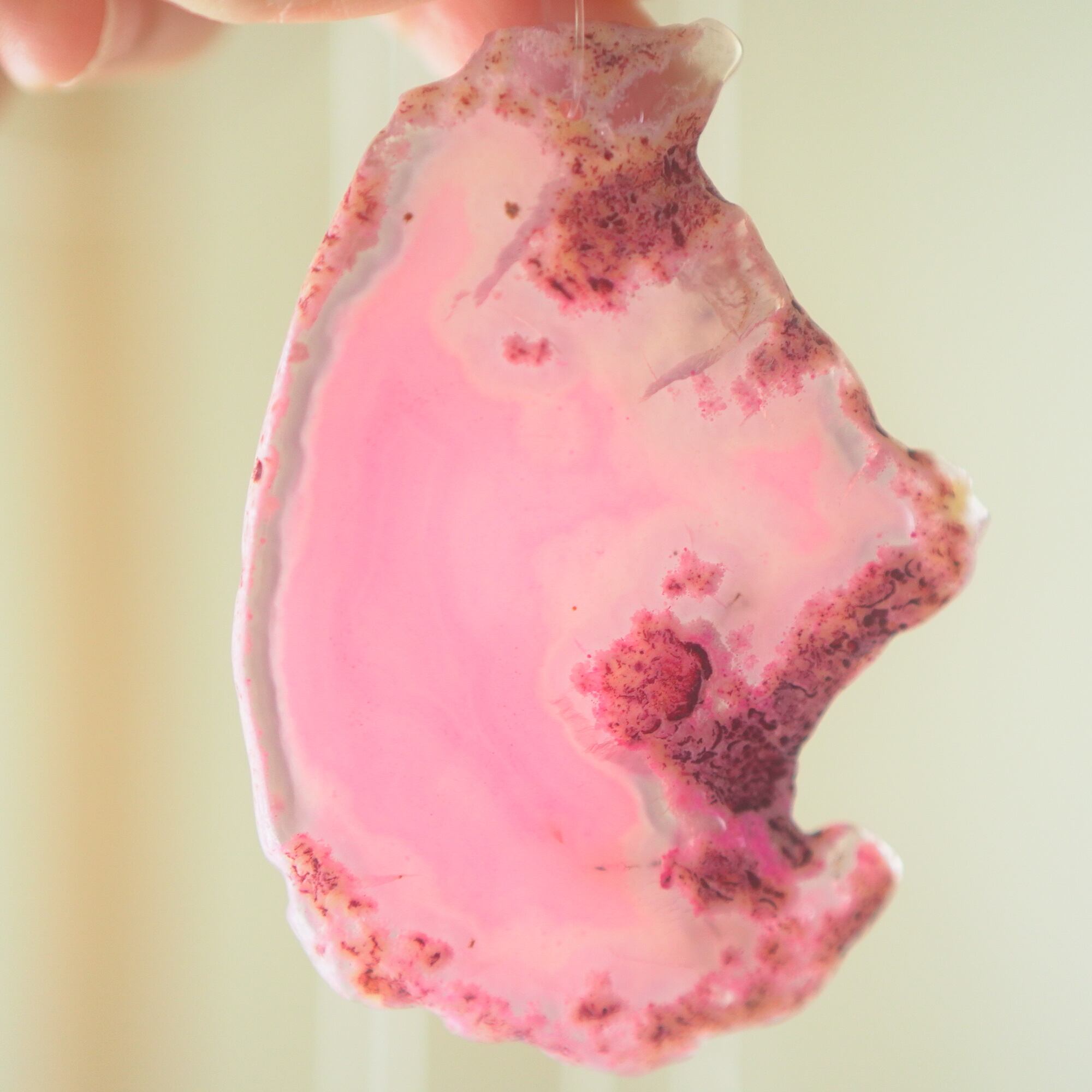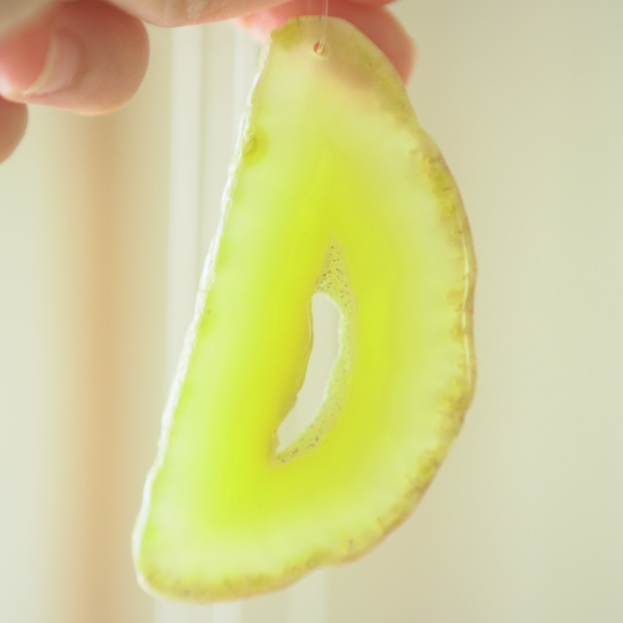 ✧✧✧染色の石なので耐光性(光による経年でのカラー変化の耐性)に優れているわけではなく一日の中で長時間強い日光に当たるような場所に飾られるのはおすすめしないのですが、陽光に透かした時にだけ真価を発揮する美しさがありますので、是非たまに翳したりして光と一緒にお楽しみいただけたらと思っております。特に濃い鮮やかな色など、気になられる場合は、日光のあまり当たらない場所に飾っていただけたらと思います✧✧✧