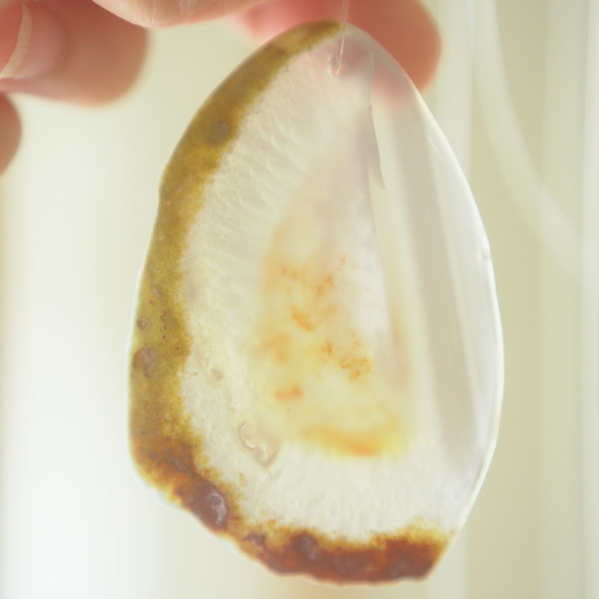 ✧✧✧瑪瑙の濃い色は染色によるもので、水に濡れたり布で擦ると多少色落ちします。飾るものなので大丈夫かと思いますが白いお洋服などには触れないようにされてください。汚れが気になる時は若干の色落ち前提で水を軽く含ませた布やティッシュでやさしく拭いていただくことは大丈夫です。また、画像のような細かなヒビ・カケはスライスメノウの加工上かなり多くあるので、チャイムとしての機能や全体の外観を著しく損なうものを除き、見た目の完璧さ<音色の響き重視で選んで使用しております、よろしくお願い致します✧✧✧