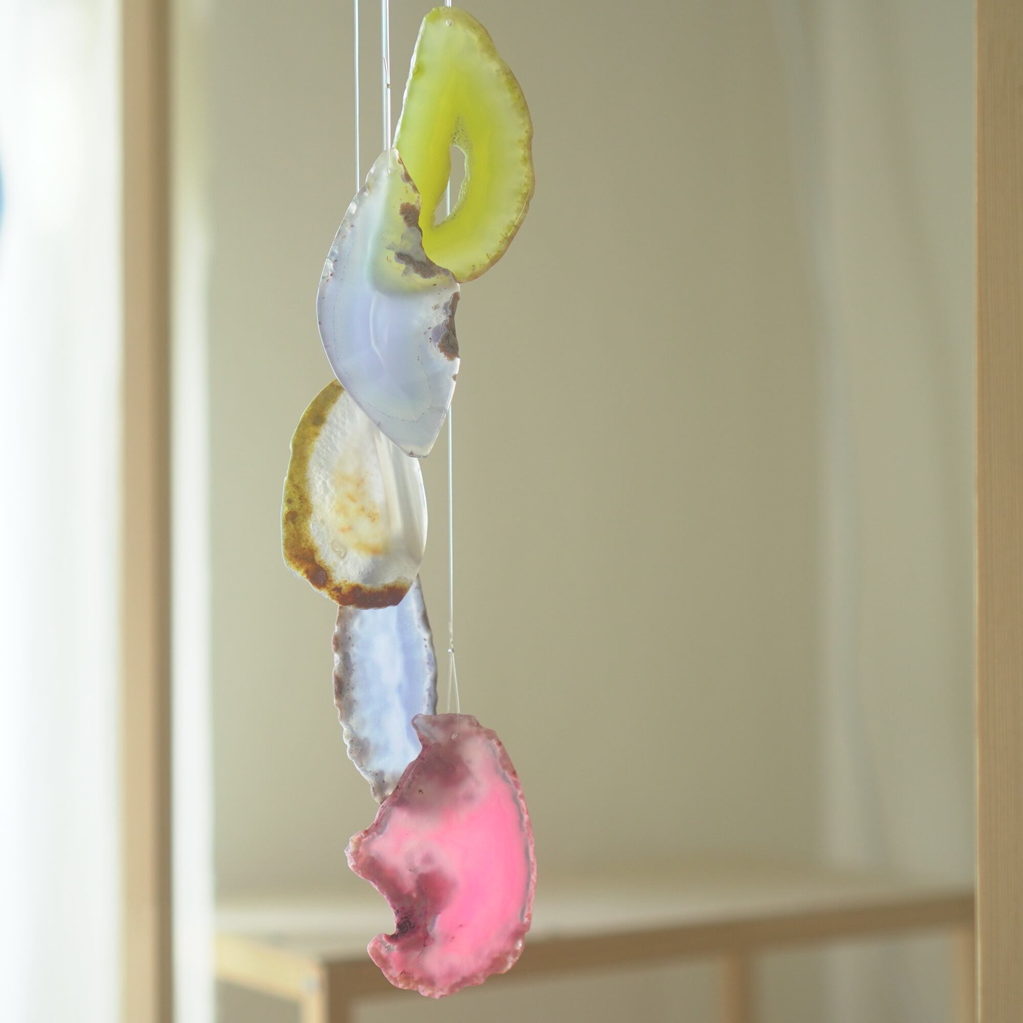 連なるアゲートが風を受けて揺れるとチリンチリン、美しい響きの音が鳴りとても癒されます。
