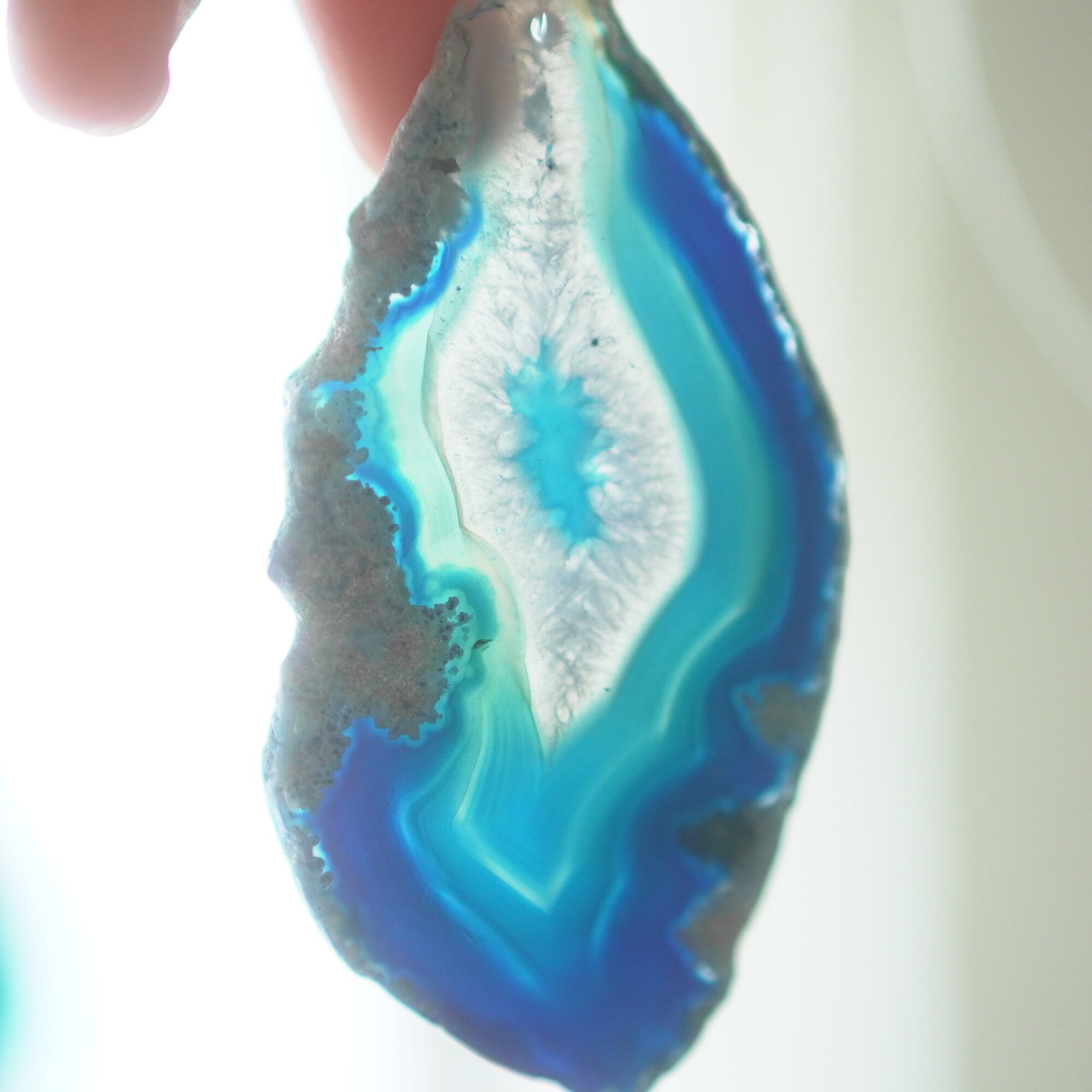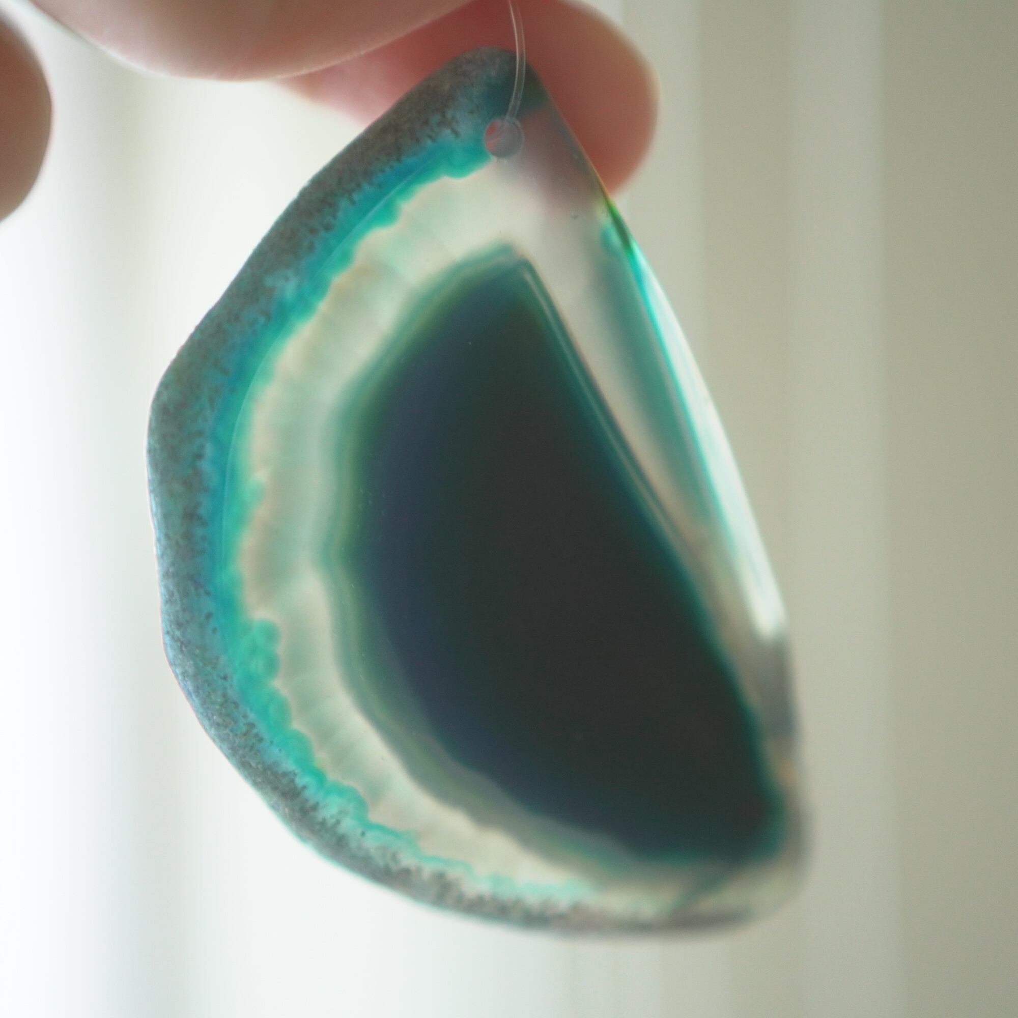 ✧✧✧染色の石なので耐光性(光による経年でのカラー変化の耐性)に優れているわけではなく一日の中で長時間強い日光に当たるような場所に飾られるのはおすすめしないのですが、陽光に透かした時にだけ真価を発揮する美しさがありますので、是非たまに翳したりして光と一緒にお楽しみいただけたらと思っております。特に濃い鮮やかな色など、気になられる場合は、日光のあまり当たらない場所に飾っていただけたらと思います✧✧✧