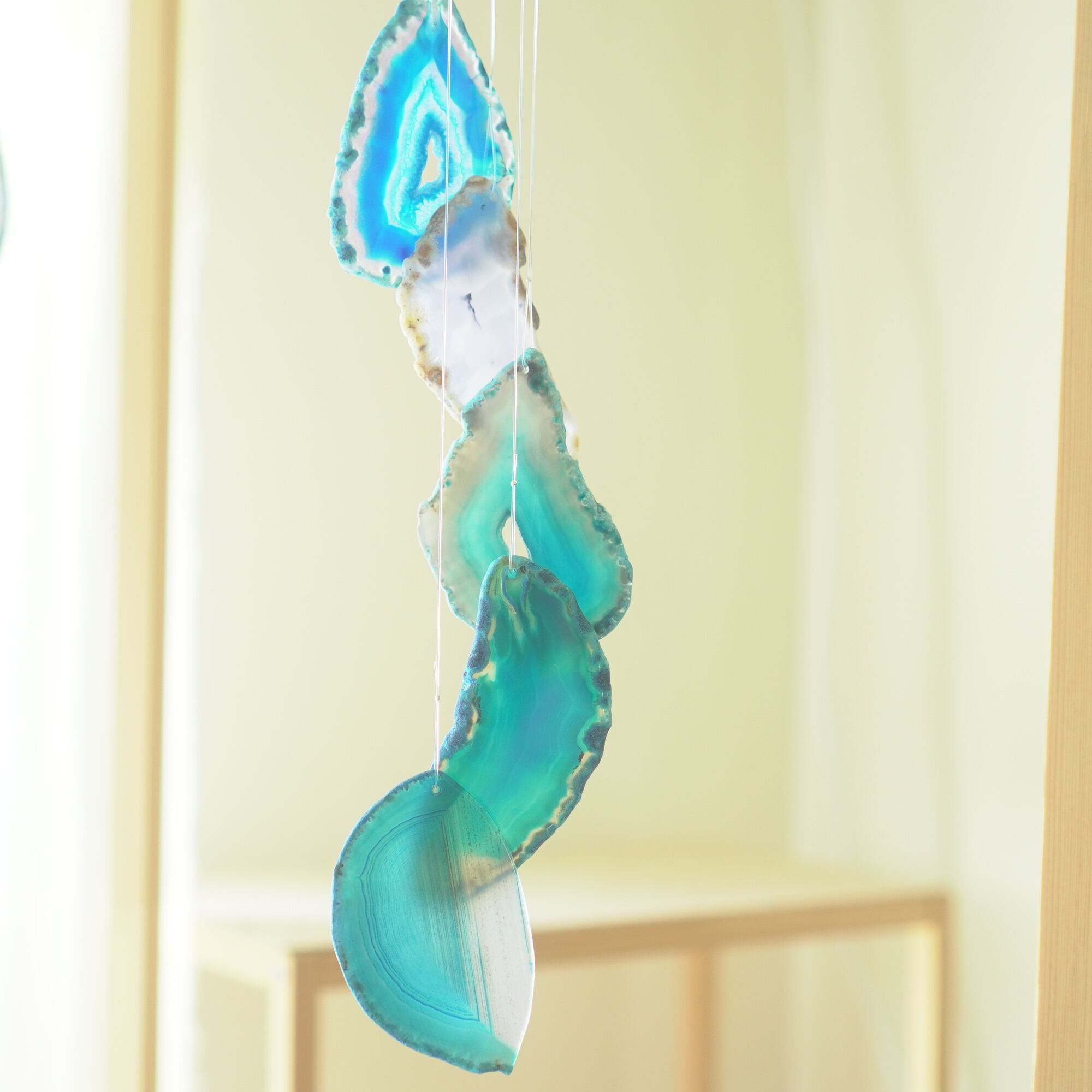 連なるアゲートが風を受けて揺れるとチリンチリン、美しい響きの音が鳴りとても癒されます。