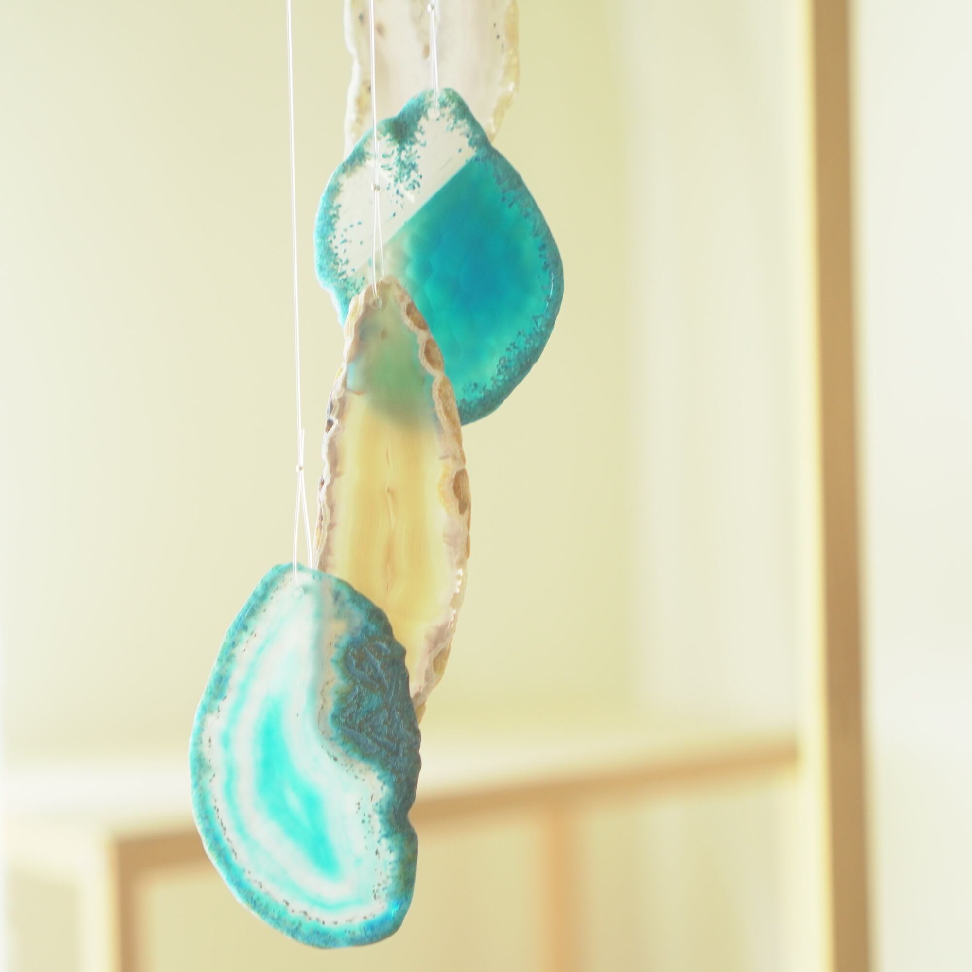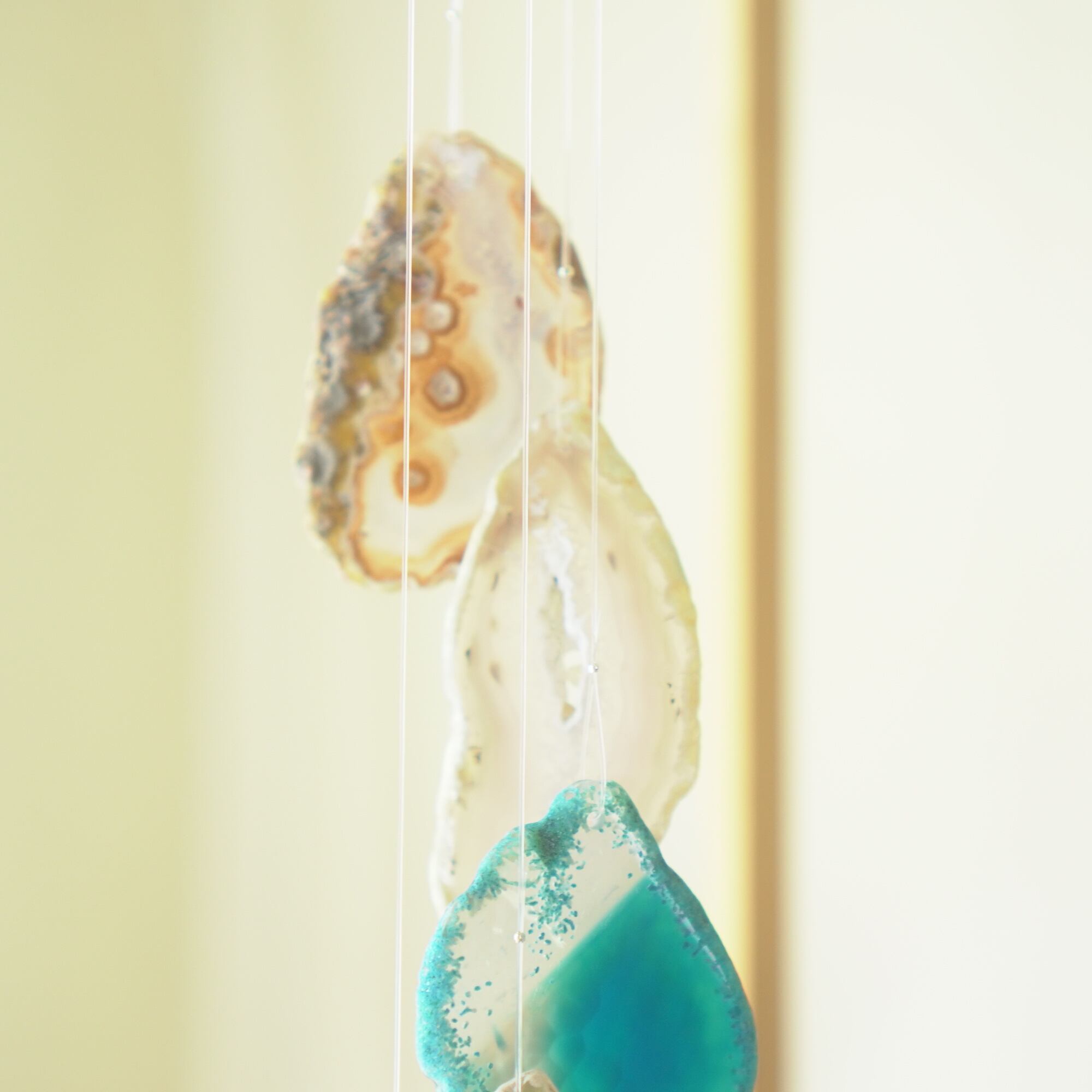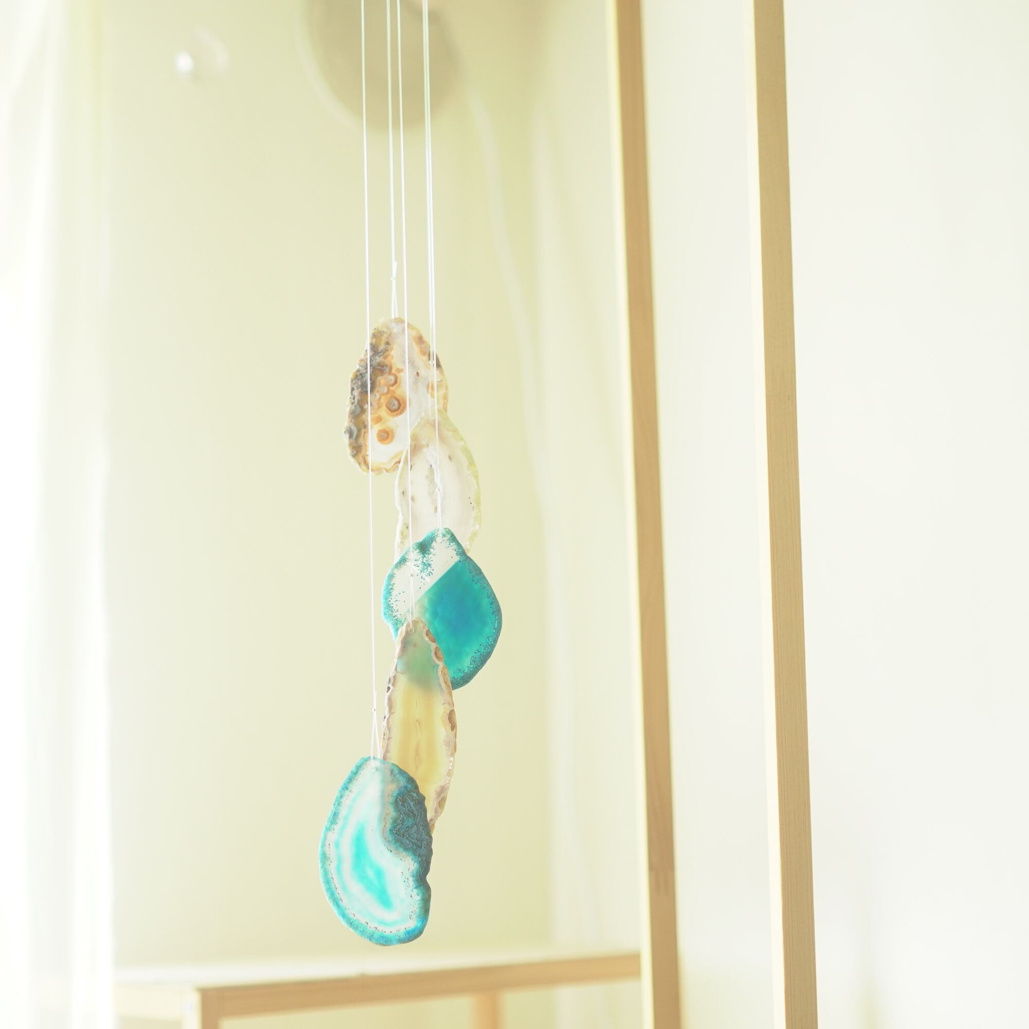 連なるアゲートが風を受けて揺れるとチリンチリン、美しい響きの音が鳴りとても癒されます。