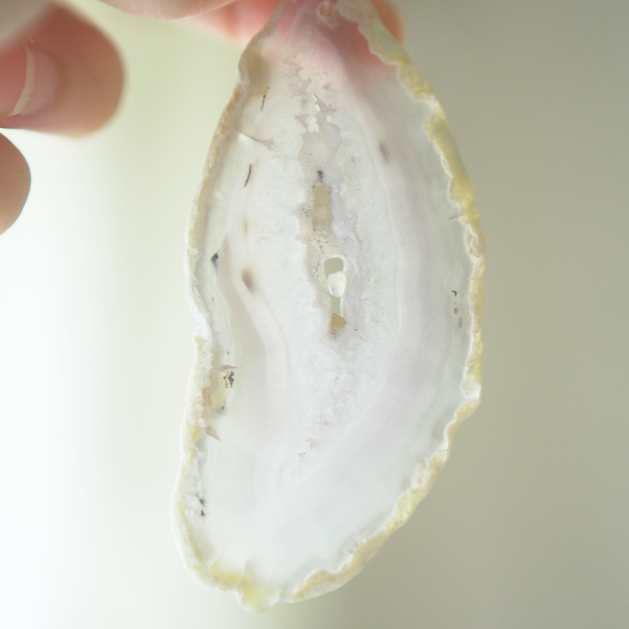 ✧✧✧瑪瑙の濃い色は染色によるもので、水に濡れたり布で擦ると多少色落ちします。飾るものなので大丈夫かと思いますが白いお洋服などには触れないようにされてください。汚れが気になる時は若干の色落ち前提で水を軽く含ませた布やティッシュでやさしく拭いていただくことは大丈夫です。また、画像のような細かなヒビ・カケはスライスメノウの加工上かなり多くあるので、チャイムとしての機能や全体の外観を著しく損なうものを除き、見た目の完璧さ<音色の響き重視で選んで使用しております、よろしくお願い致します✧✧✧