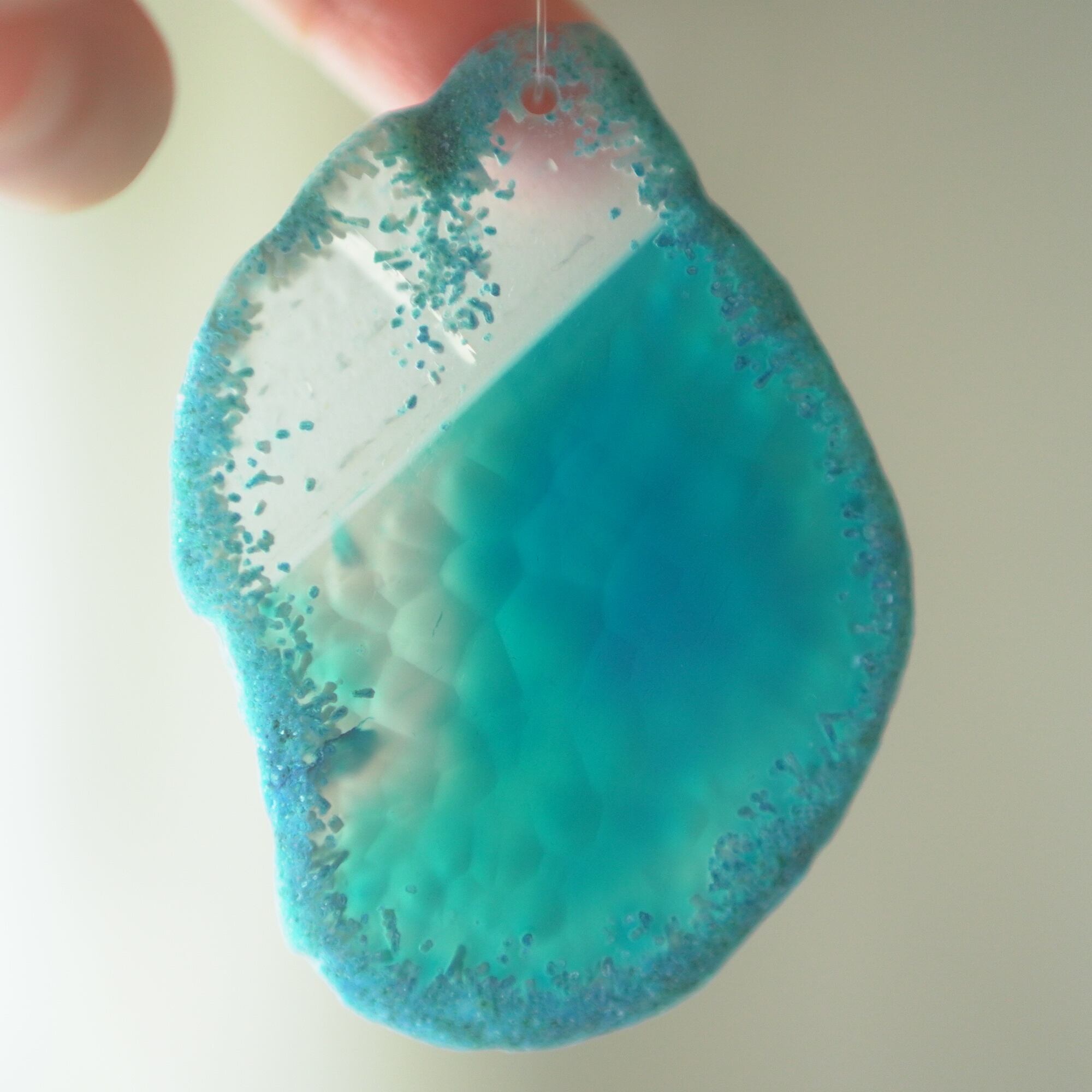 ✧✧✧染色の石なので耐光性(光による経年でのカラー変化の耐性)に優れているわけではなく一日の中で長時間強い日光に当たるような場所に飾られるのはおすすめしないのですが、陽光に透かした時にだけ真価を発揮する美しさがありますので、是非たまに翳したりして光と一緒にお楽しみいただけたらと思っております。特に濃い鮮やかな色など、気になられる場合は、日光のあまり当たらない場所に飾っていただけたらと思います✧✧✧