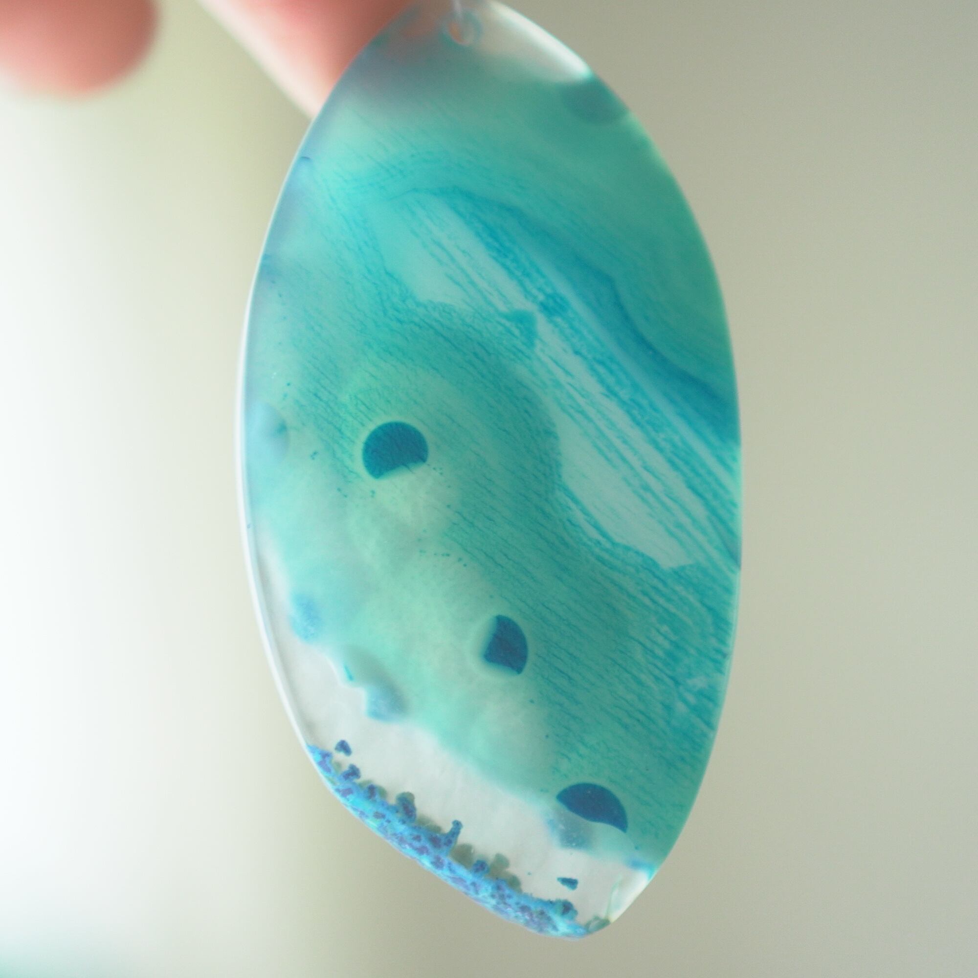 ✧✧✧染色の石なので耐光性(光による経年でのカラー変化の耐性)に優れているわけではなく一日の中で長時間強い日光に当たるような場所に飾られるのはおすすめしないのですが、陽光に透かした時にだけ真価を発揮する美しさがありますので、是非たまに翳したりして光と一緒にお楽しみいただけたらと思っております。特に濃い鮮やかな色など、気になられる場合は、日光のあまり当たらない場所に飾っていただけたらと思います✧✧✧