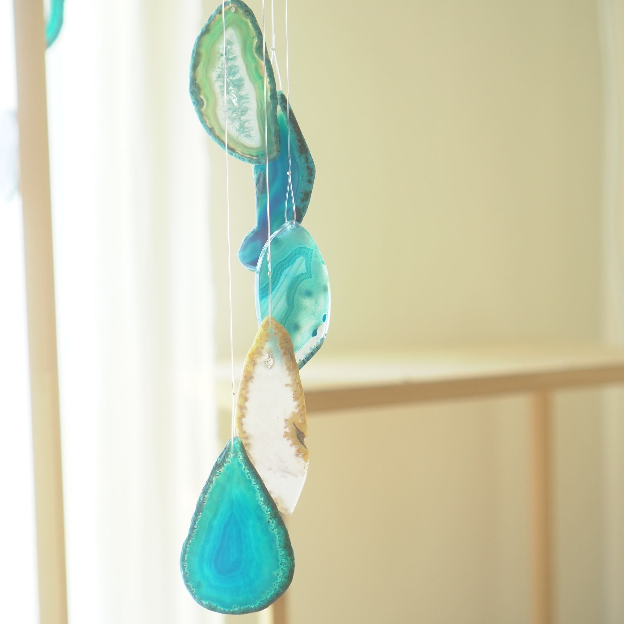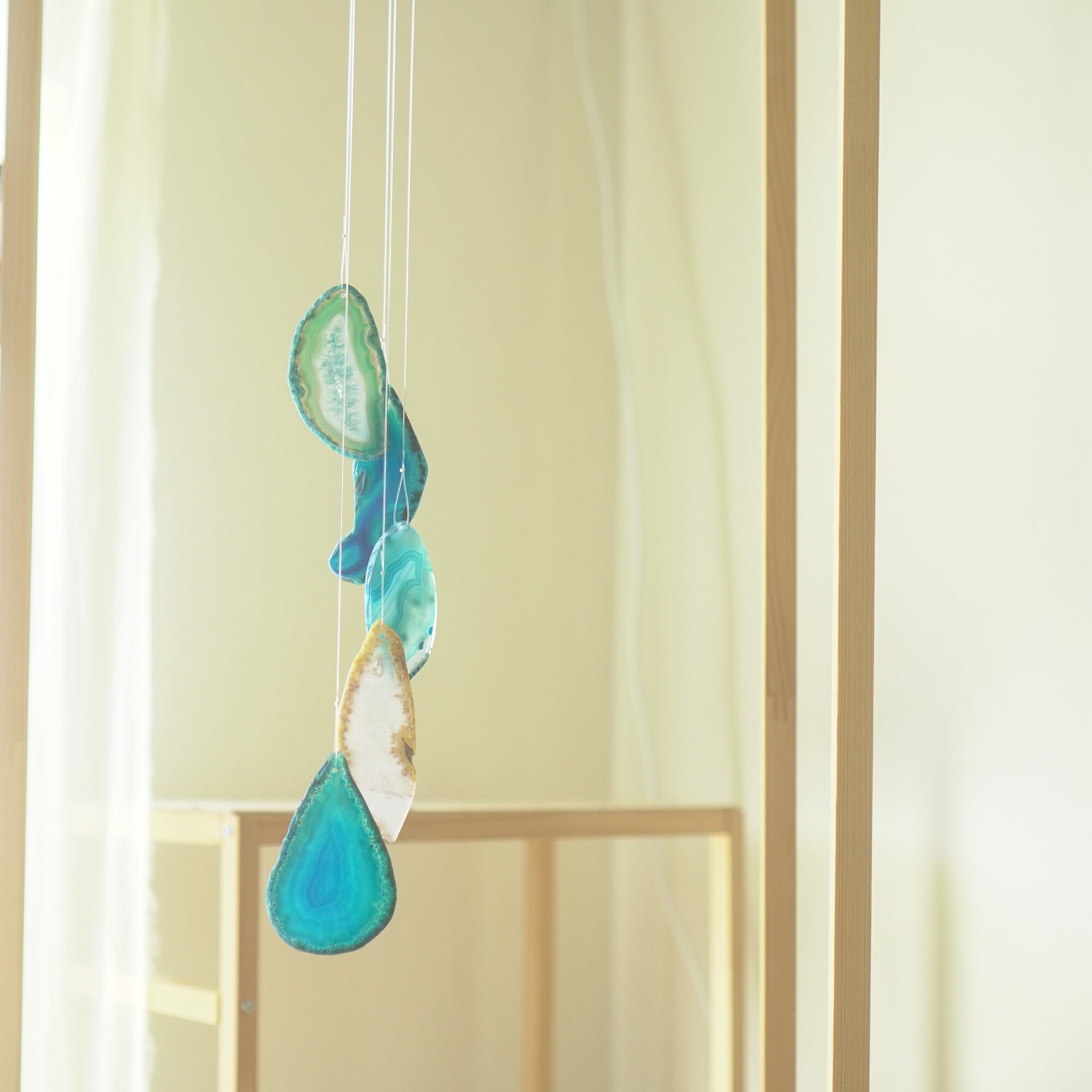 連なるアゲートが風を受けて揺れるとチリンチリン、美しい響きの音が鳴りとても癒されます。