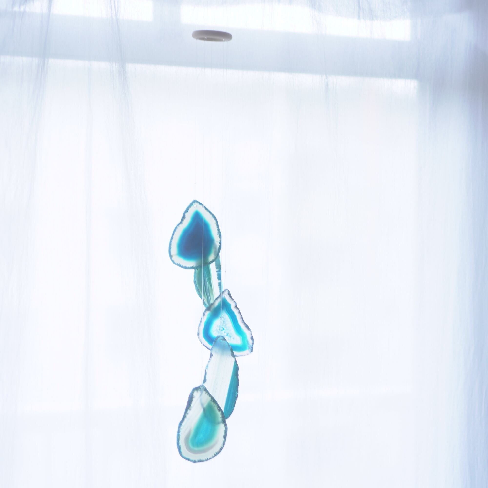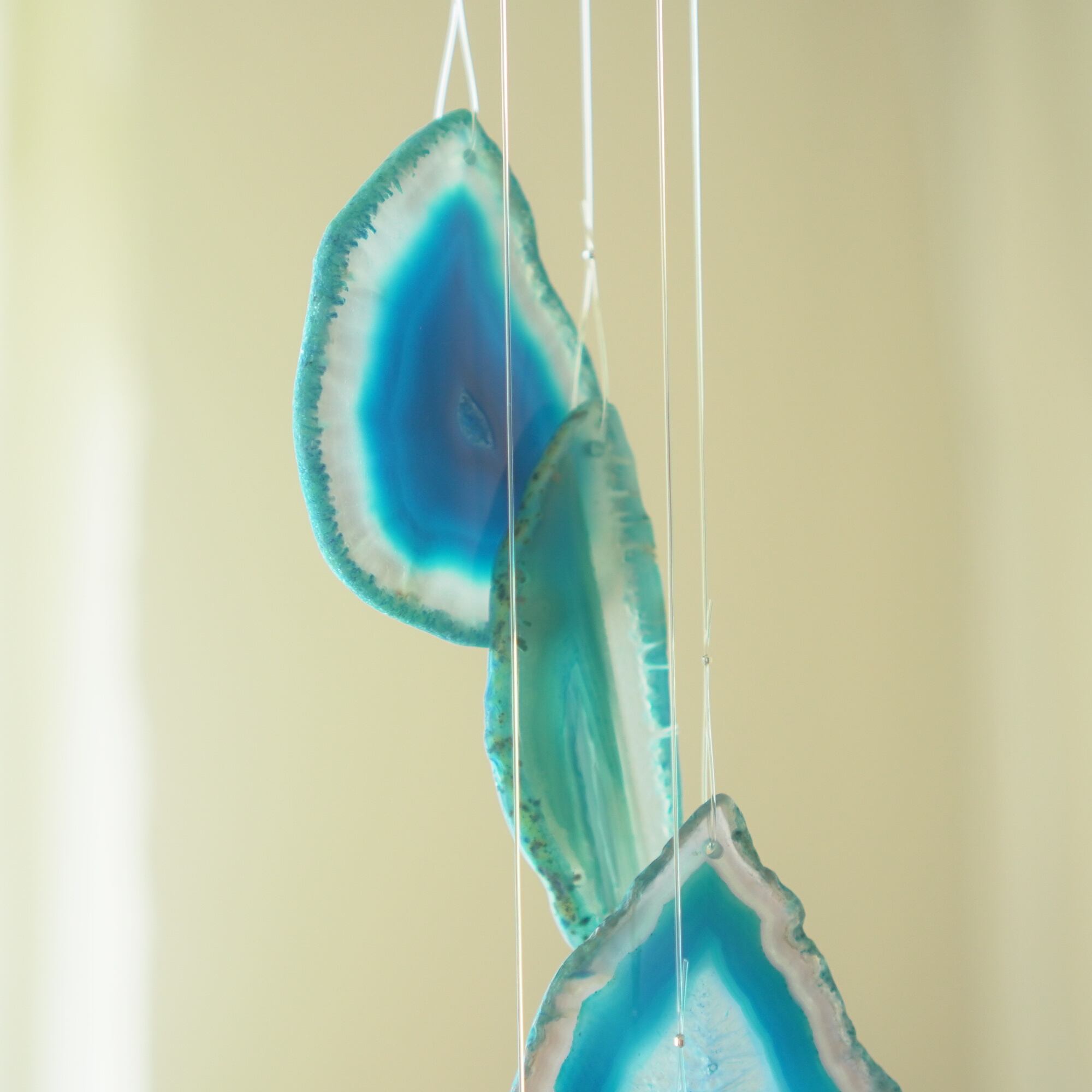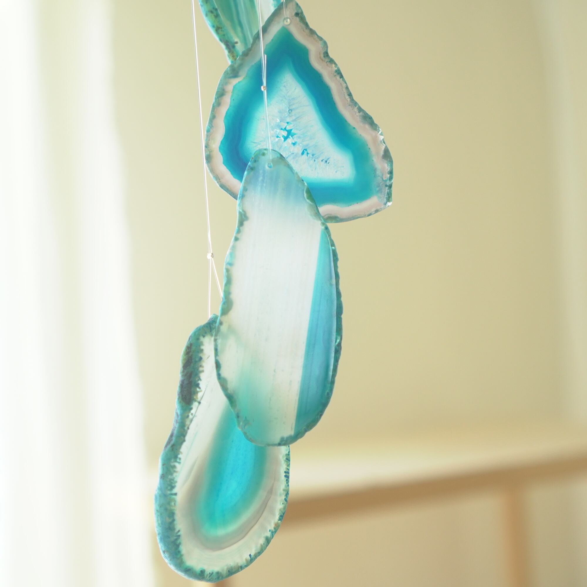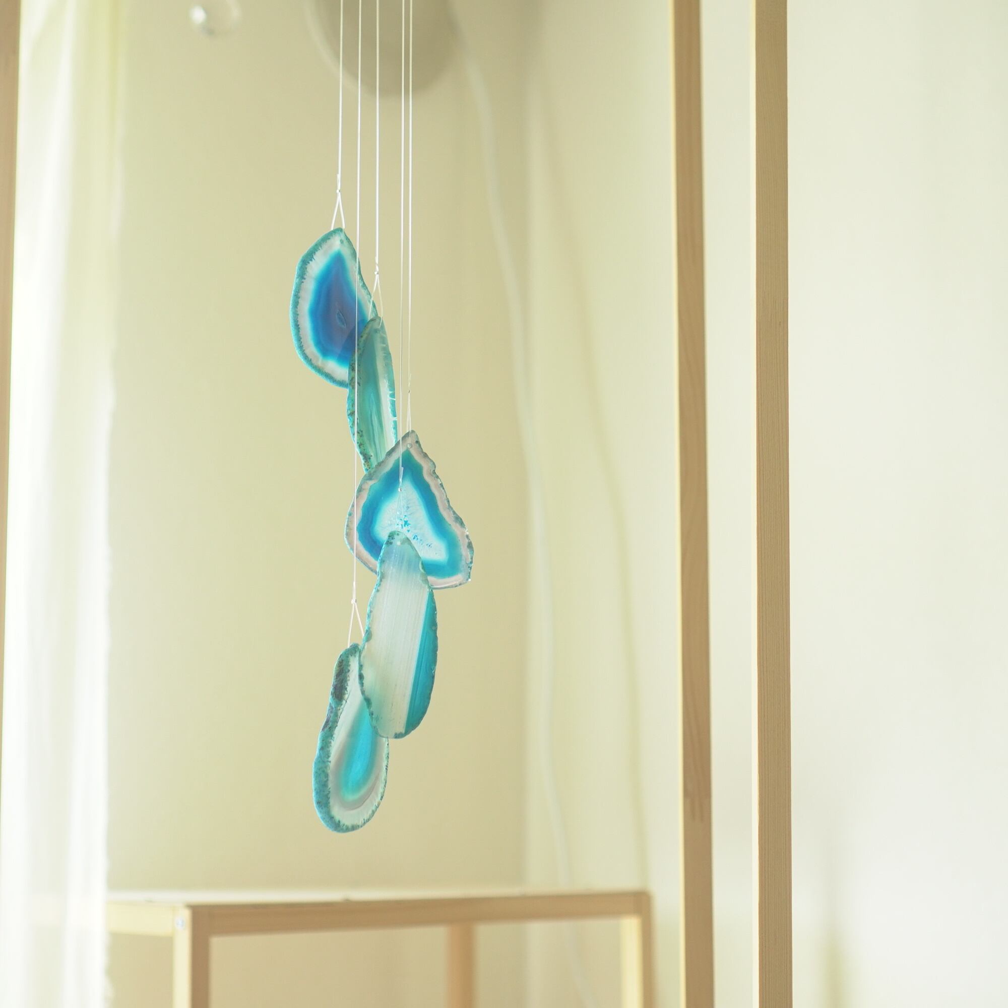 連なるアゲートが風を受けて揺れるとチリンチリン、美しい響きの音が鳴りとても癒されます。
