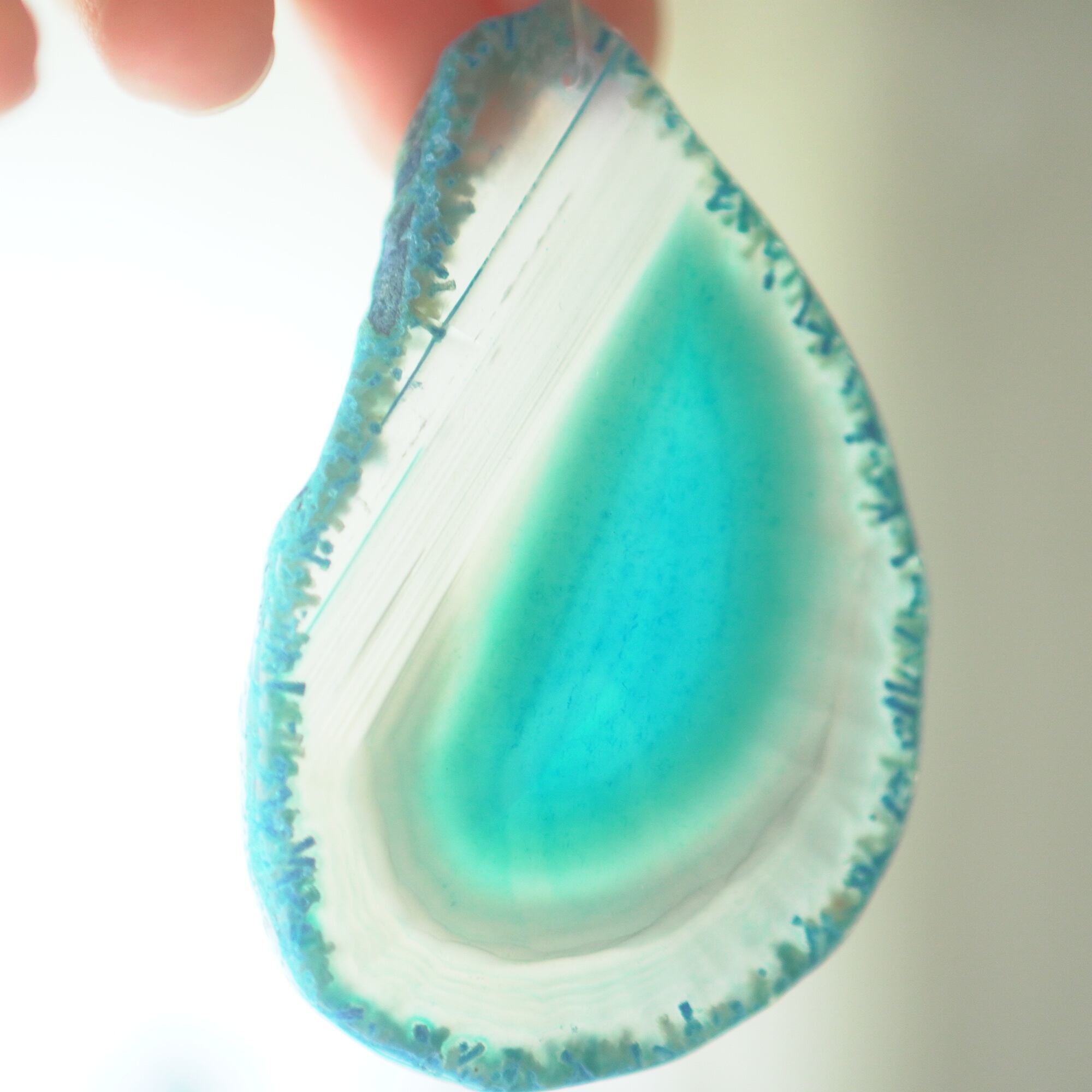 ✧✧✧染色の石なので耐光性(光による経年でのカラー変化の耐性)に優れているわけではなく一日の中で長時間強い日光に当たるような場所に飾られるのはおすすめしないのですが、陽光に透かした時にだけ真価を発揮する美しさがありますので、是非たまに翳したりして光と一緒にお楽しみいただけたらと思っております。特に濃い鮮やかな色など、気になられる場合は、日光のあまり当たらない場所に飾っていただけたらと思います✧✧✧