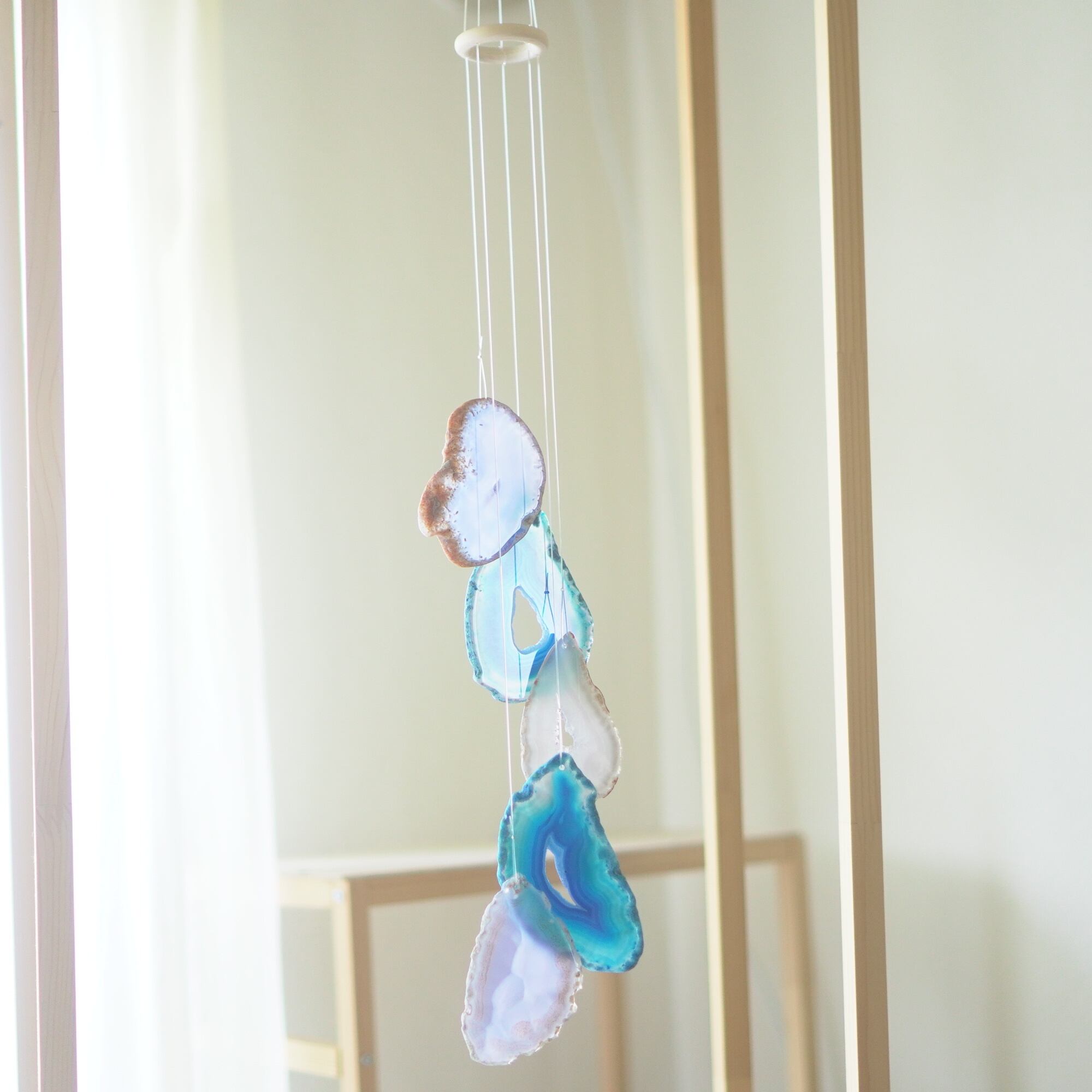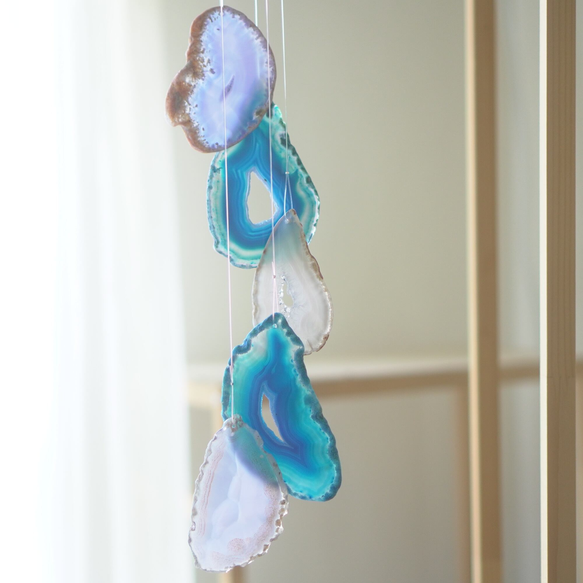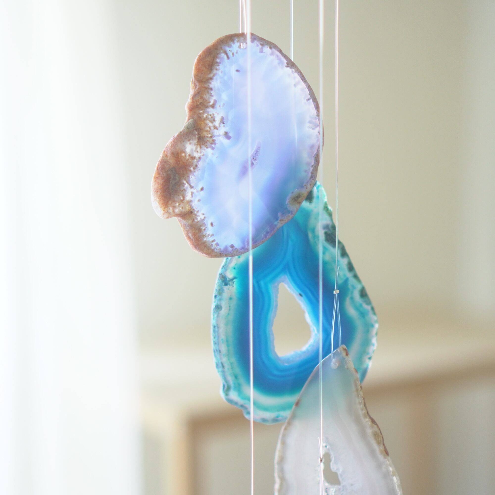 連なるアゲートが風を受けて揺れるとチリンチリン、美しい響きの音が鳴りとても癒されます。