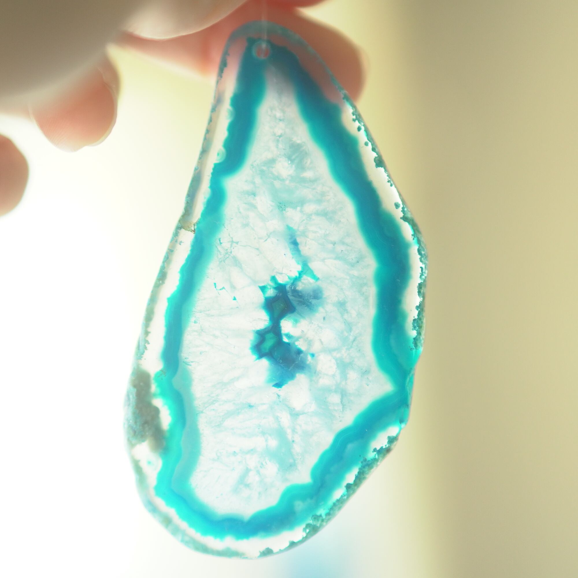 ✧✧✧染色の石なので耐光性(光による経年でのカラー変化の耐性)に優れているわけではなく一日の中で長時間強い日光に当たるような場所に飾られるのはおすすめしないのですが、陽光に透かした時にだけ真価を発揮する美しさがありますので、是非たまに翳したりして光と一緒にお楽しみいただけたらと思っております。特に濃い鮮やかな色など、気になられる場合は、日光のあまり当たらない場所に飾っていただけたらと思います✧✧✧