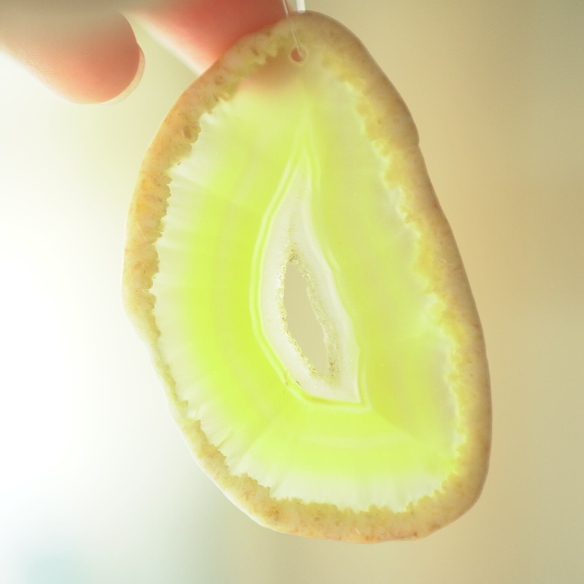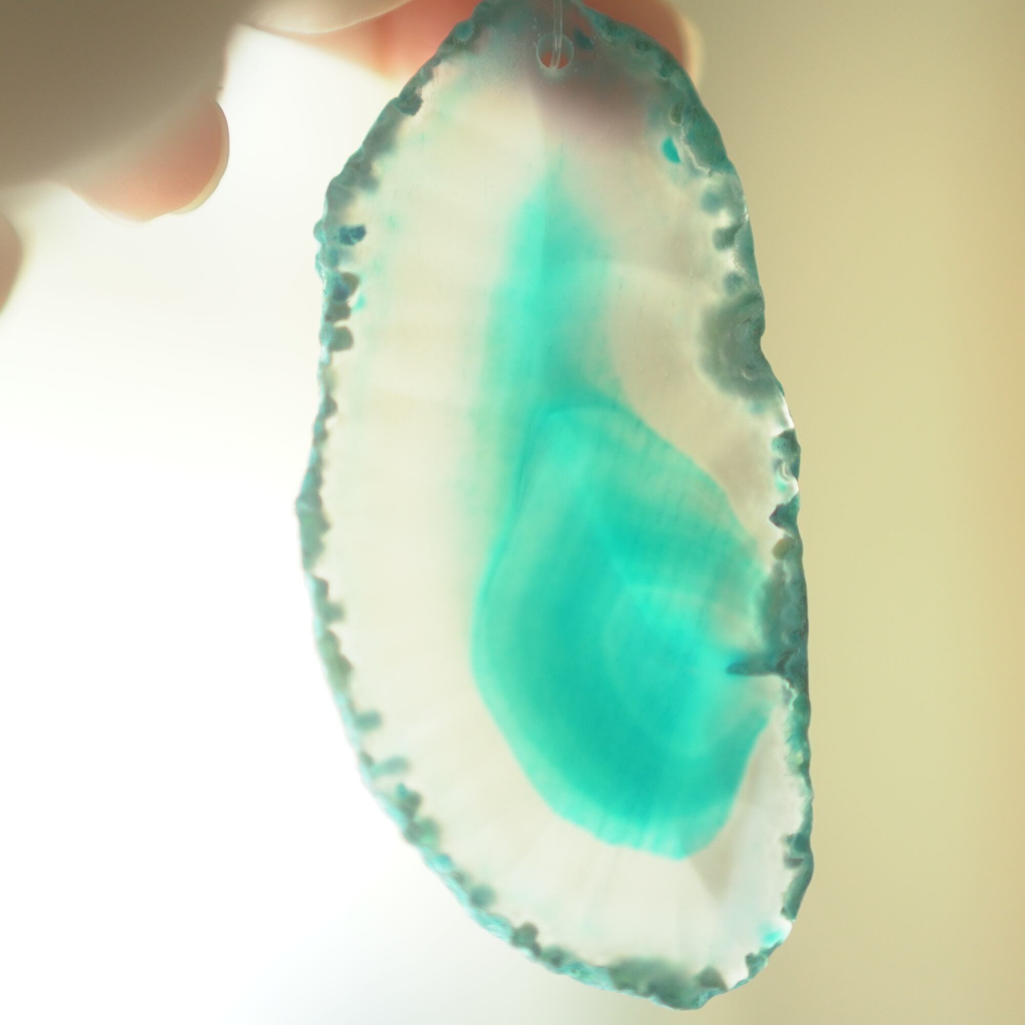 ✧✧✧染色の石なので耐光性(光による経年でのカラー変化の耐性)に優れているわけではなく一日の中で長時間強い日光に当たるような場所に飾られるのはおすすめしないのですが、陽光に透かした時にだけ真価を発揮する美しさがありますので、是非たまに翳したりして光と一緒にお楽しみいただけたらと思っております。特に濃い鮮やかな色など、気になられる場合は、日光のあまり当たらない場所に飾っていただけたらと思います✧✧✧