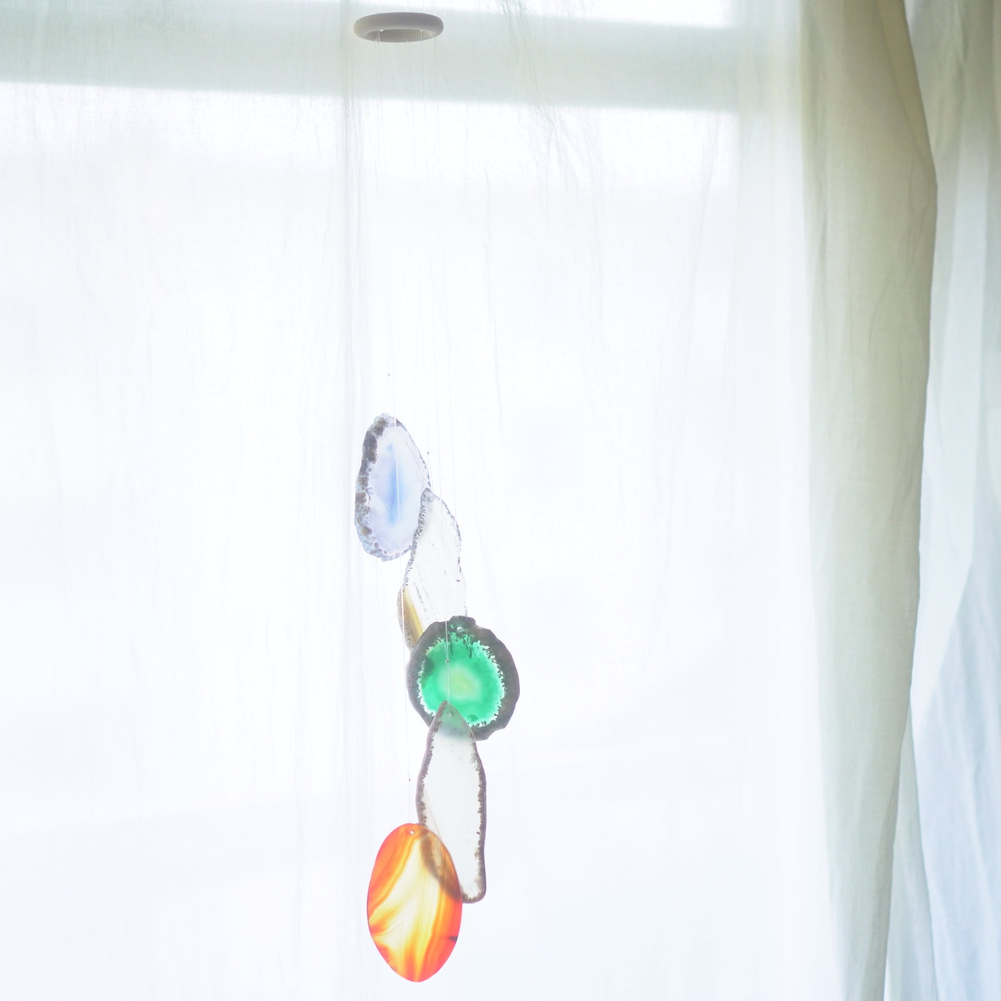 連なるアゲートが風を受けて揺れるとチリンチリン、美しい響きの音が鳴りとても癒されます。