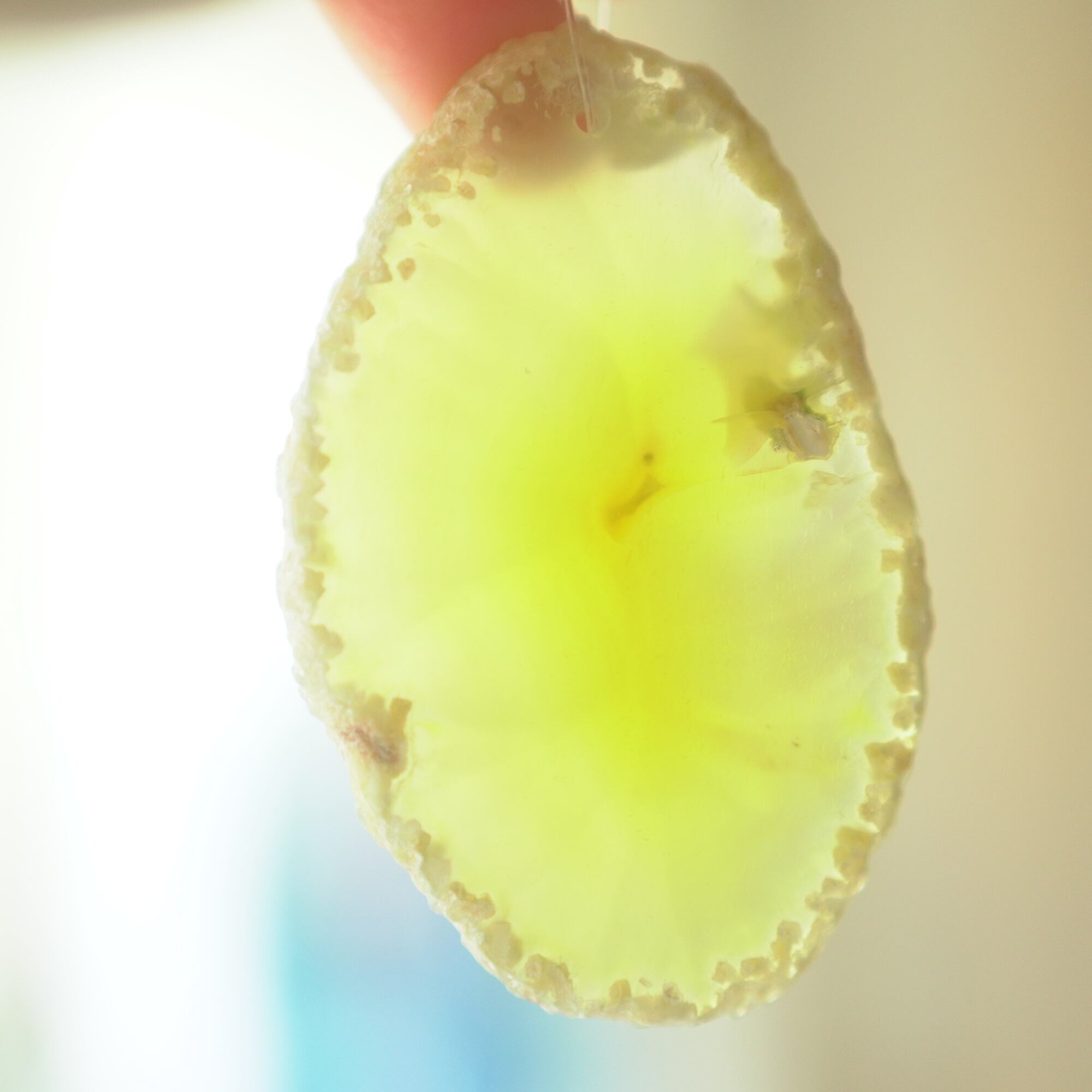 ✧✧✧染色の石なので耐光性(光による経年でのカラー変化の耐性)に優れているわけではなく一日の中で長時間強い日光に当たるような場所に飾られるのはおすすめしないのですが、陽光に透かした時にだけ真価を発揮する美しさがありますので、是非たまに翳したりして光と一緒にお楽しみいただけたらと思っております。特に濃い鮮やかな色など、気になられる場合は、日光のあまり当たらない場所に飾っていただけたらと思います✧✧✧