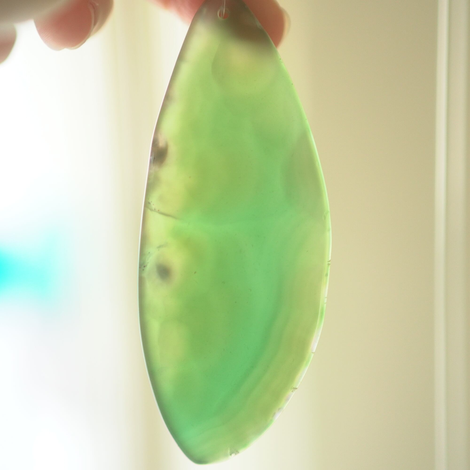 ✧✧✧染色の石なので耐光性(光による経年でのカラー変化の耐性)に優れているわけではなく一日の中で長時間強い日光に当たるような場所に飾られるのはおすすめしないのですが、陽光に透かした時にだけ真価を発揮する美しさがありますので、是非たまに翳したりして光と一緒にお楽しみいただけたらと思っております。特に濃い鮮やかな色など、気になられる場合は、日光のあまり当たらない場所に飾っていただけたらと思います✧✧✧